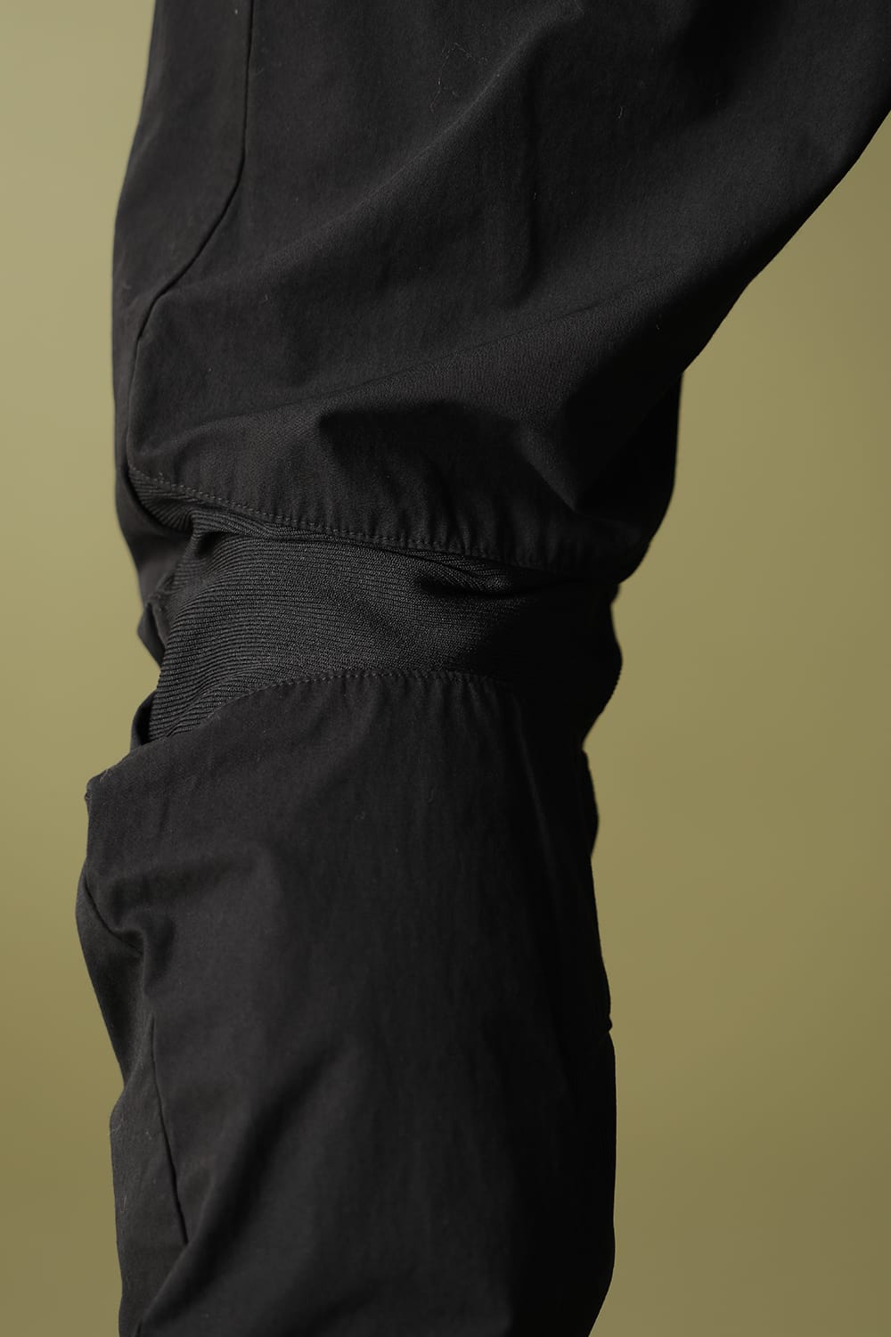 膝部分は強度も必要なため同素材で切替え、膝の運動量をカバー。