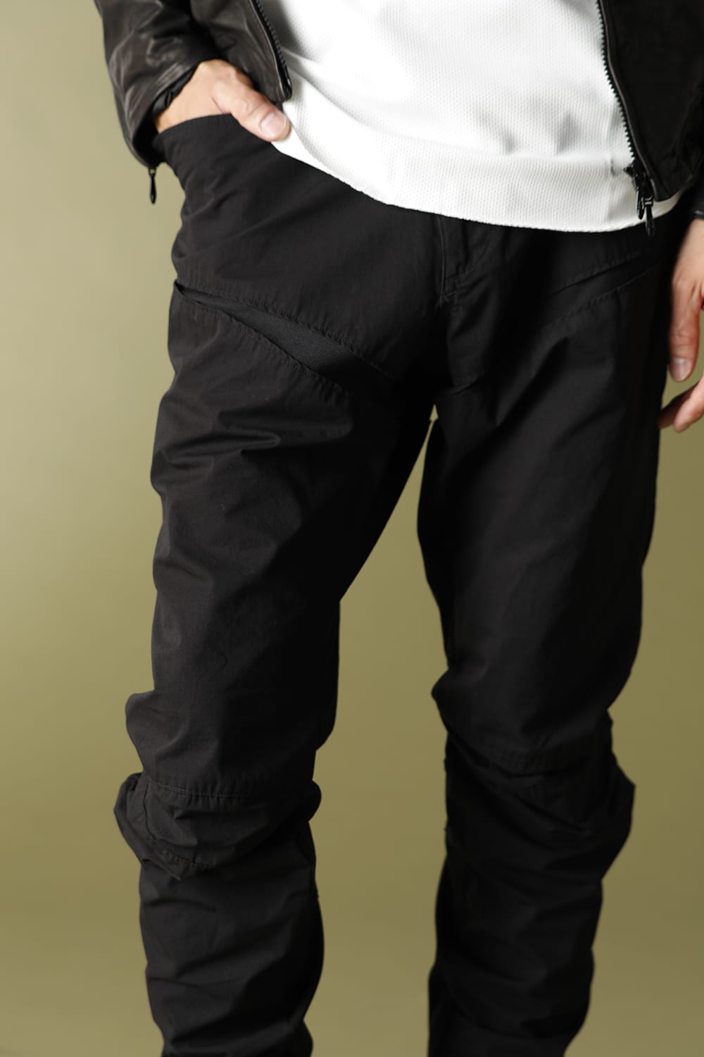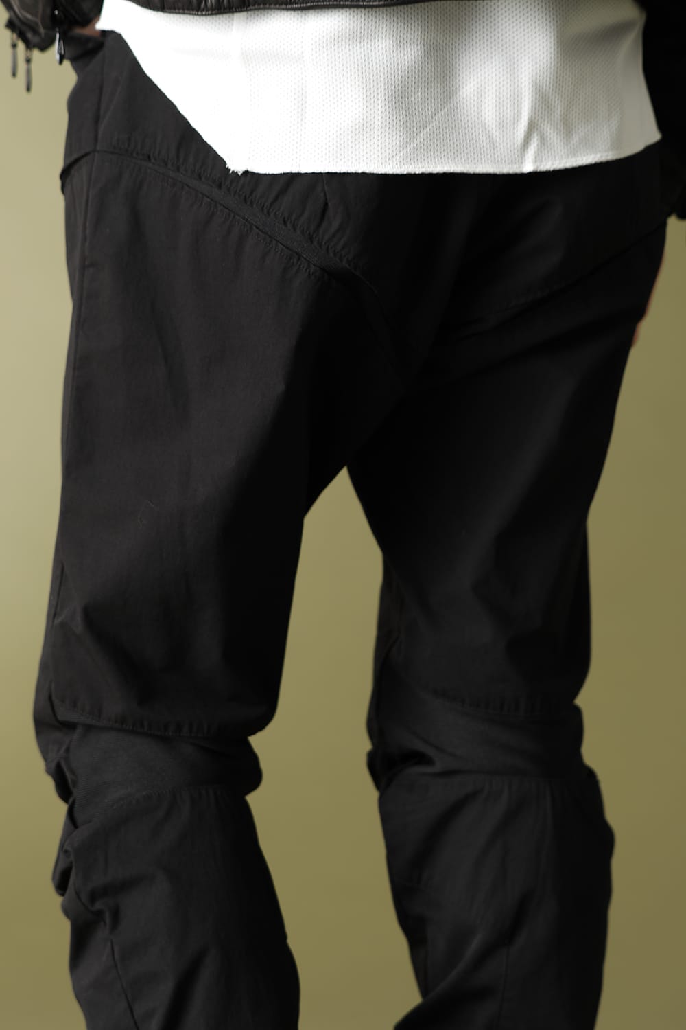 ARTICULATEDとは関節で繋いだと言う意味を持ち、パンツがカバーする範囲で運動量の多い腰、股関節、膝関節に注目しデザインしています。