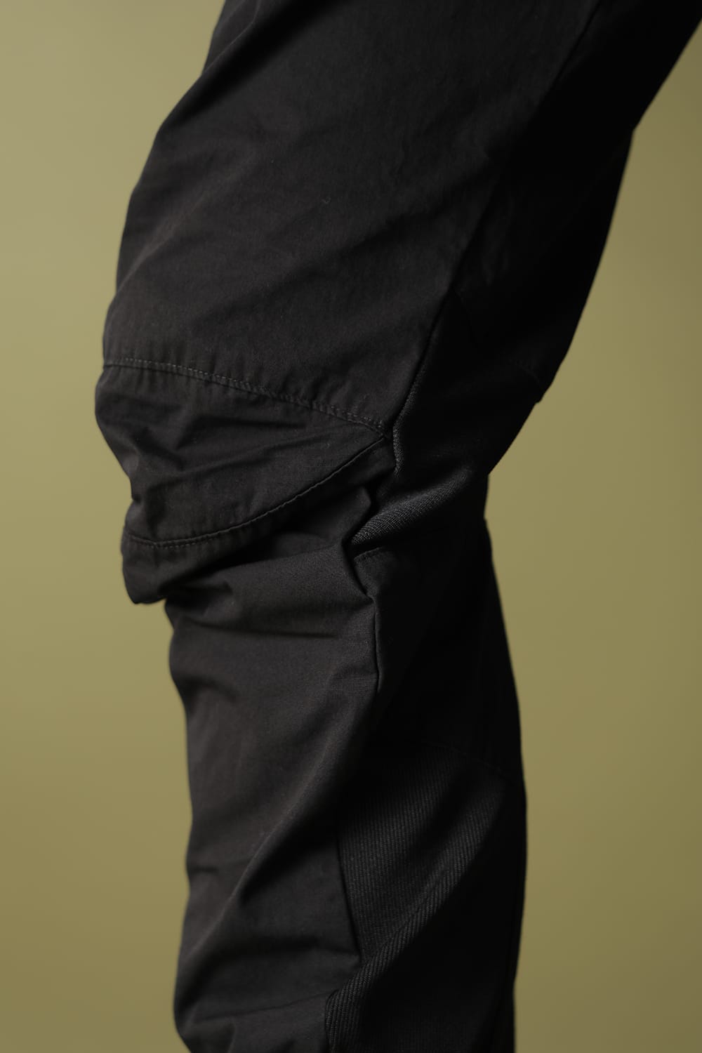 ストレッチ性の無いコーデュラクロスに、可動性の高いパターン技術をミックス。
