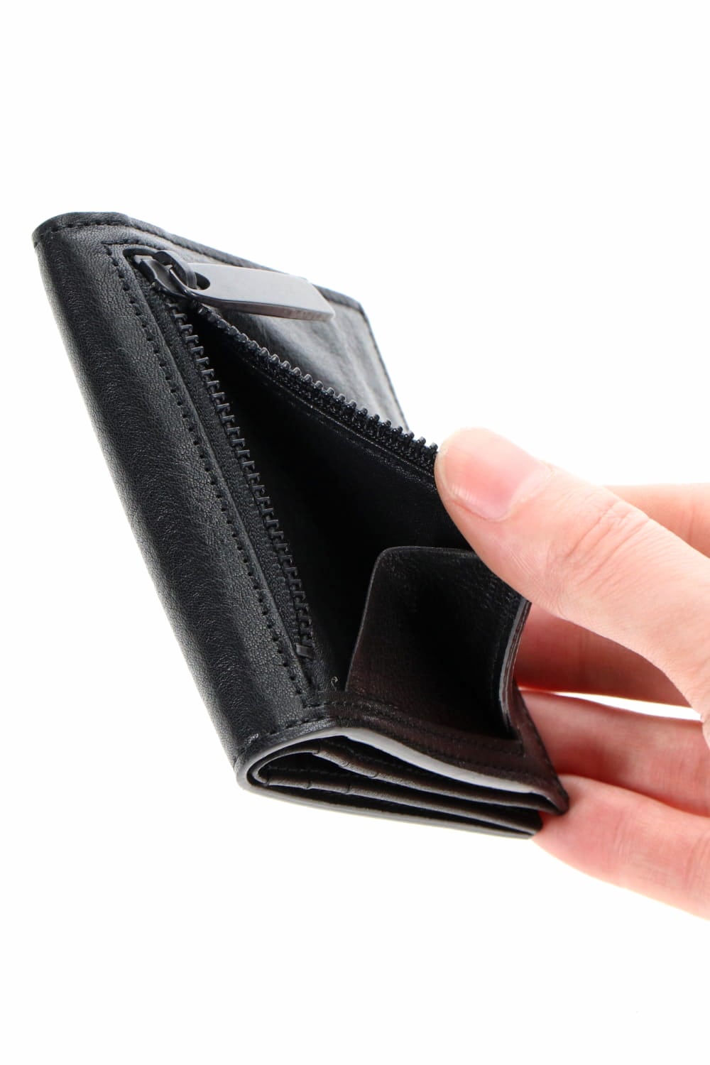 身軽で必要なものだけ収納したい方やセカンドウォレットにも最適な収納量のコンパクトウォレット。収納はコンパクトでありながら、お札は折らずに入れられ、カード段x6、ファスナー付きのコインケースも備えているミニマルかつ秀逸デザイン。タンニン再なめしをし、革本来の味と柔軟性を持たせています。オイルを十分に含ませ、仕上げにアニリン手染めという手間ひまをかけたとても貴重な素材。程よいねばりと重厚感が特徴的な仕上がりとなります。