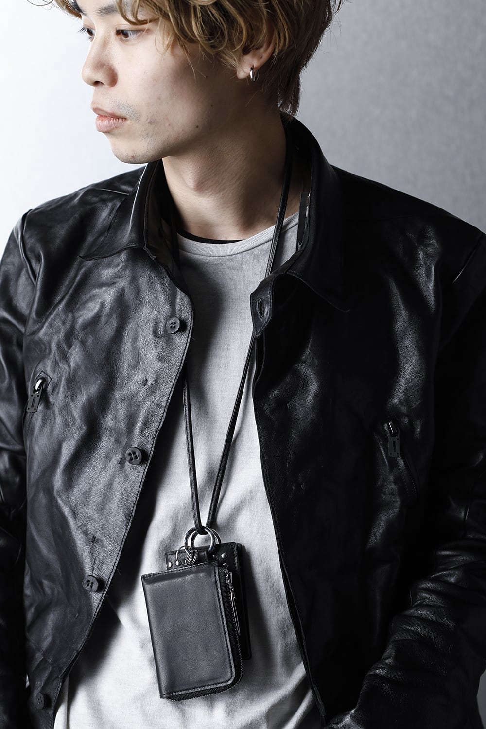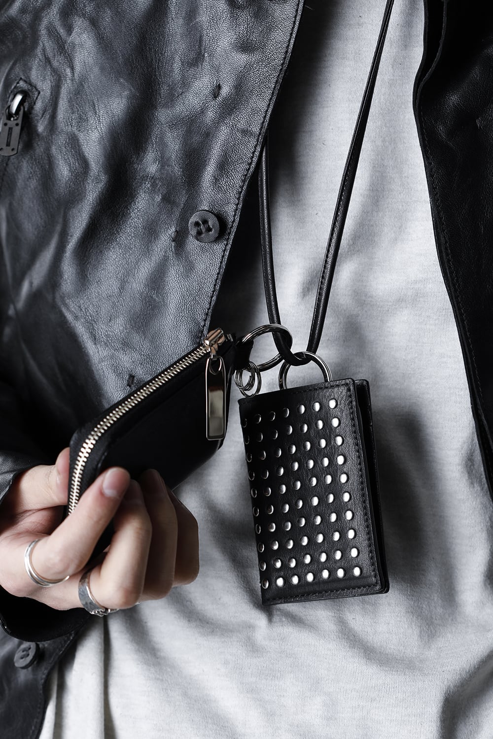 アクセサリー感覚で「身に着ける」ネックウォレット。カードケースの表面にスタッズを配したバージョン。 ウォレットとカードケースが別々になっておりストラップから取り外して単体としての使用が可能。様々なスタイルでご愛用いたマルチアイテム。ネックストラップは結び仕様で長さ調節が可能です。ウォレットはカード段x4・小銭入れ、カードケースにはカードx5が収納できます。