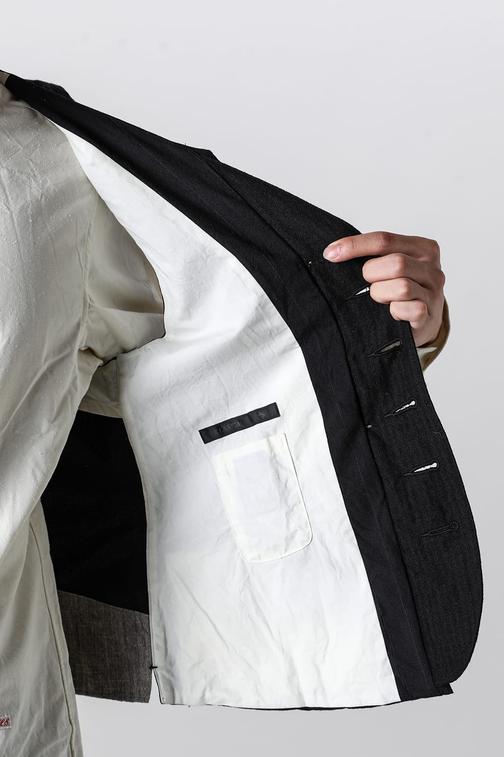 また、この生地の切り返し部に隠された胸ポケットが採用するという遊び心もあり、来ていて楽しめる1着となります。