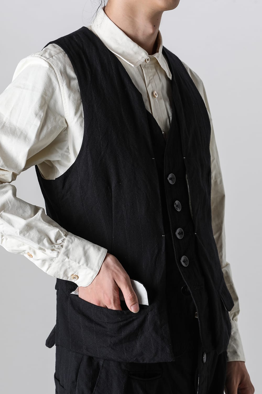 同ブランドの中ではレギュラーフィットで制作されたウエストコート。