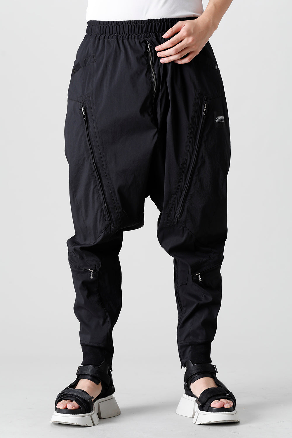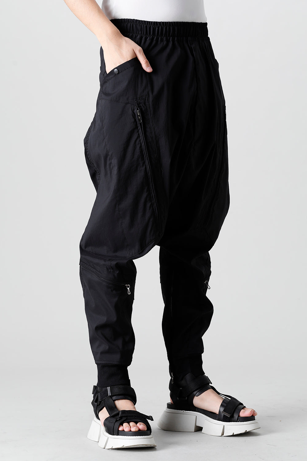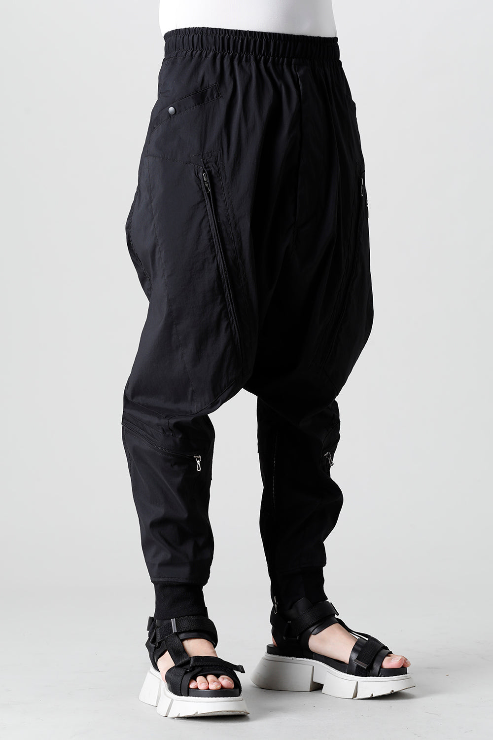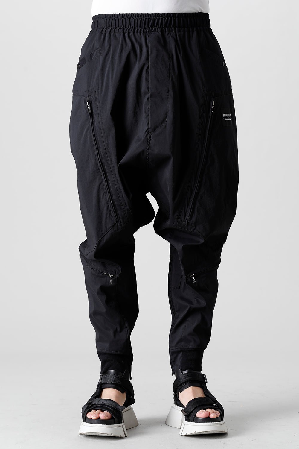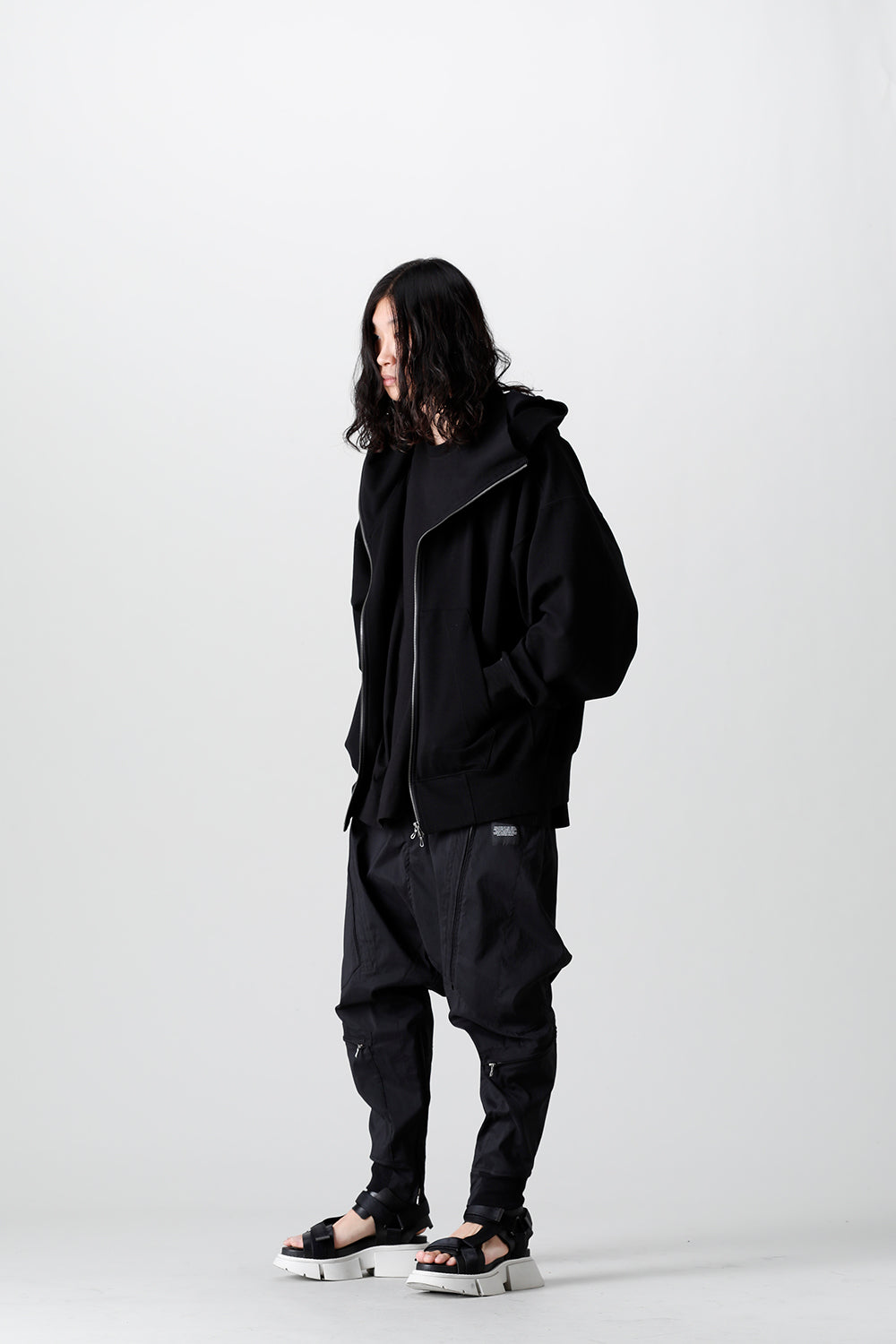 また、股上の深いサルエルシルエットと大振りのジッパーがポイントとなっている作品です。