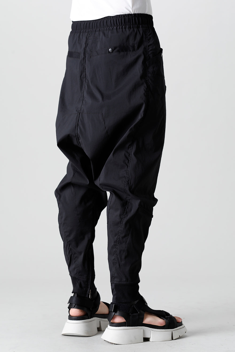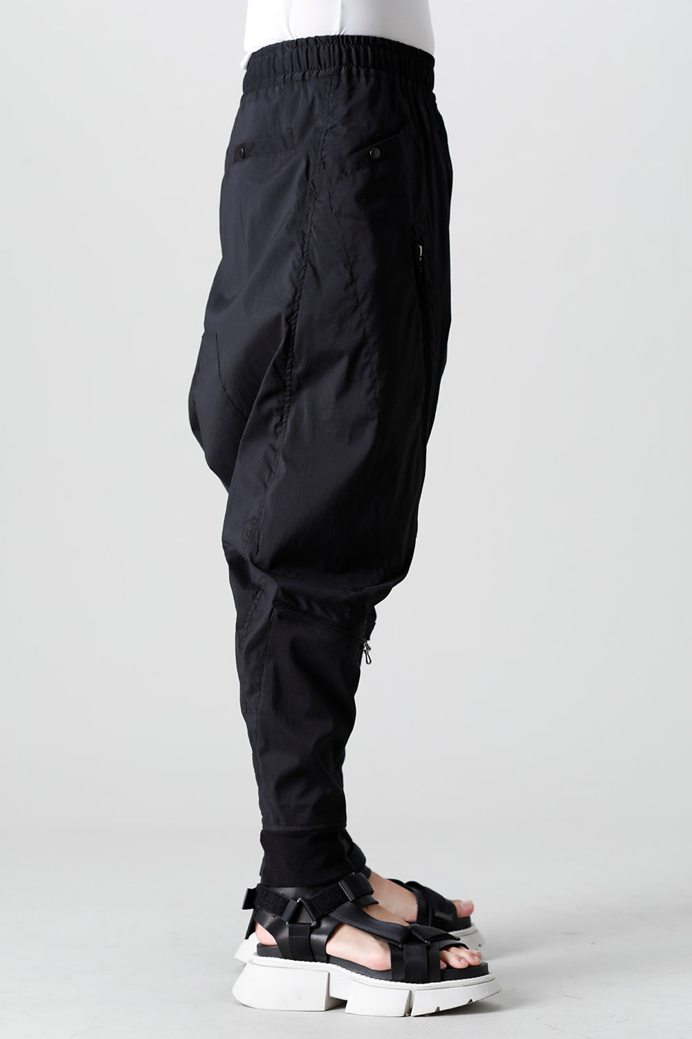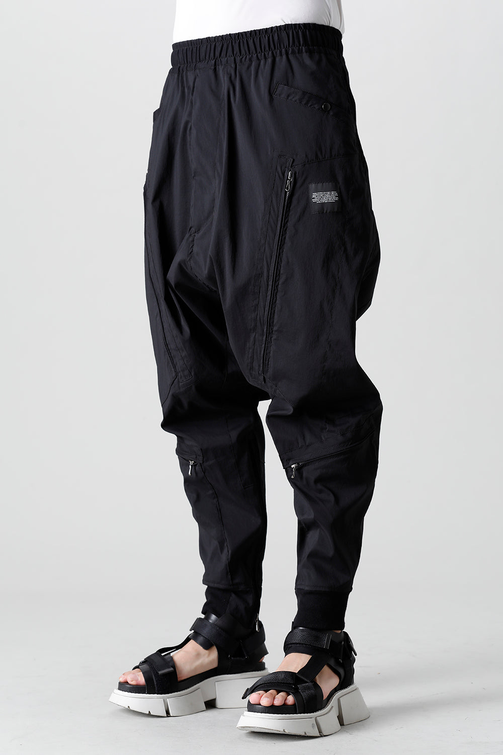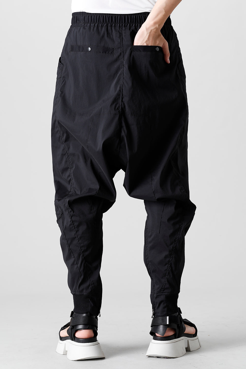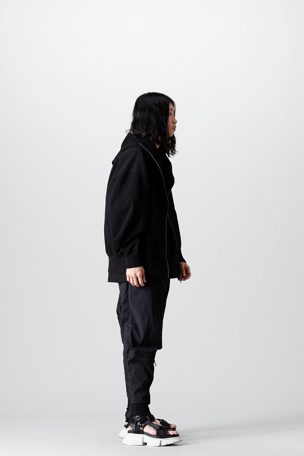 また、股上の深いサルエルシルエットと大振りのジッパーがポイントとなっている作品です。