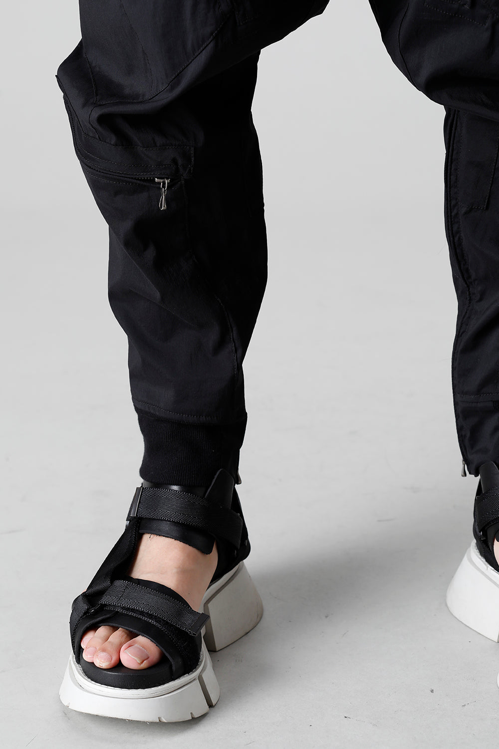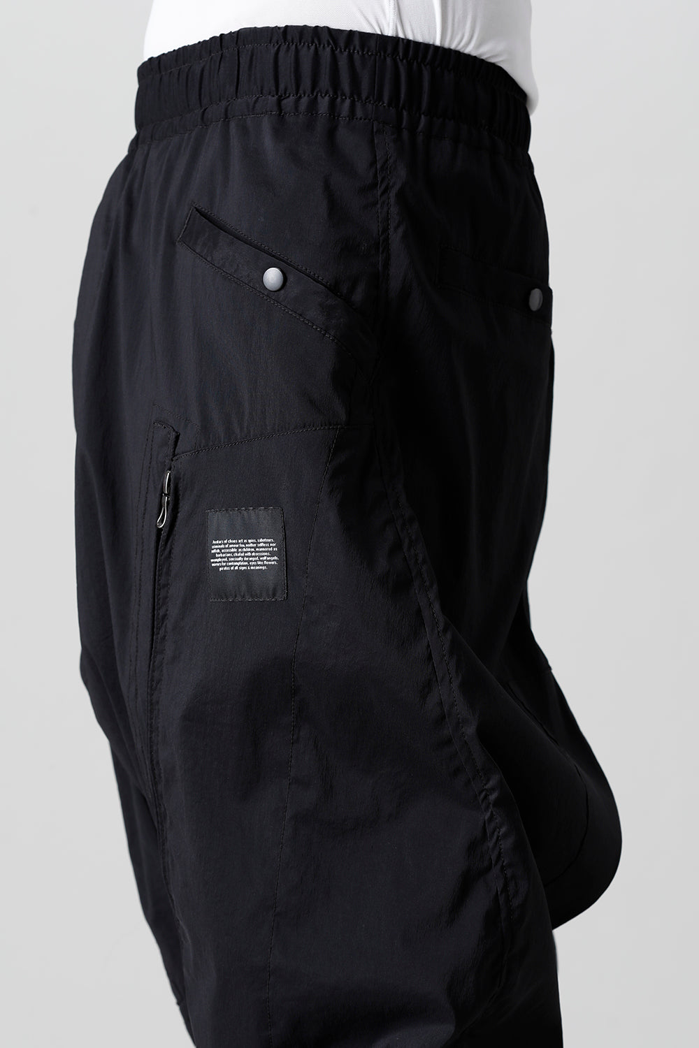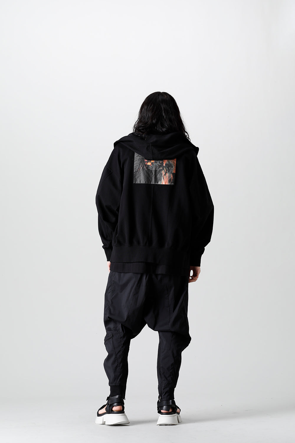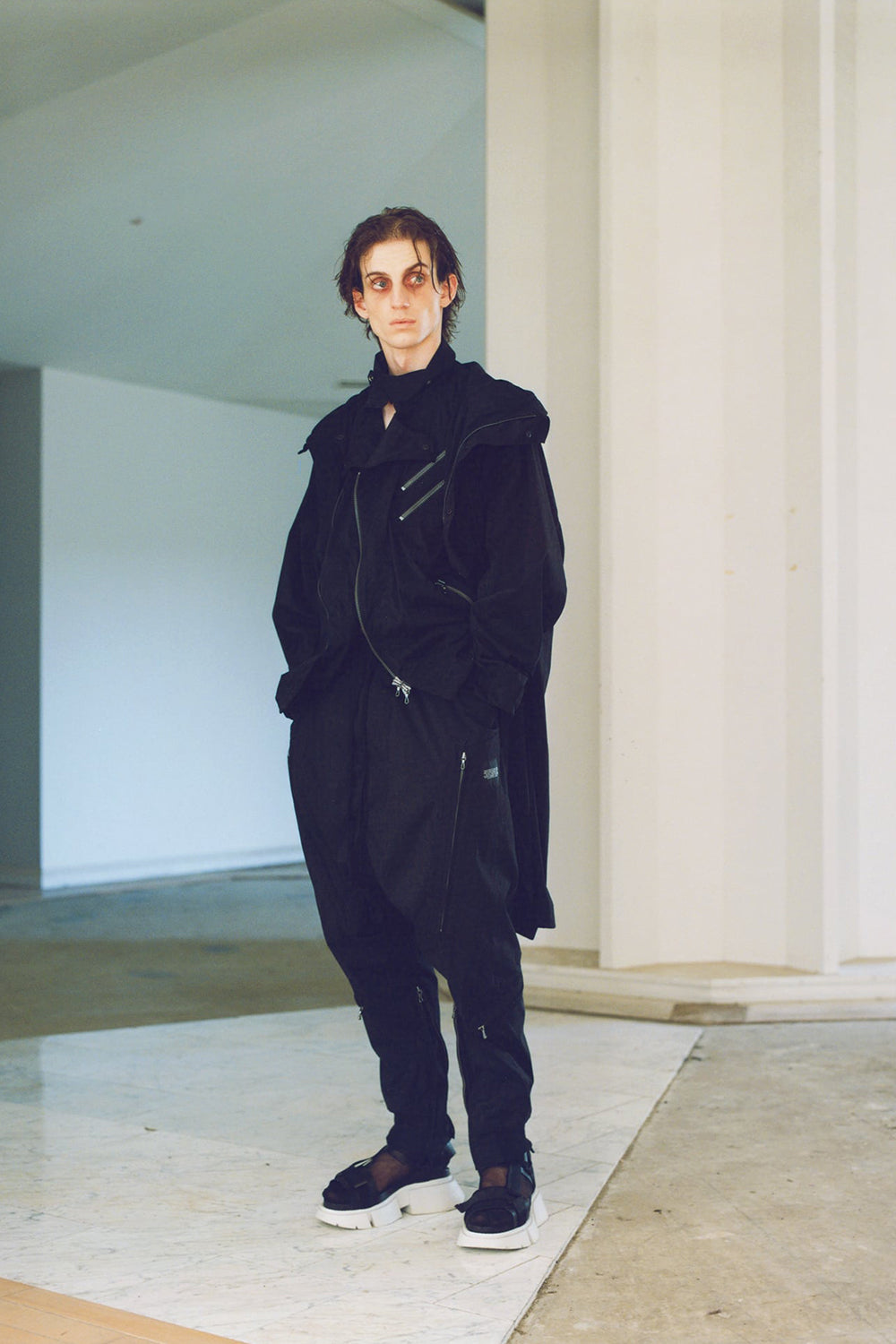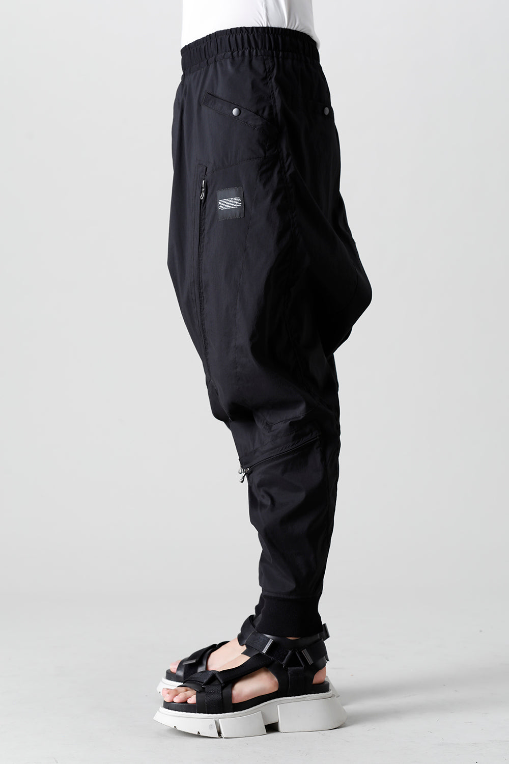 また、股上の深いサルエルシルエットと大振りのジッパーがポイントとなっている作品です。
