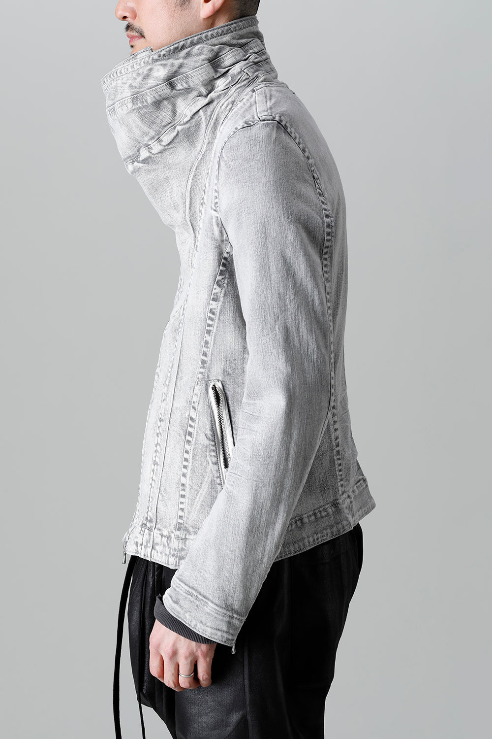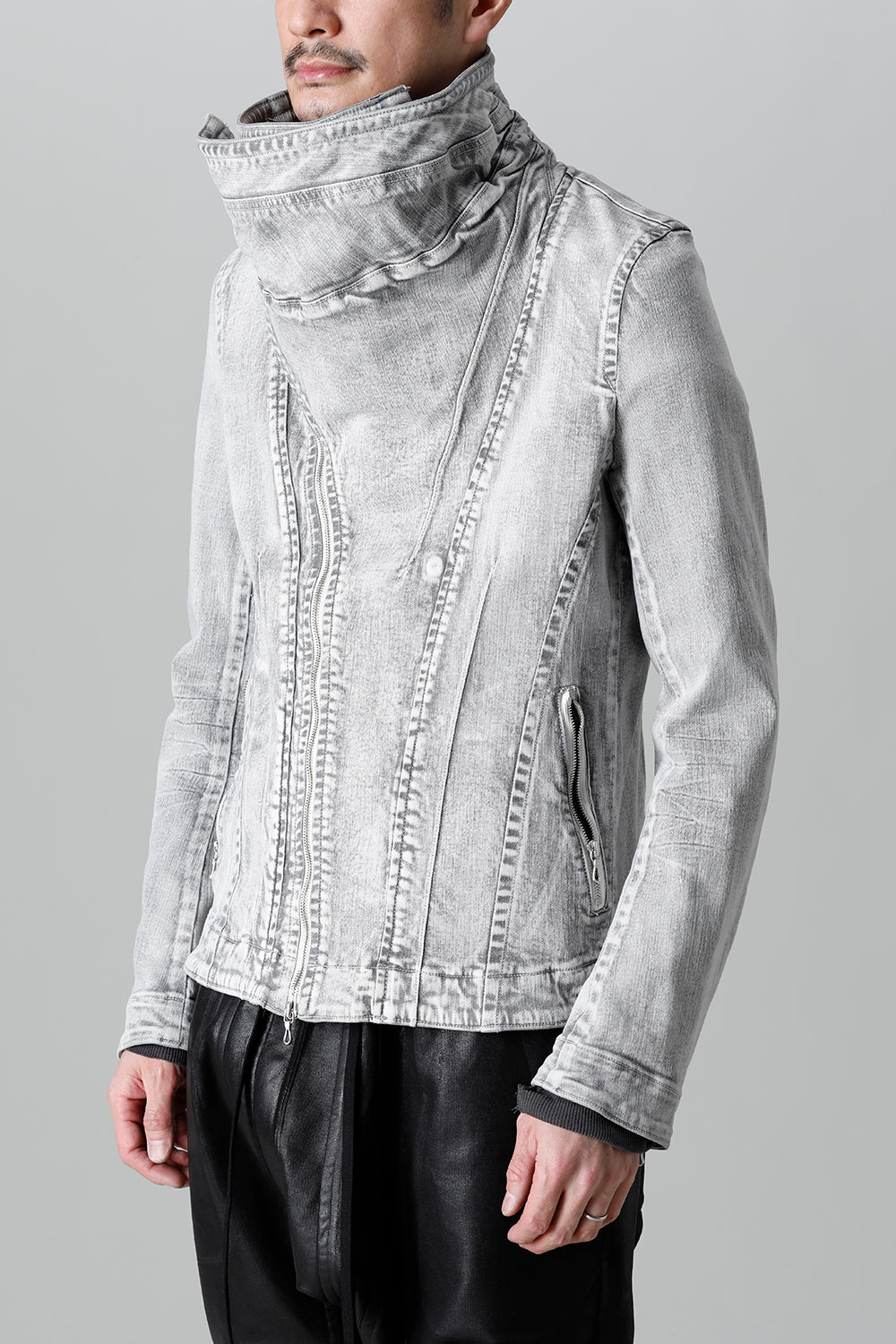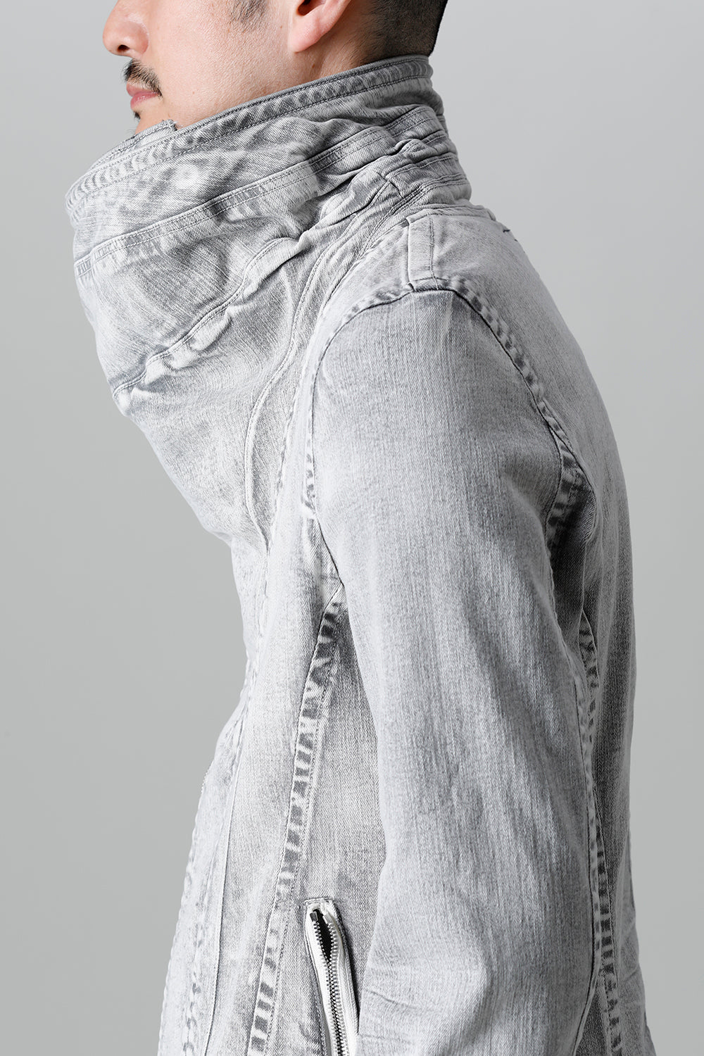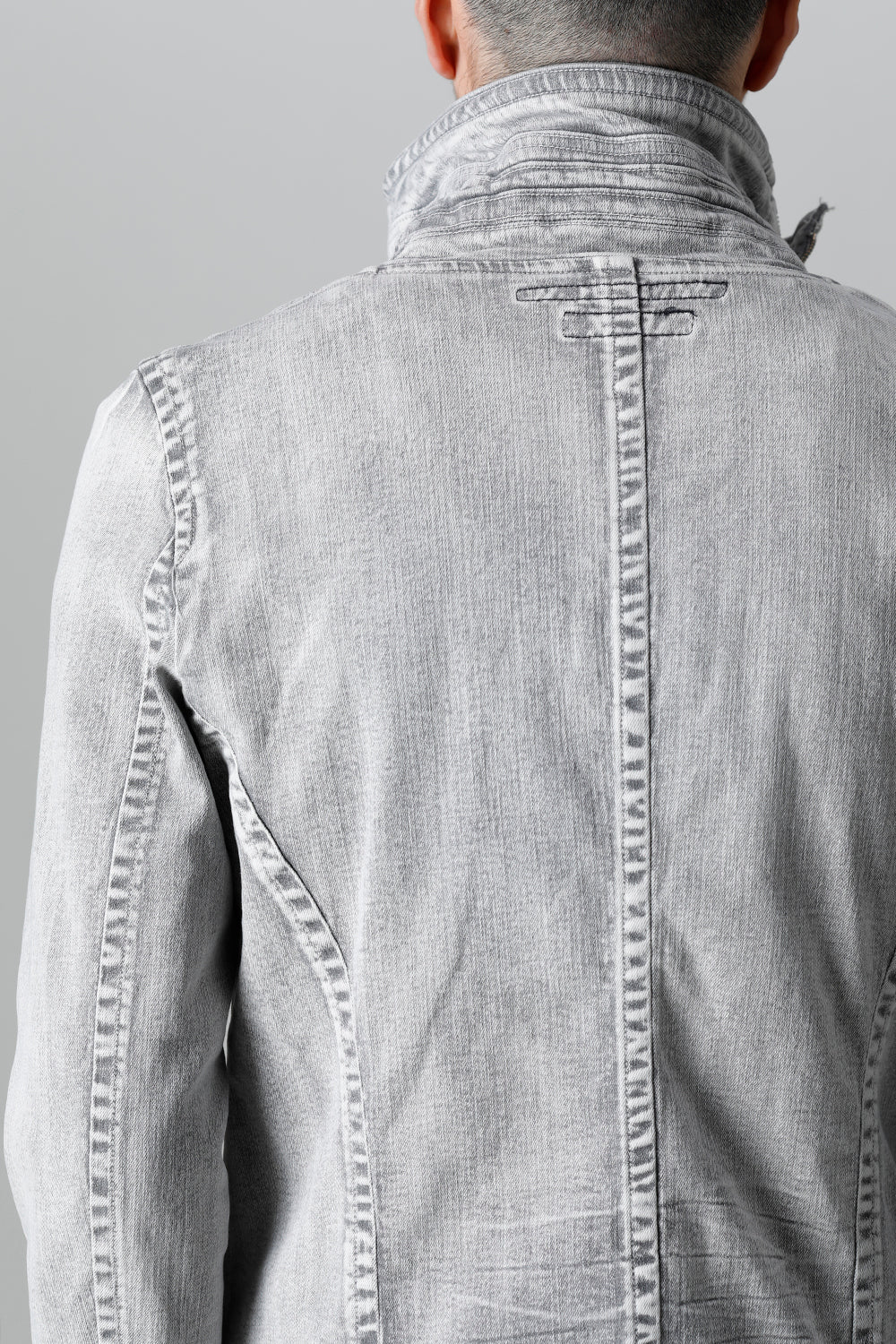 10.5oz ストレッチデニムを使用したカバードネックジャケット。