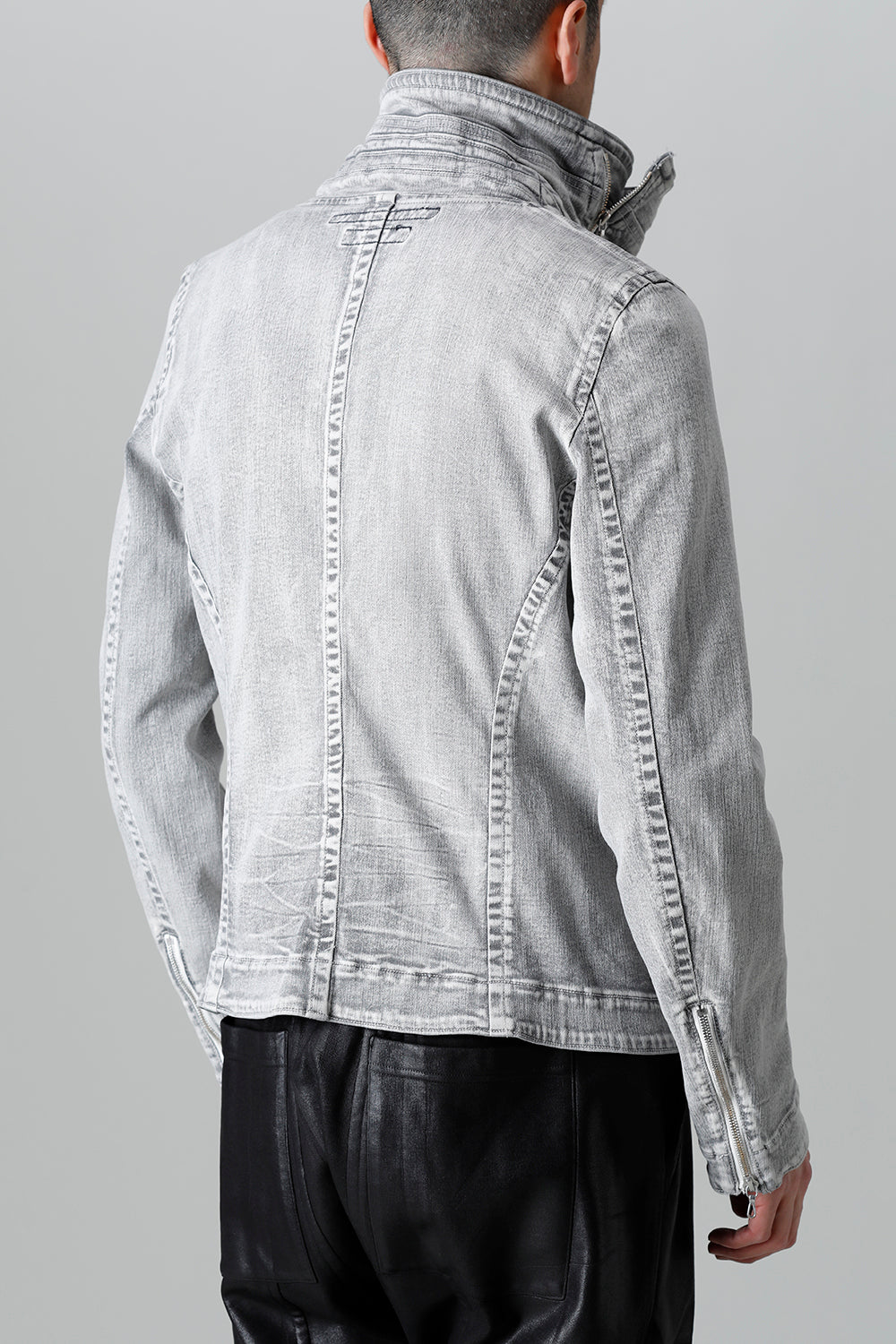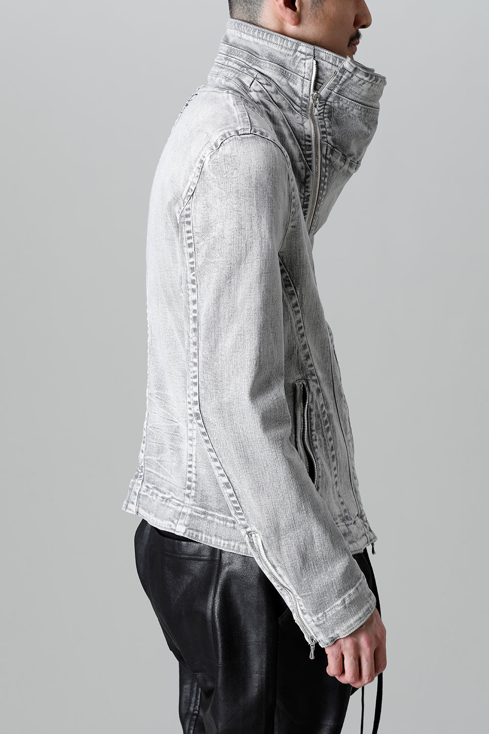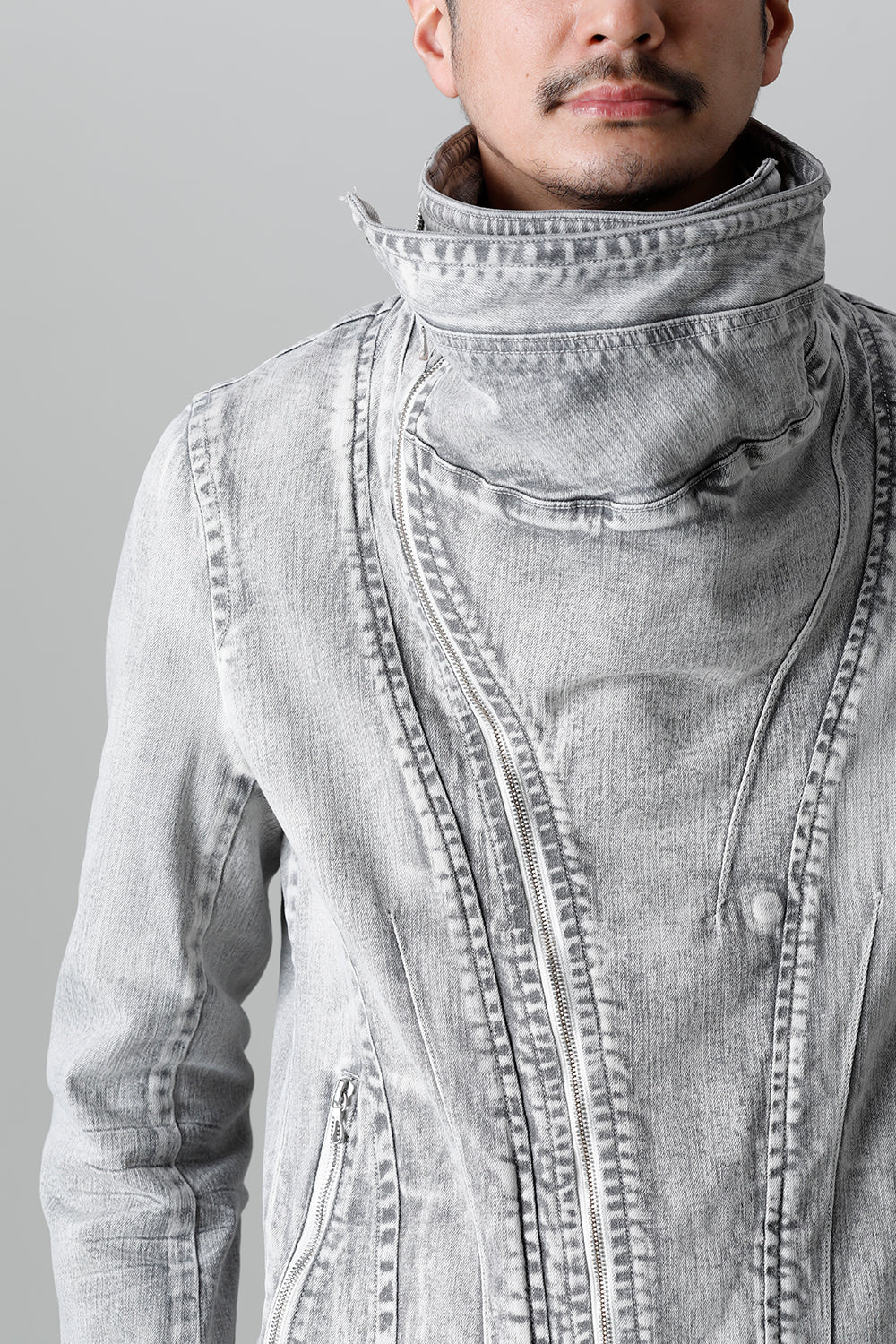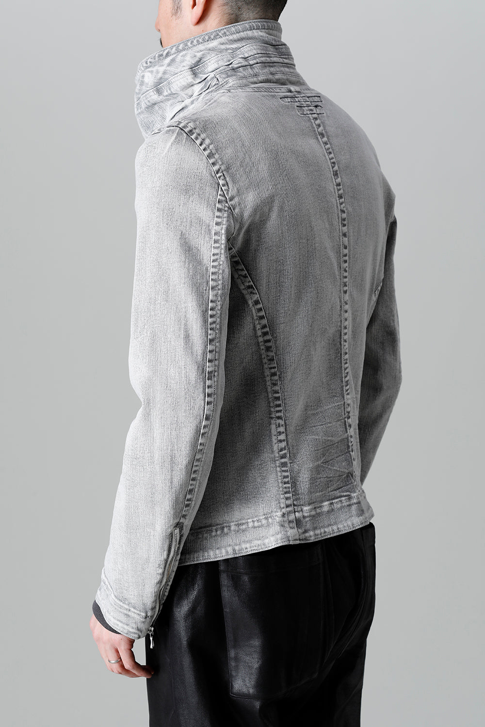 10.5oz ストレッチデニムを使用したカバードネックジャケット。