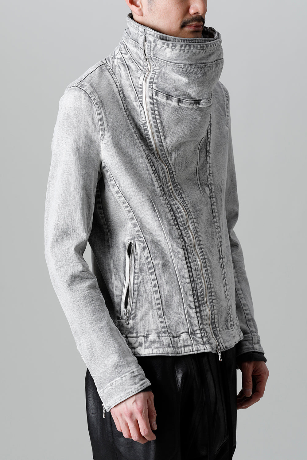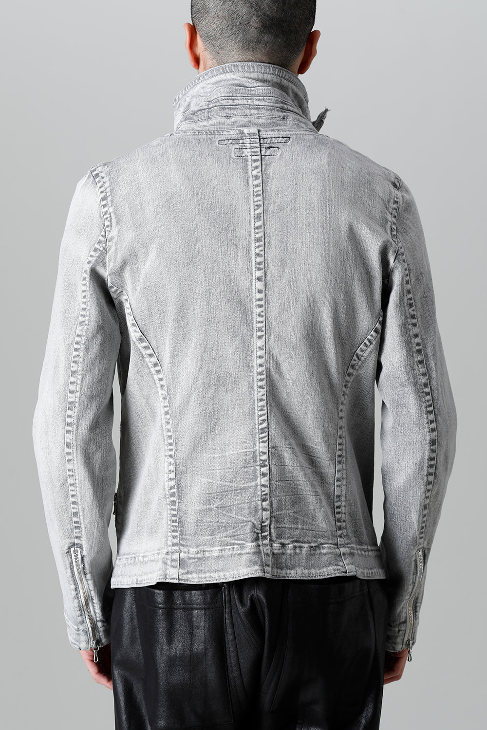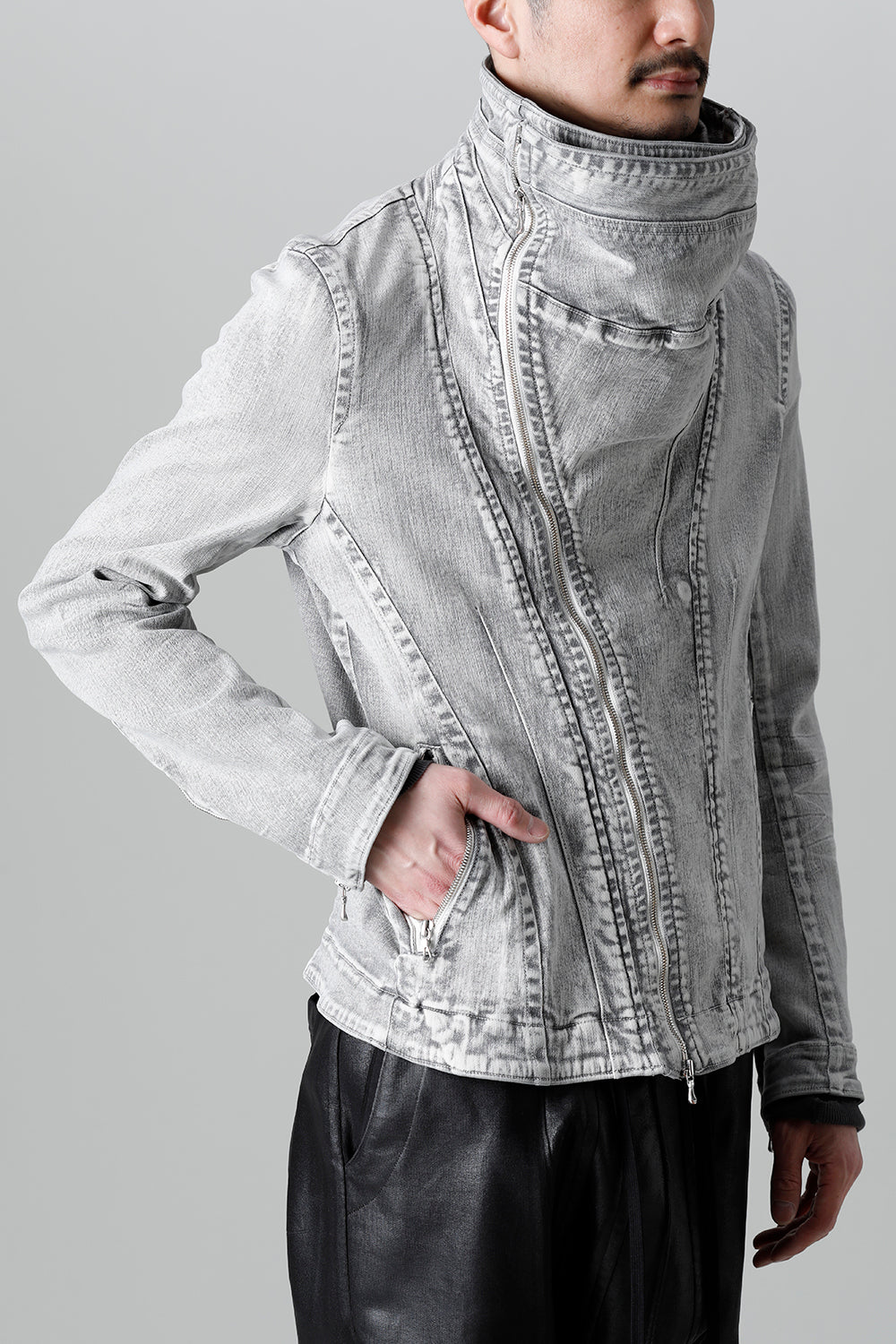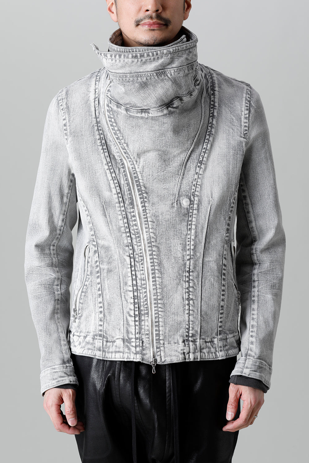 10.5oz ストレッチデニムを使用したカバードネックジャケット。