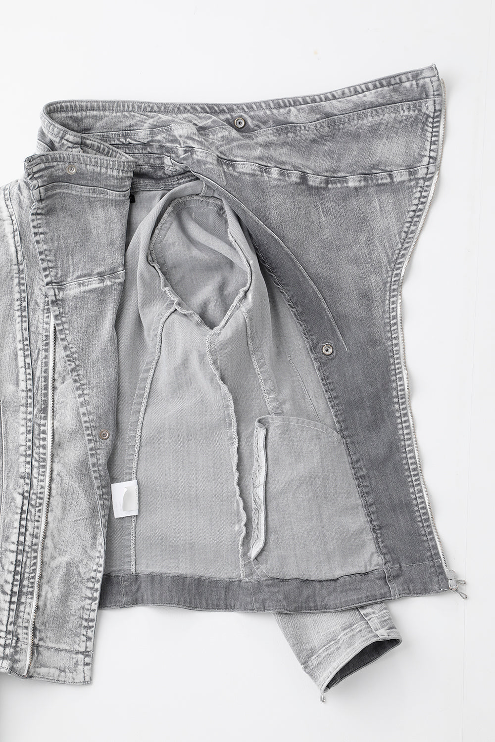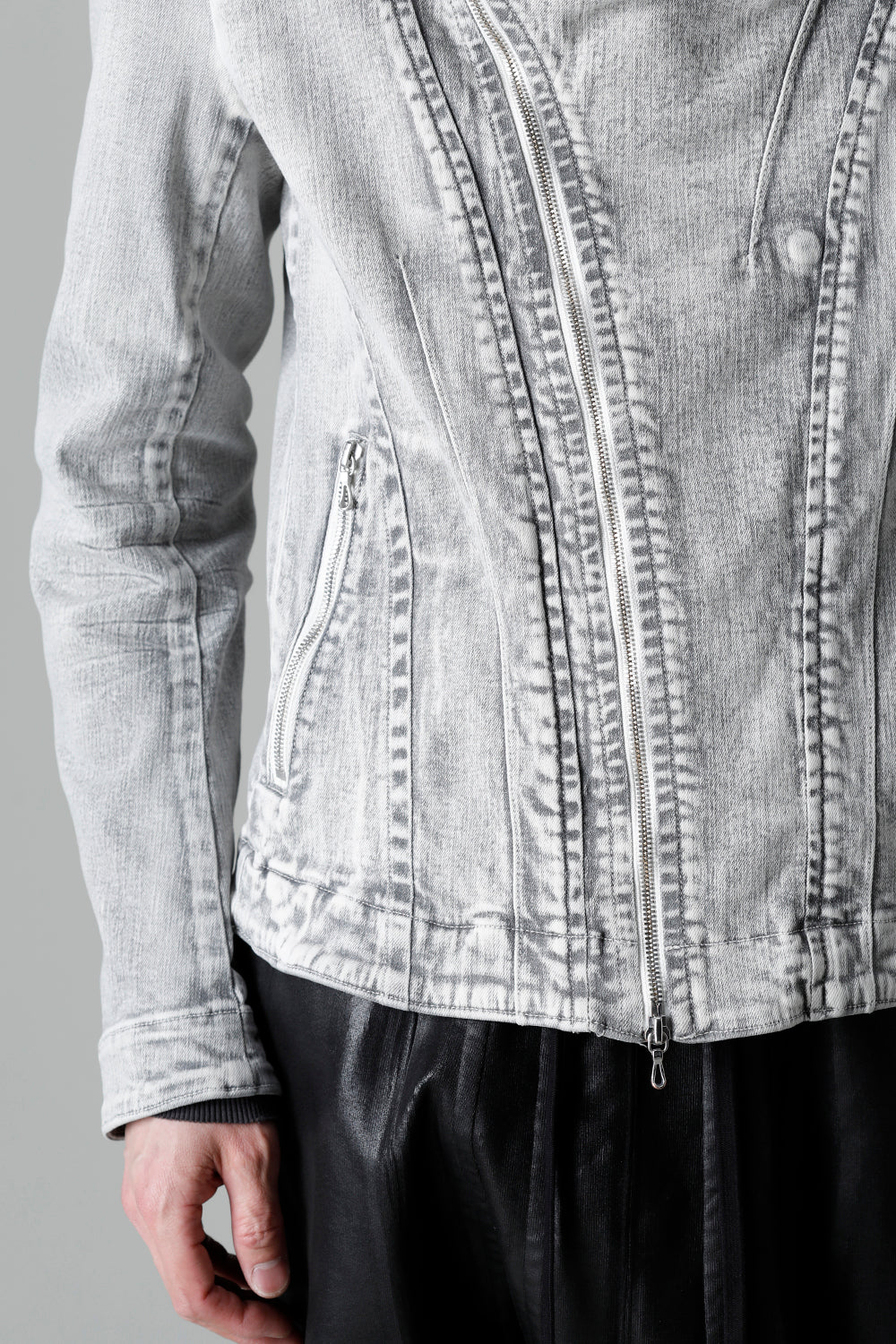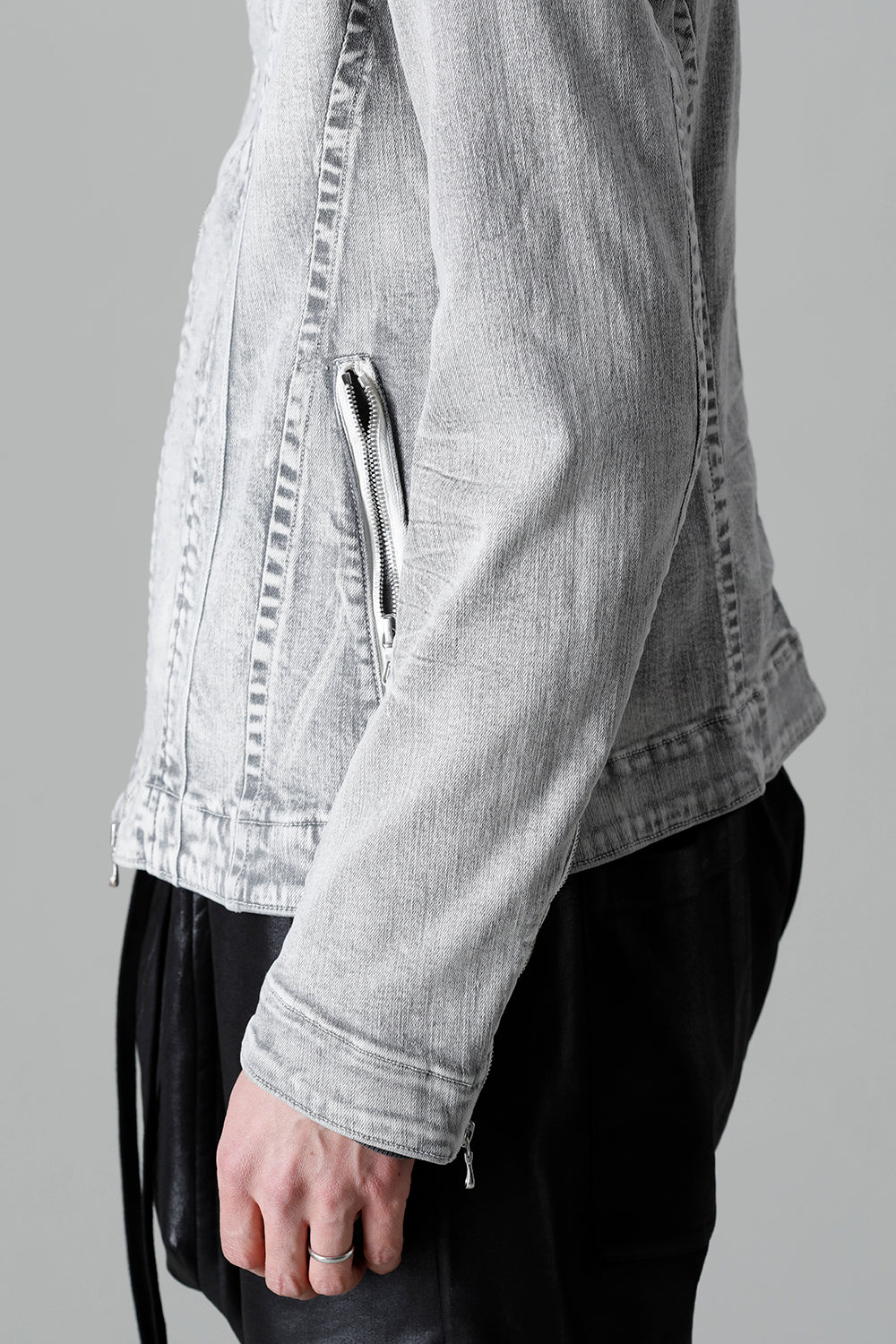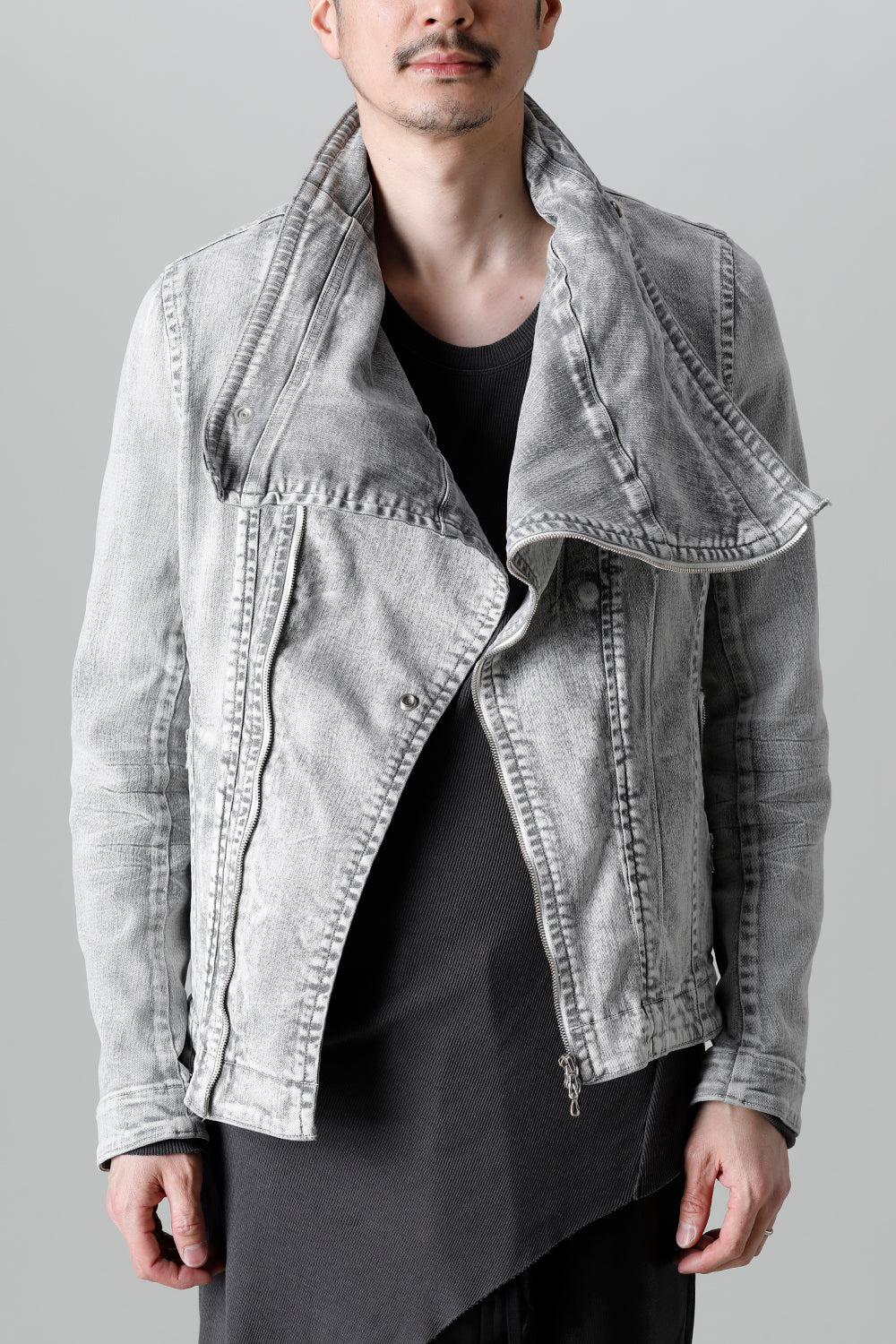 10.5oz ストレッチデニムを使用したカバードネックジャケット。