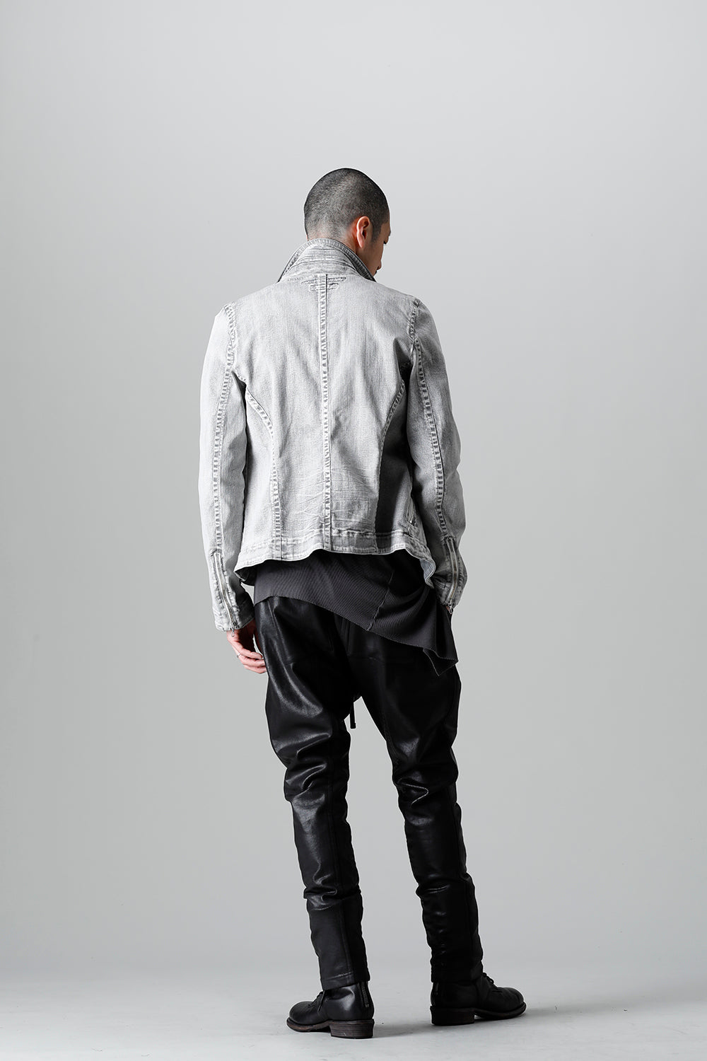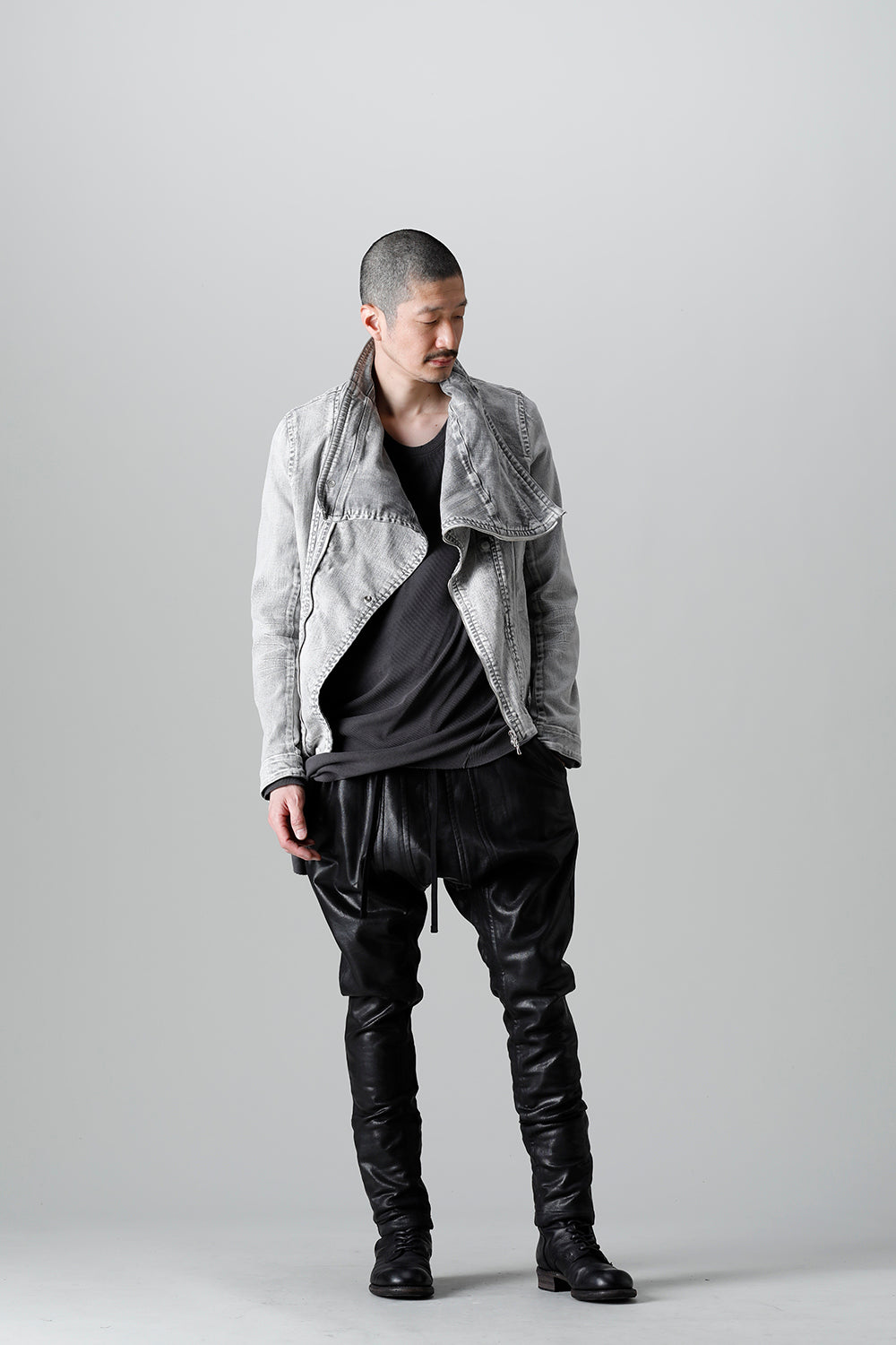 ブラックデニムをブリーチしてカラーを表現しており、退廃的な印象です。