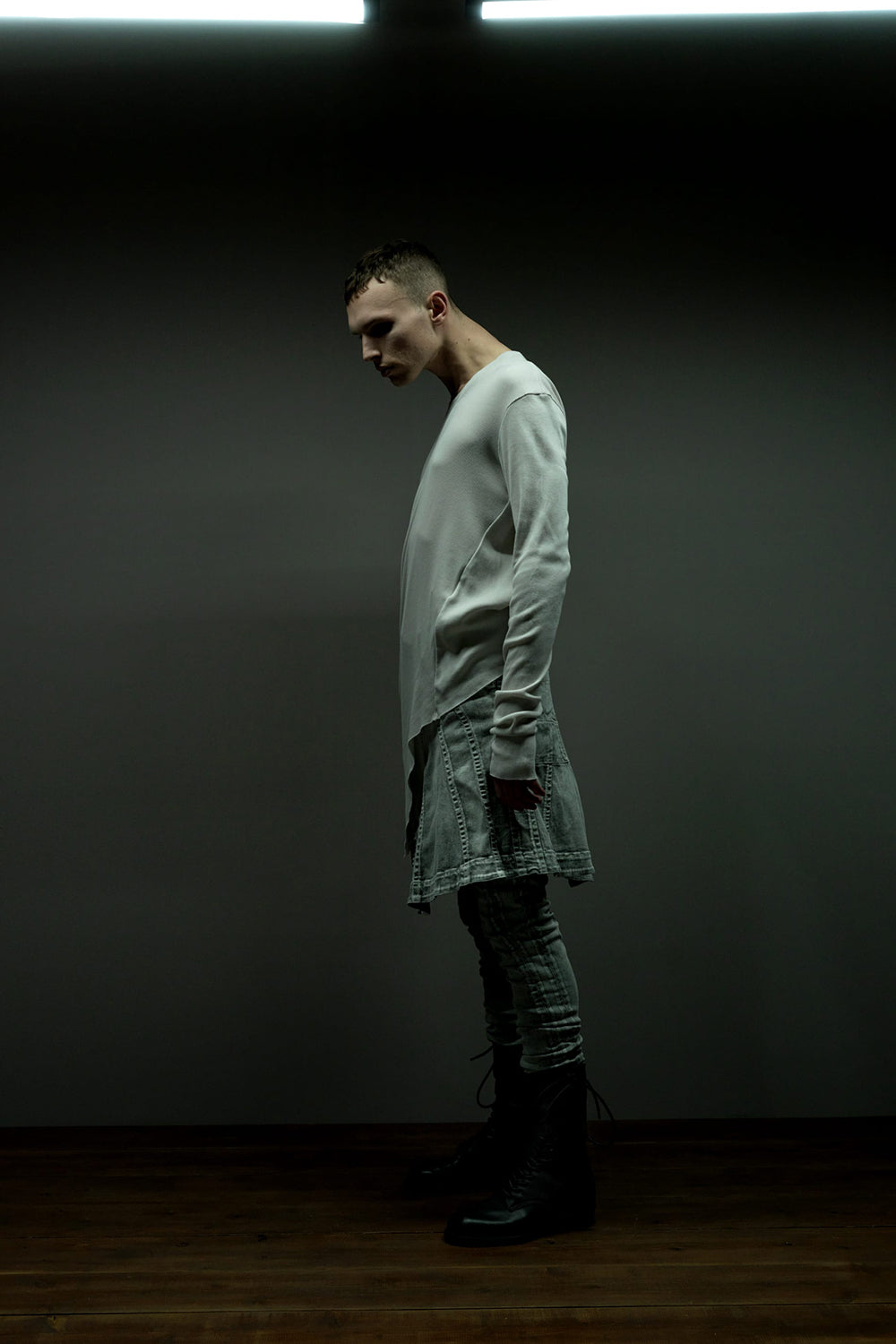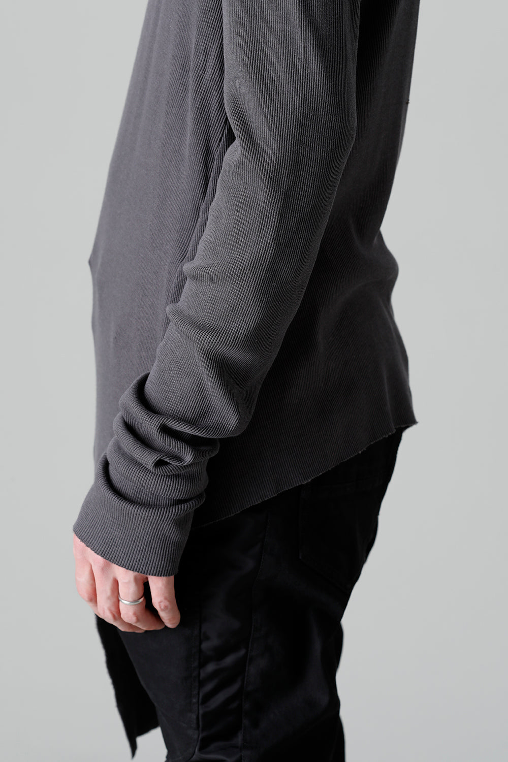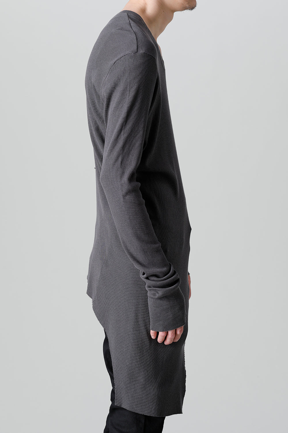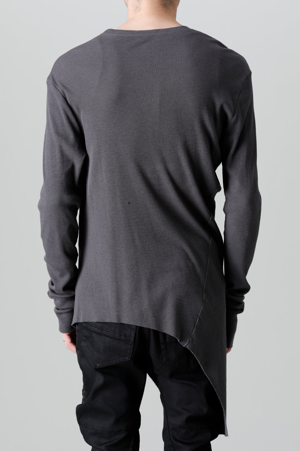 右裾が長く設計されたアシンメトリーなデザインで一癖あるレイヤードをお楽しみいただけます。