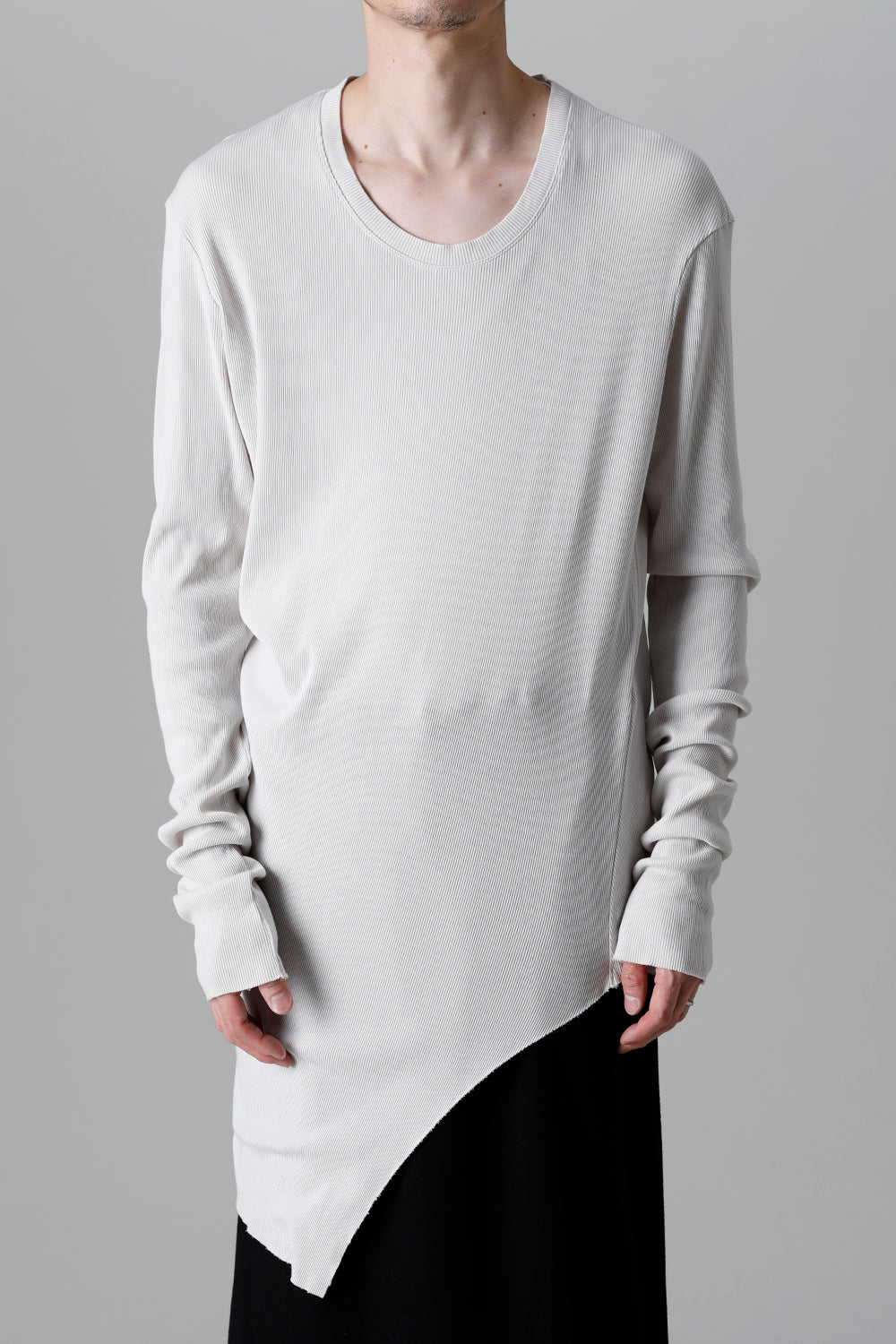 右裾が長く設計されたアシンメトリーなデザインで一癖あるレイヤードをお楽しみいただけます。