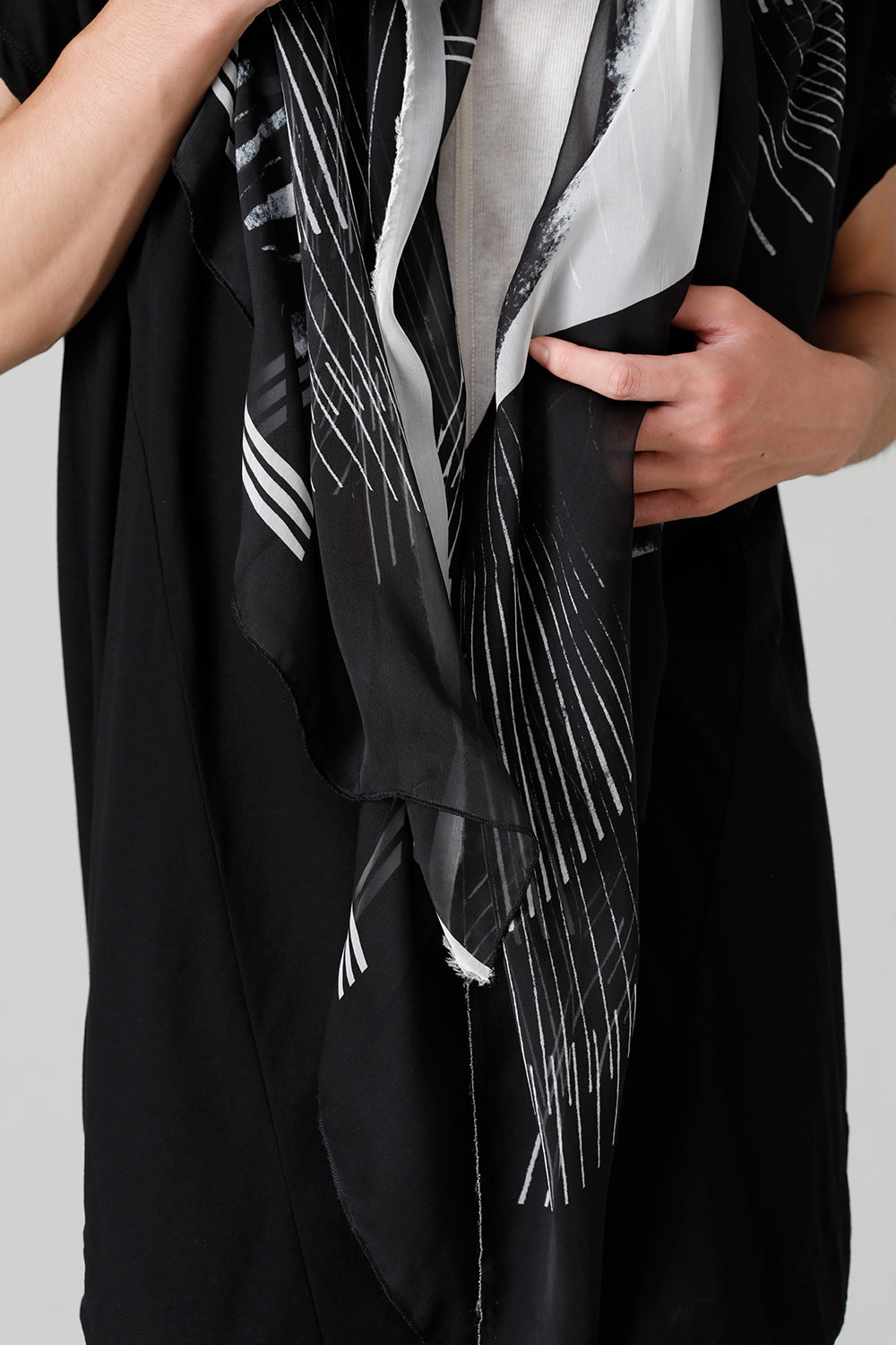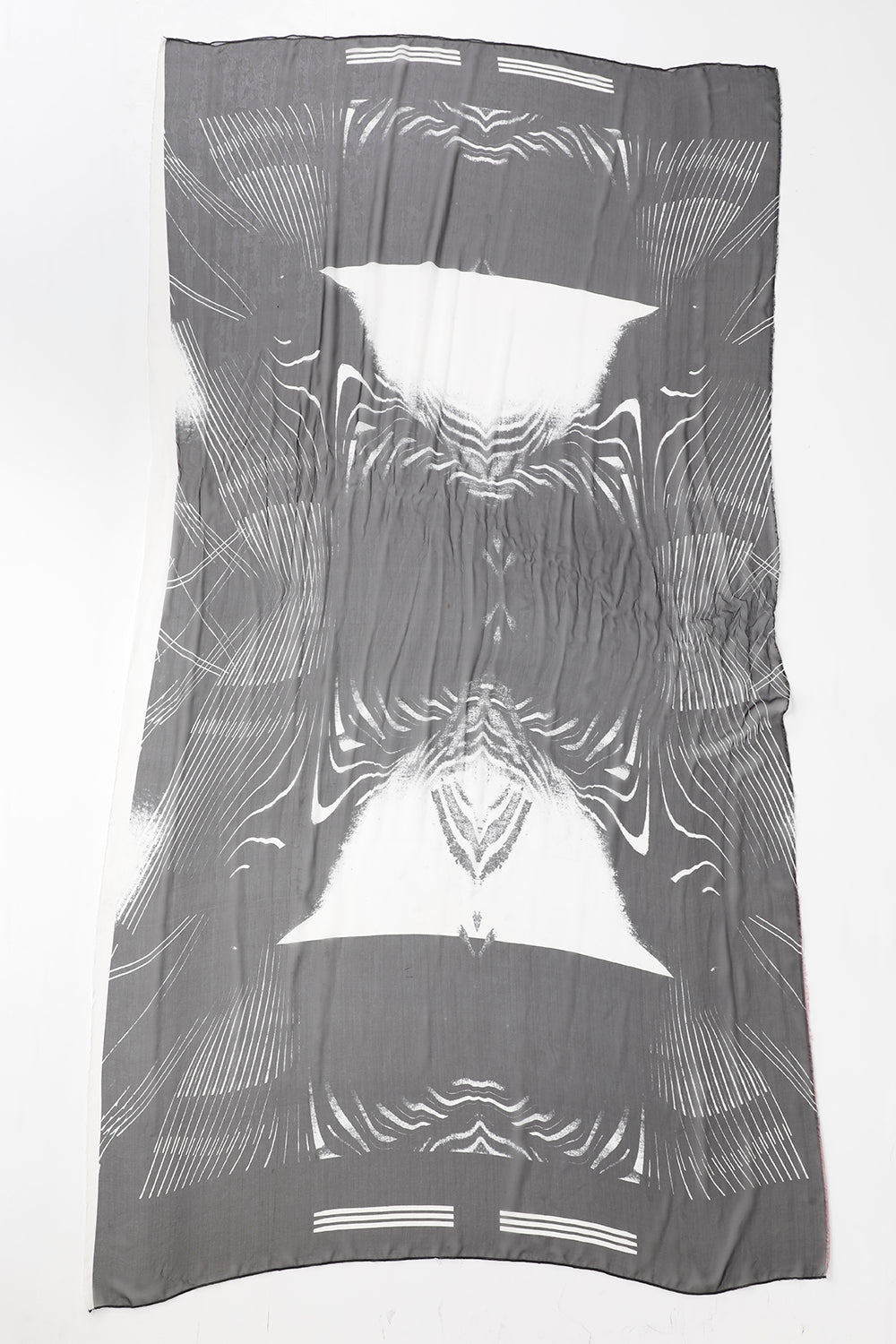 今シーズンのテーマグラフィックを前面にプリントされた大判ストール。