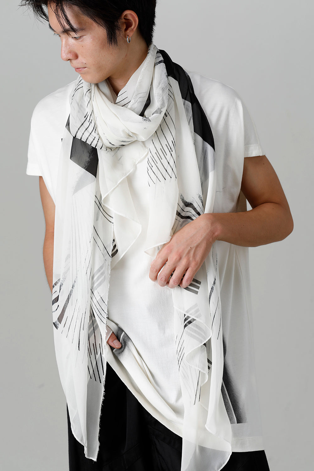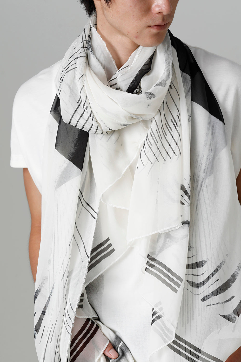 今シーズンのテーマグラフィックを前面にプリントされた大判ストール。