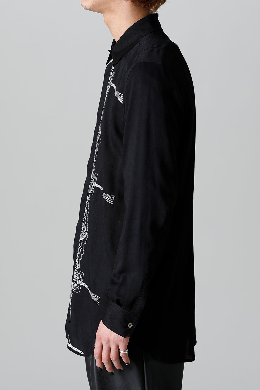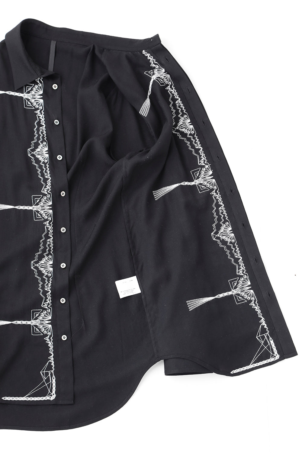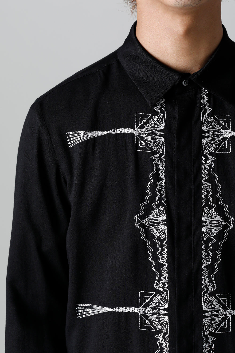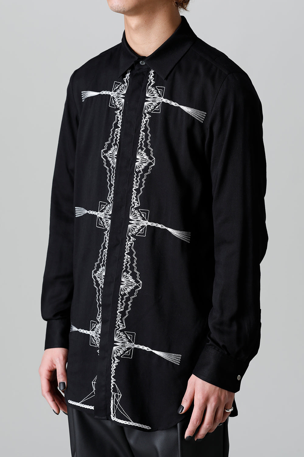 レーヨン ツイル 刺繍 レギュラー シャツ ブラック