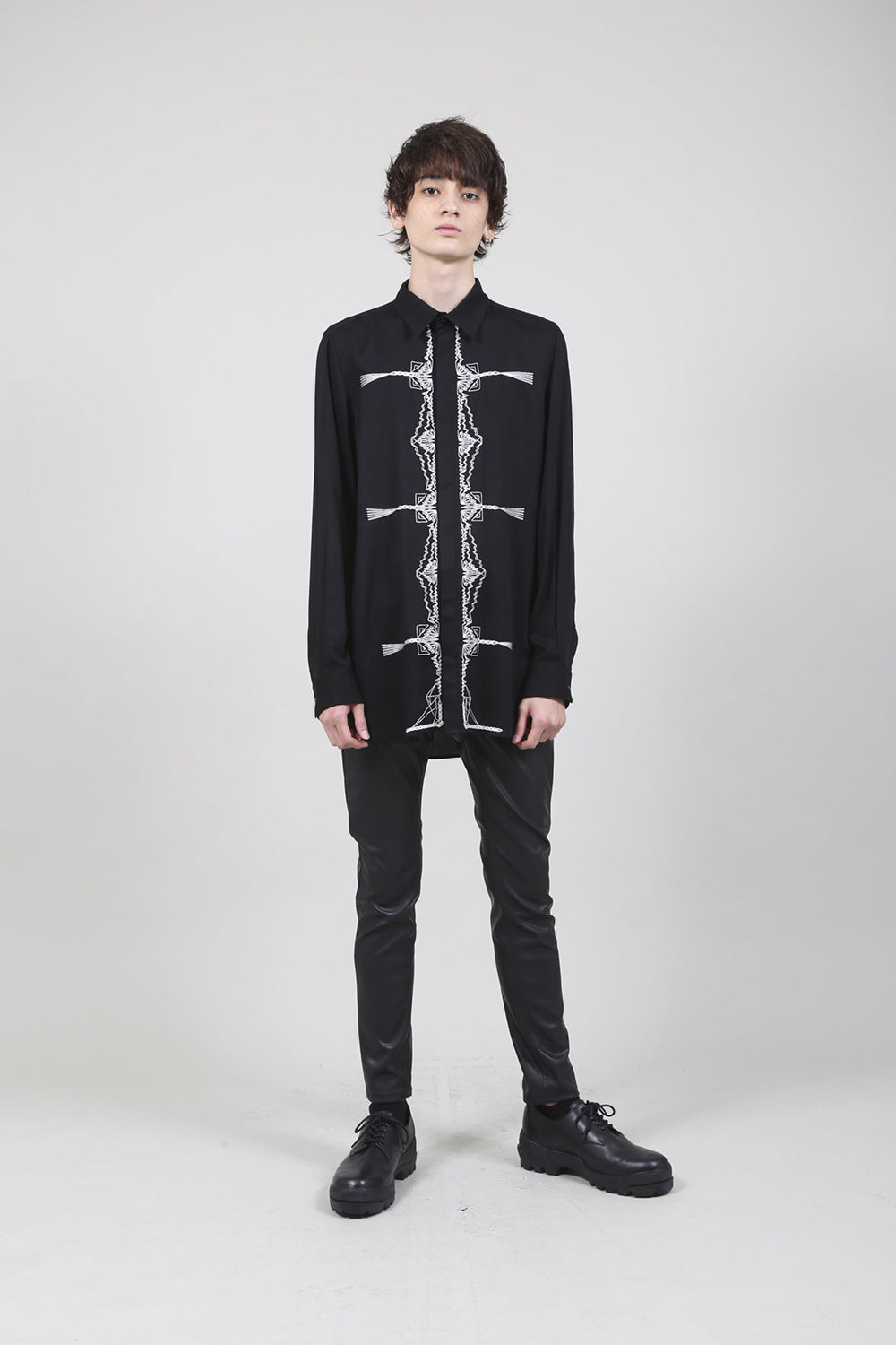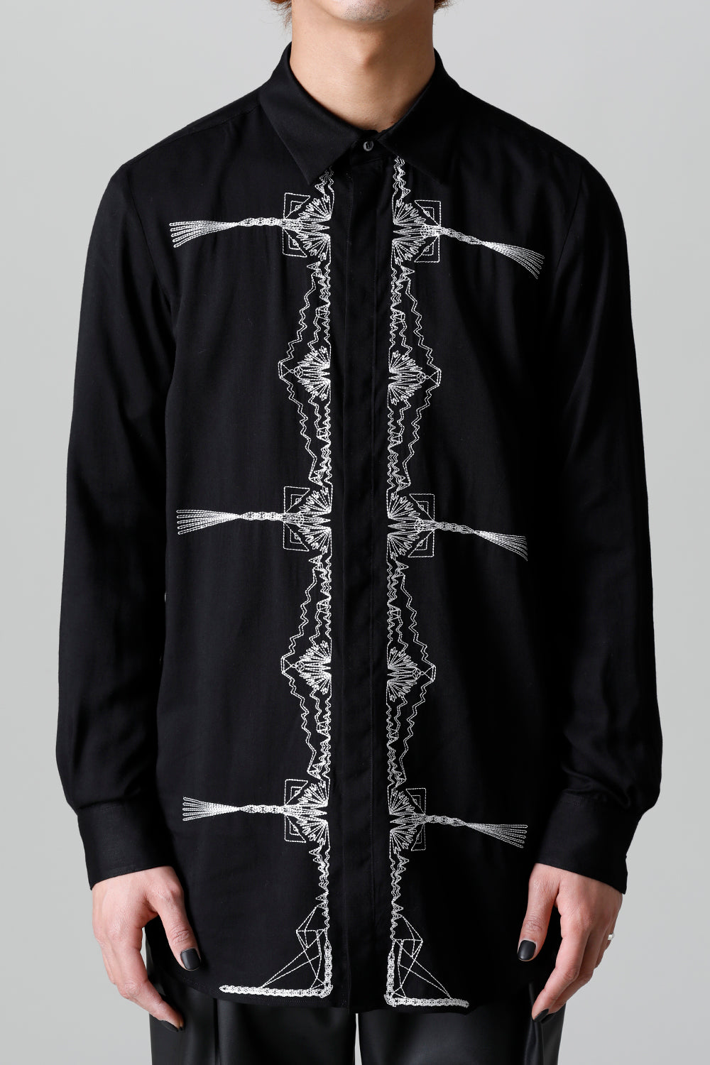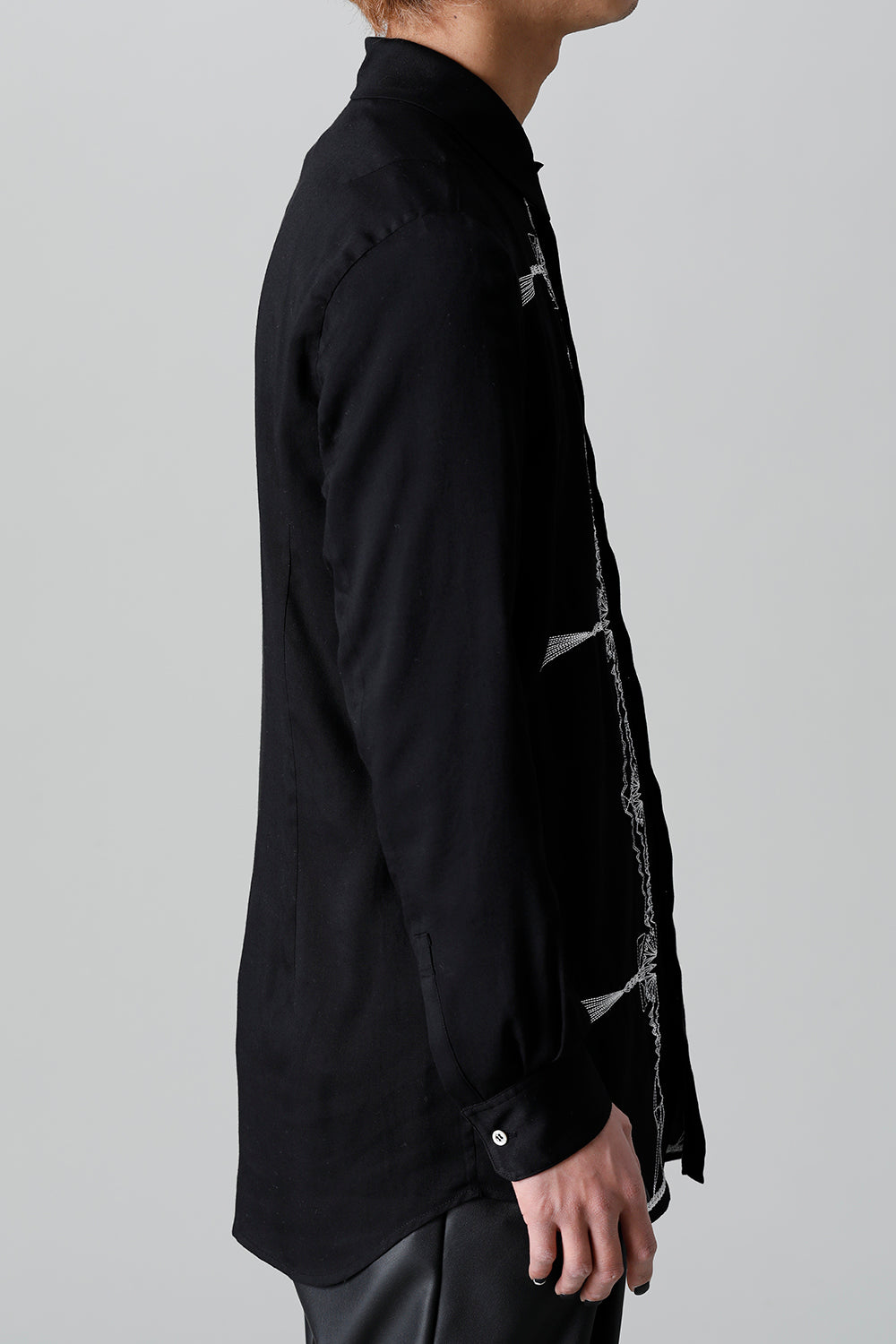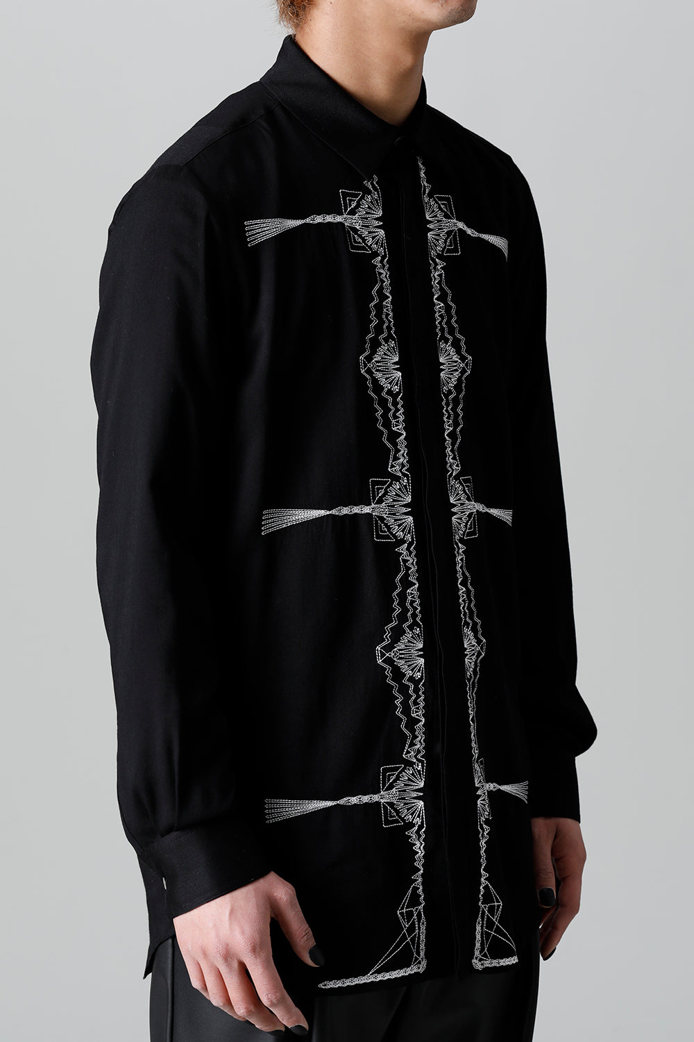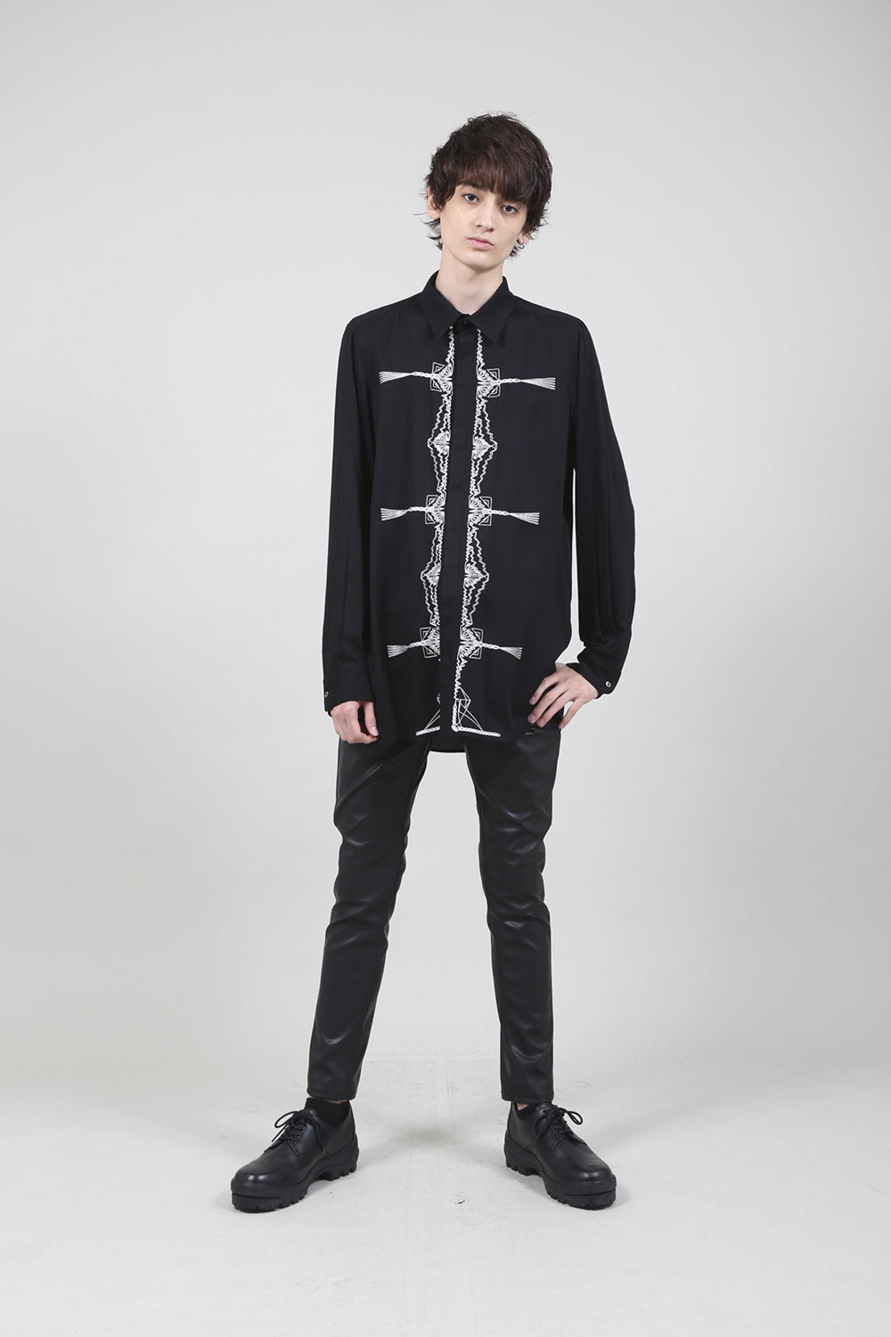 レーヨン ツイル 刺繍 レギュラー シャツ ブラック
