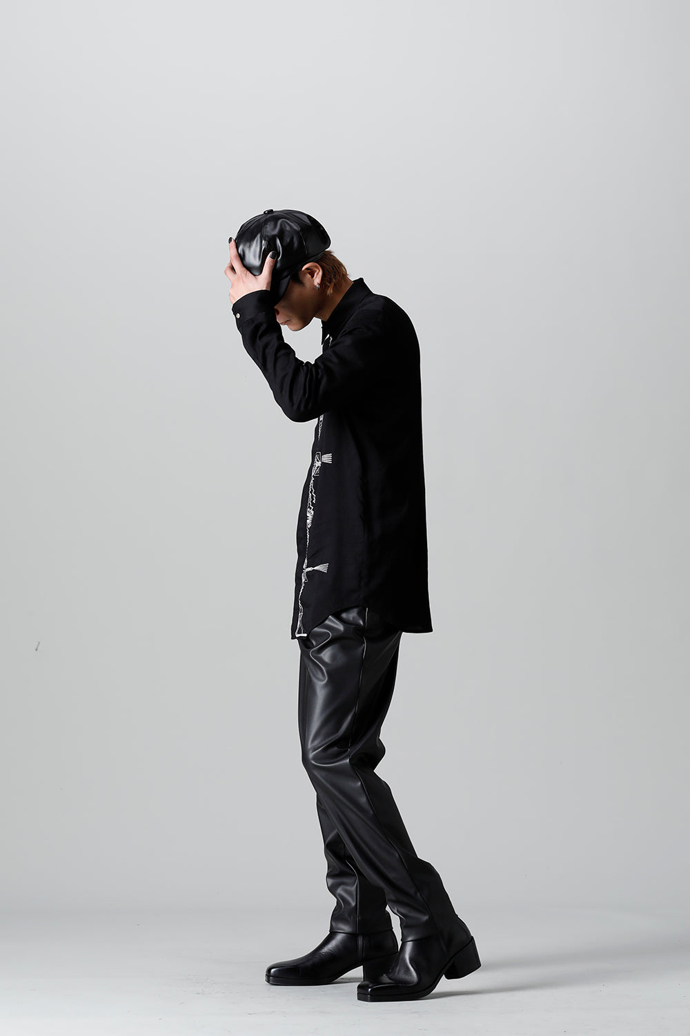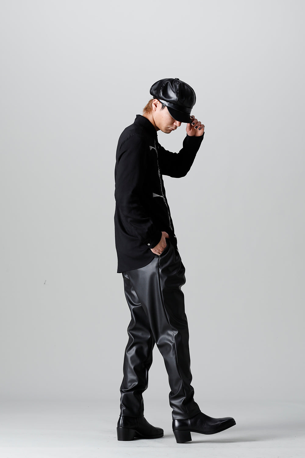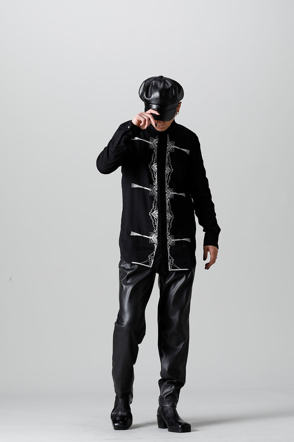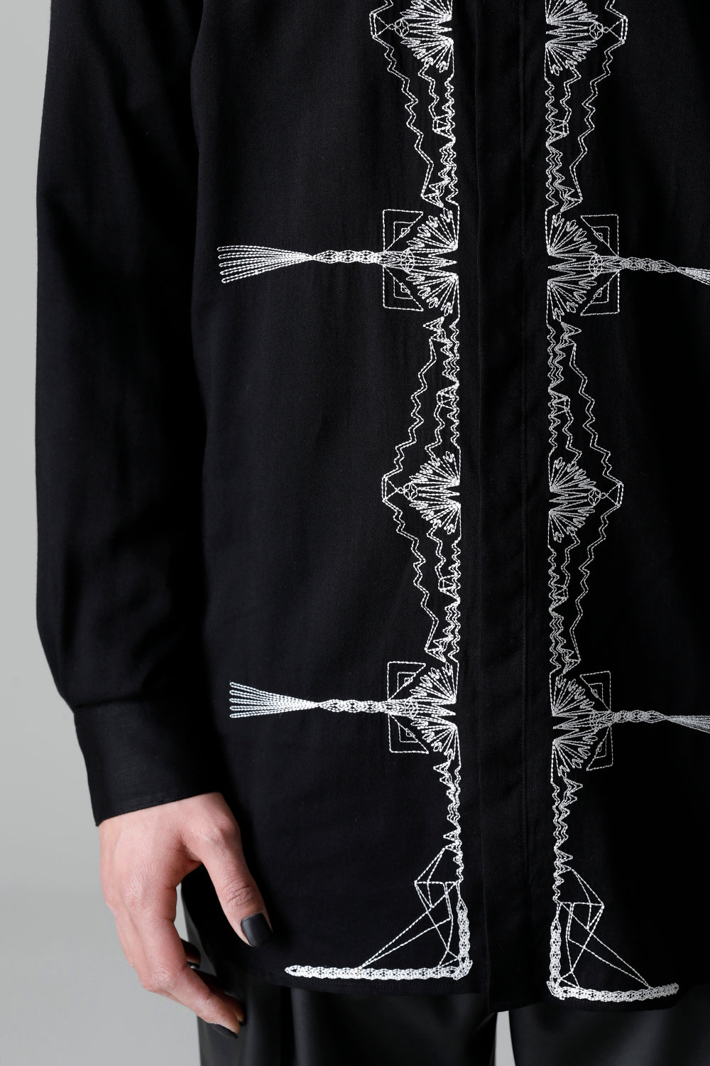 レーヨン ツイル 刺繍 レギュラー シャツ ブラック