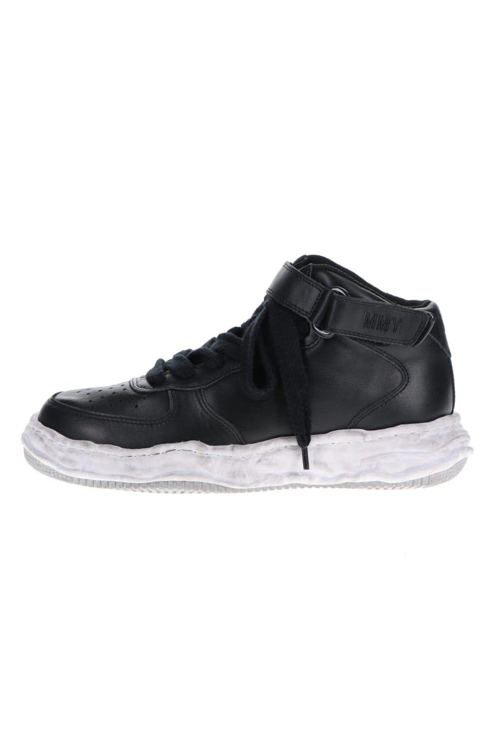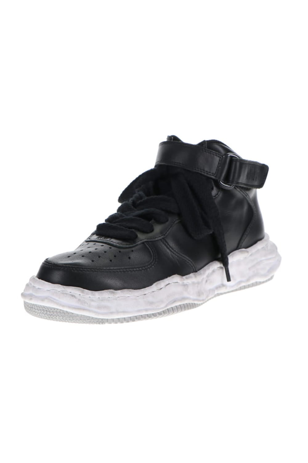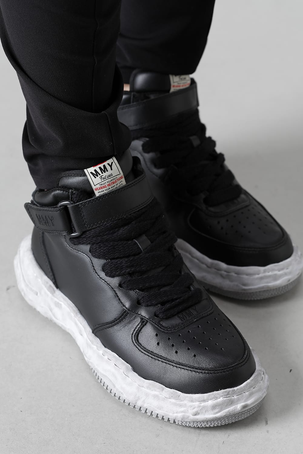 -ウェイン ハイ- オリジナルソール 汚し加工 レザー ハイトップ スニーカー Black