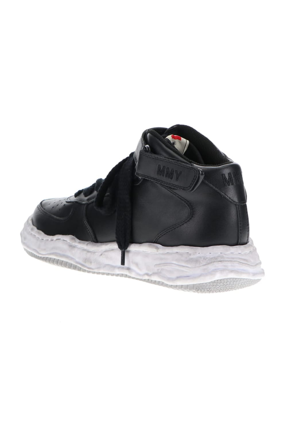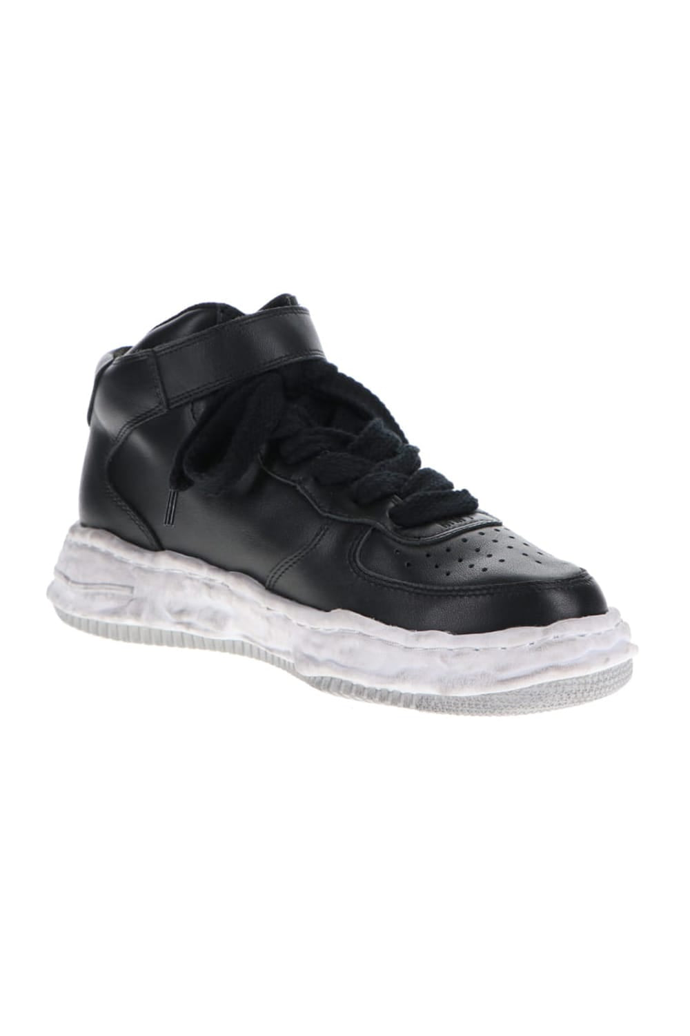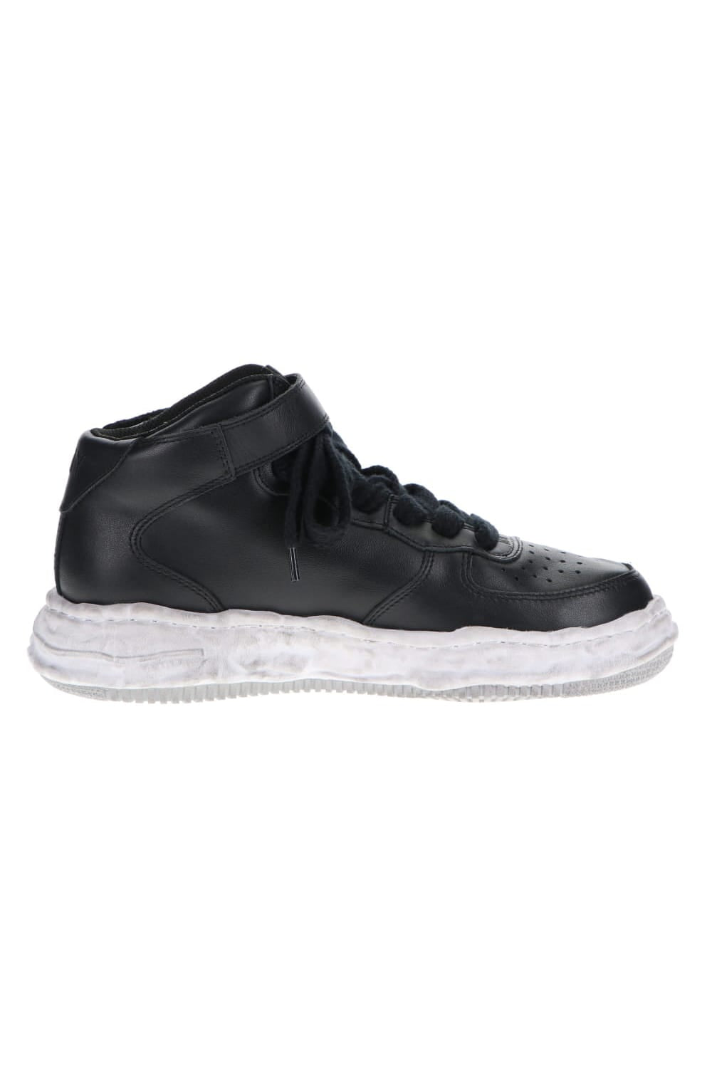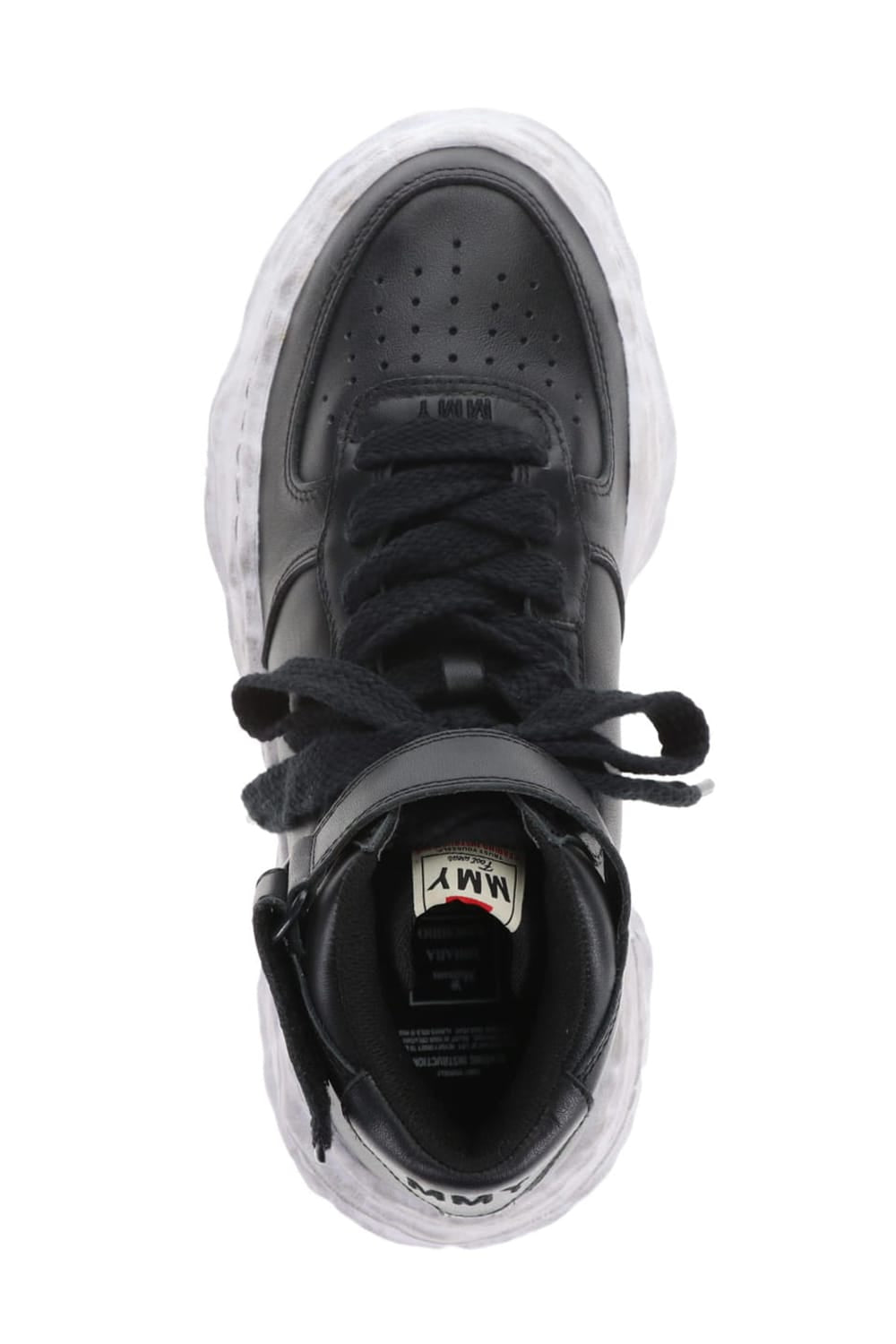 -ウェイン ハイ- オリジナルソール 汚し加工 レザー ハイトップ スニーカー Black