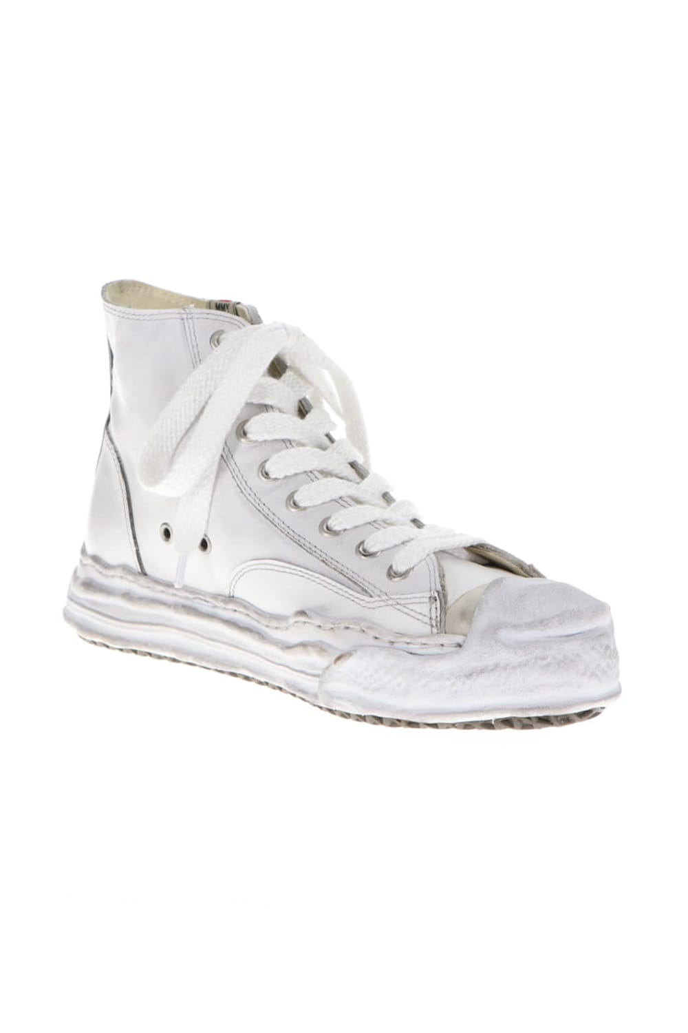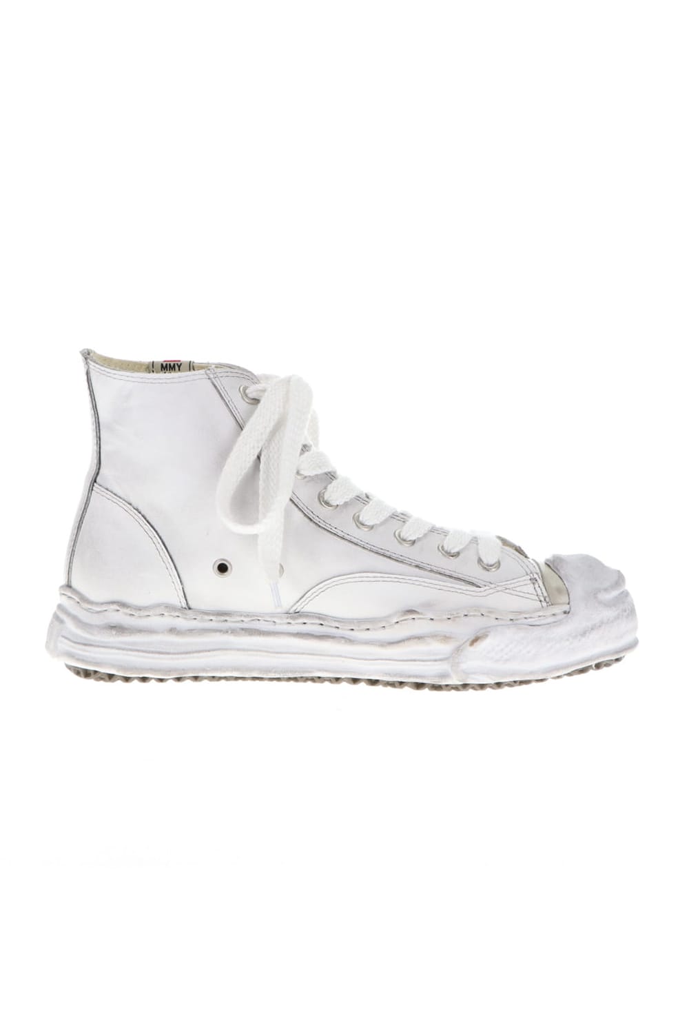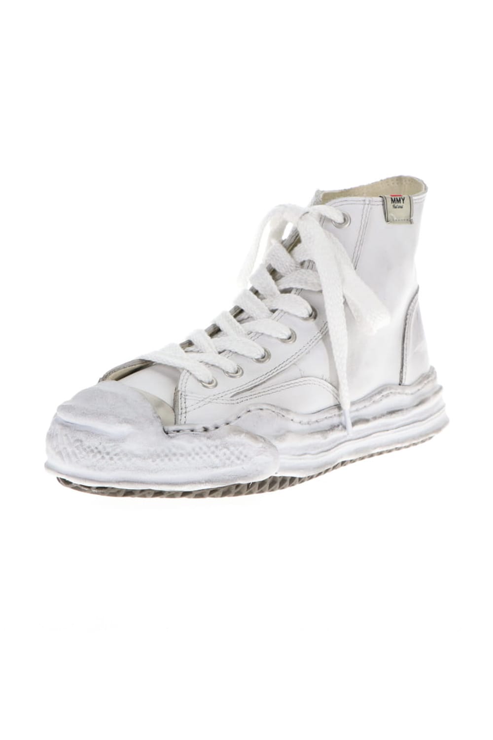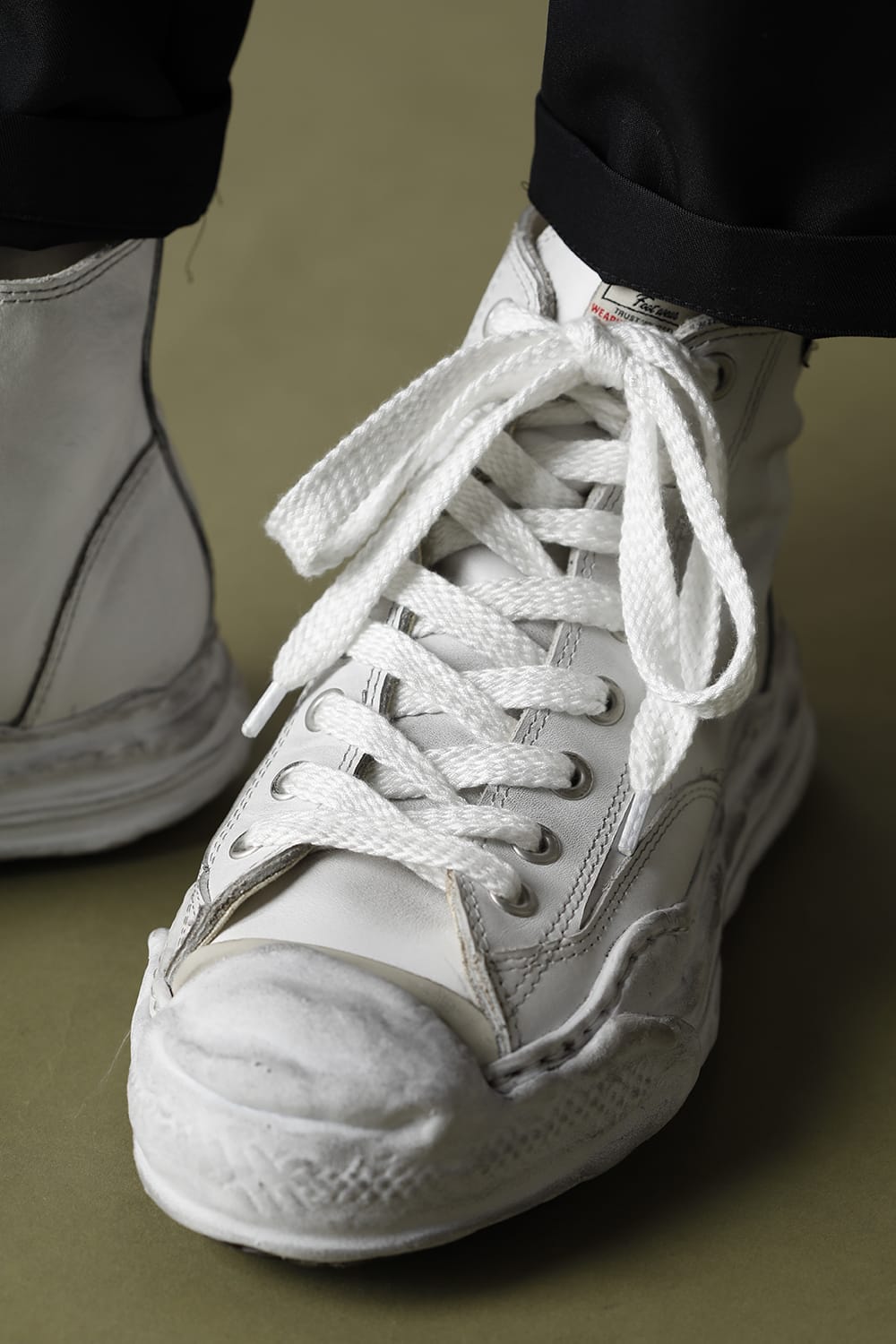 -ハンク ハイ- オリジナルソール 汚し加工 レザー ハイトップ スニーカー White