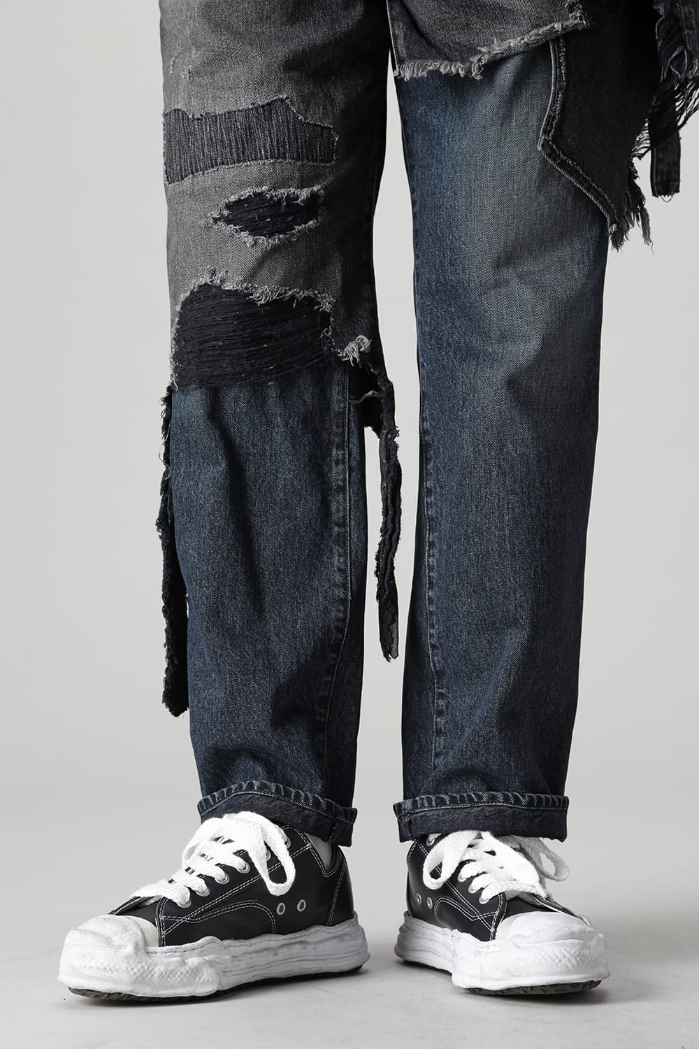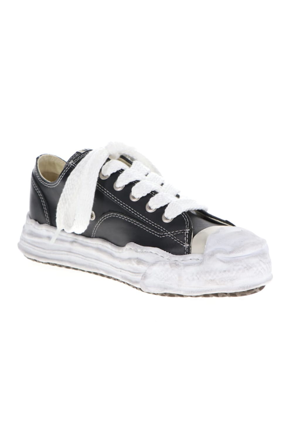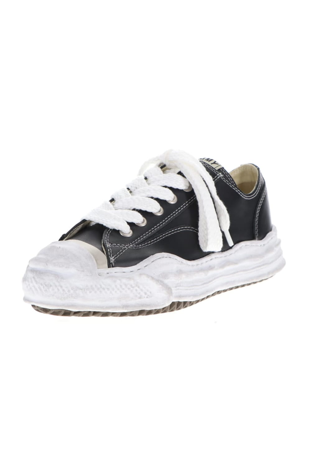 -ハンク ロー- オリジナルソール 汚し加工 レザー ロートップ スニーカー Black