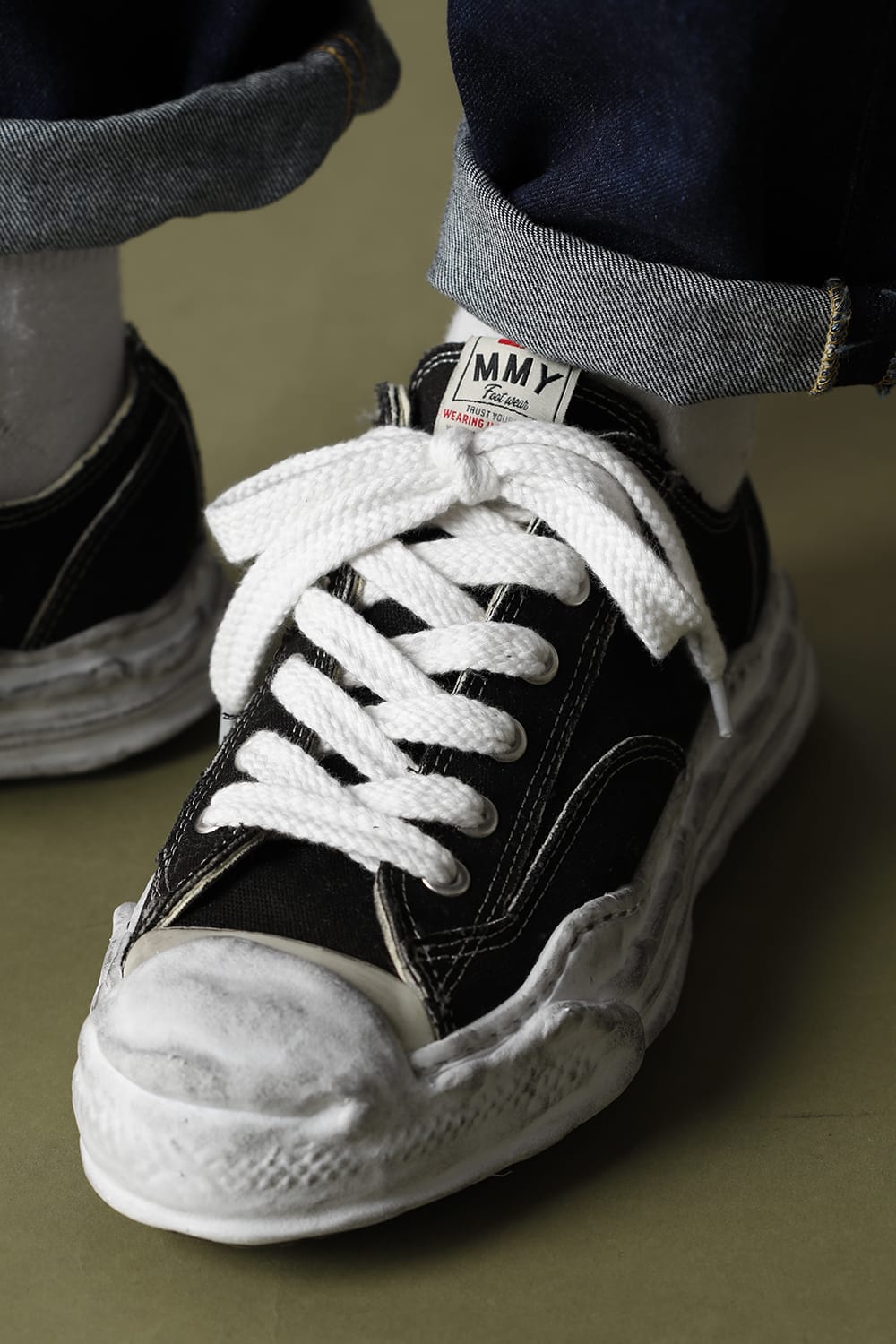 -ハンク ロー- オリジナルソール 汚し加工 キャンバス ロートップ スニーカー Black