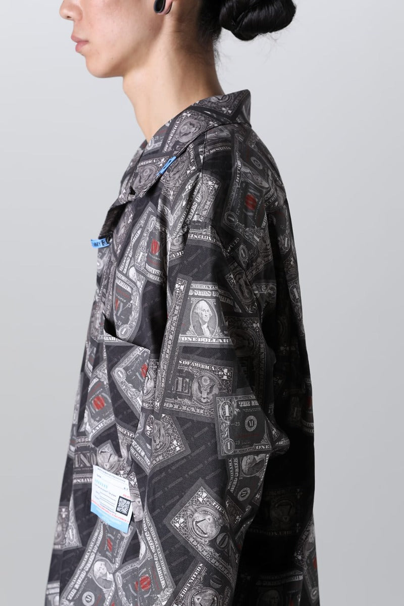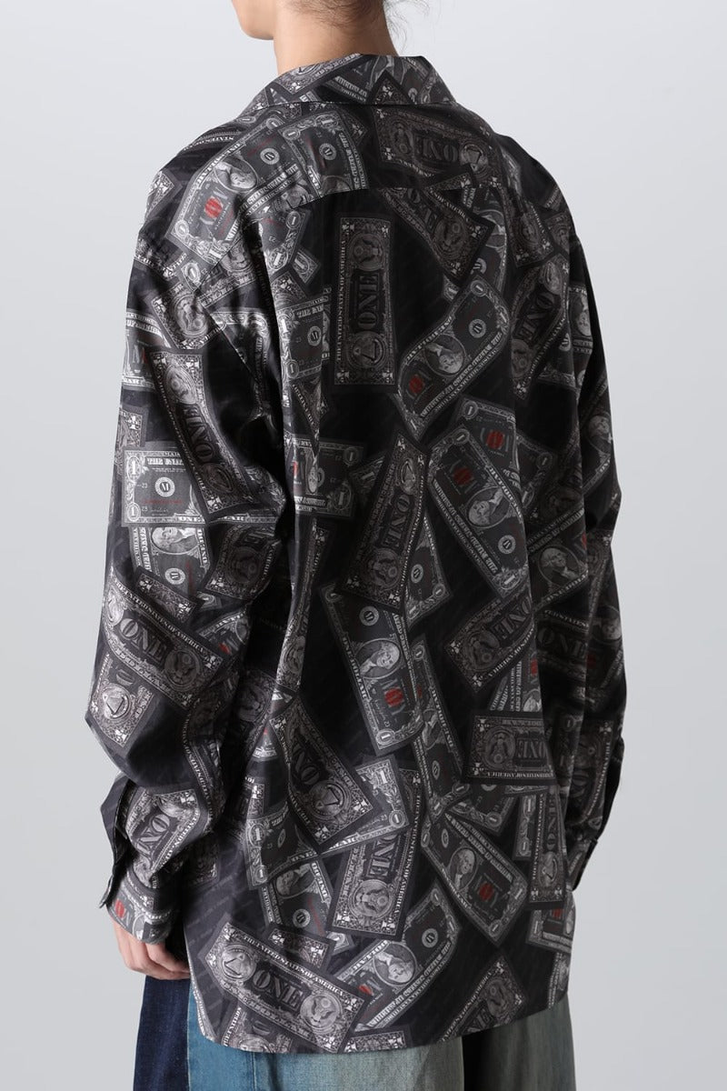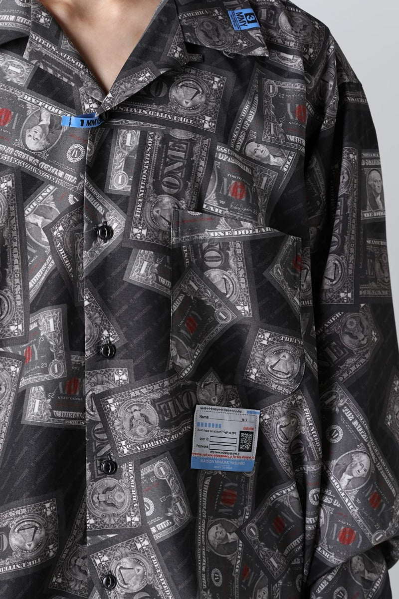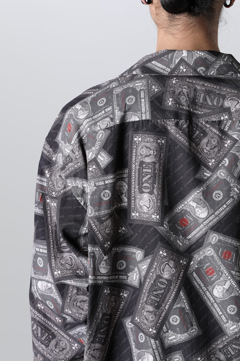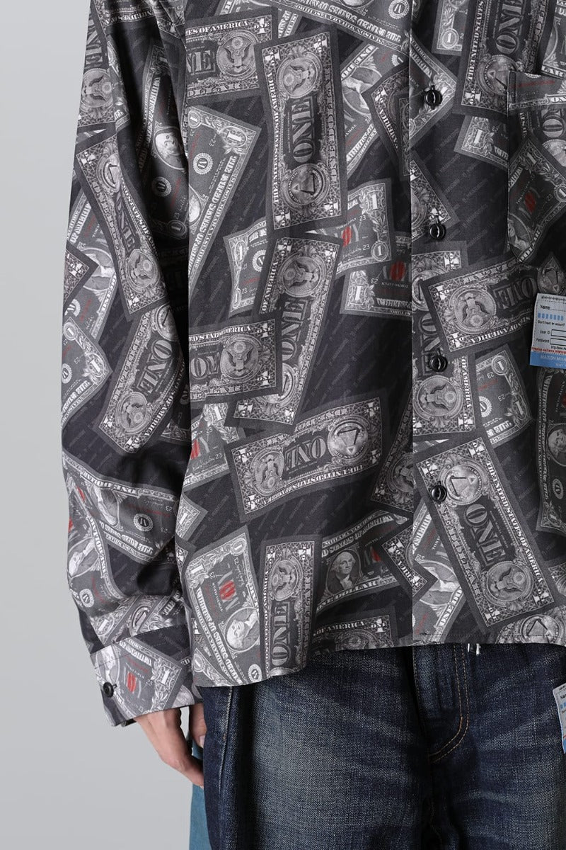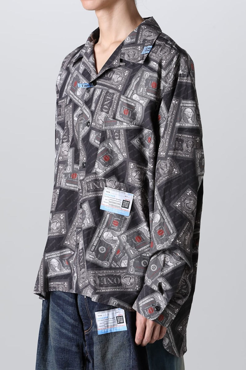 ・オリジナル紙幣柄プリントデザインのオーバーサイズオープンカラーシャツ