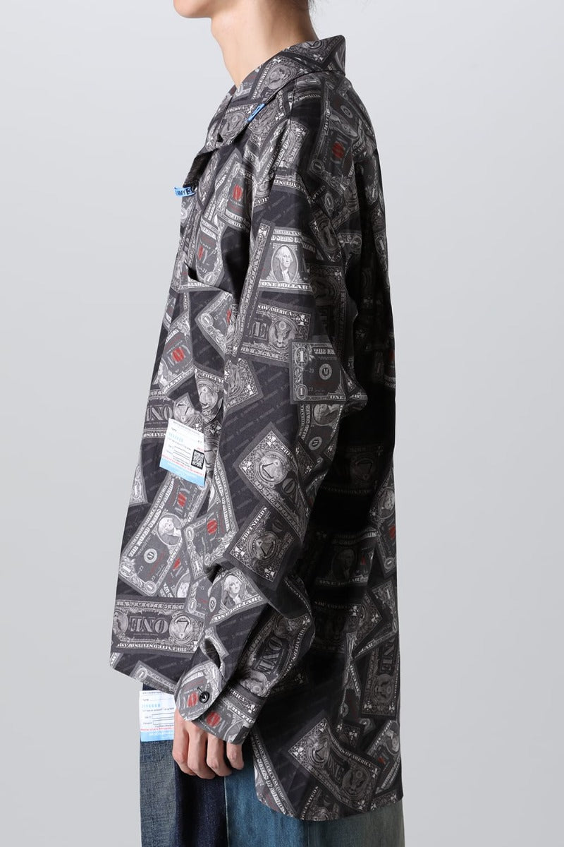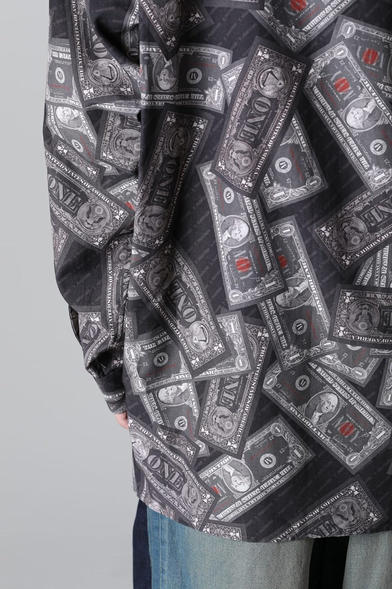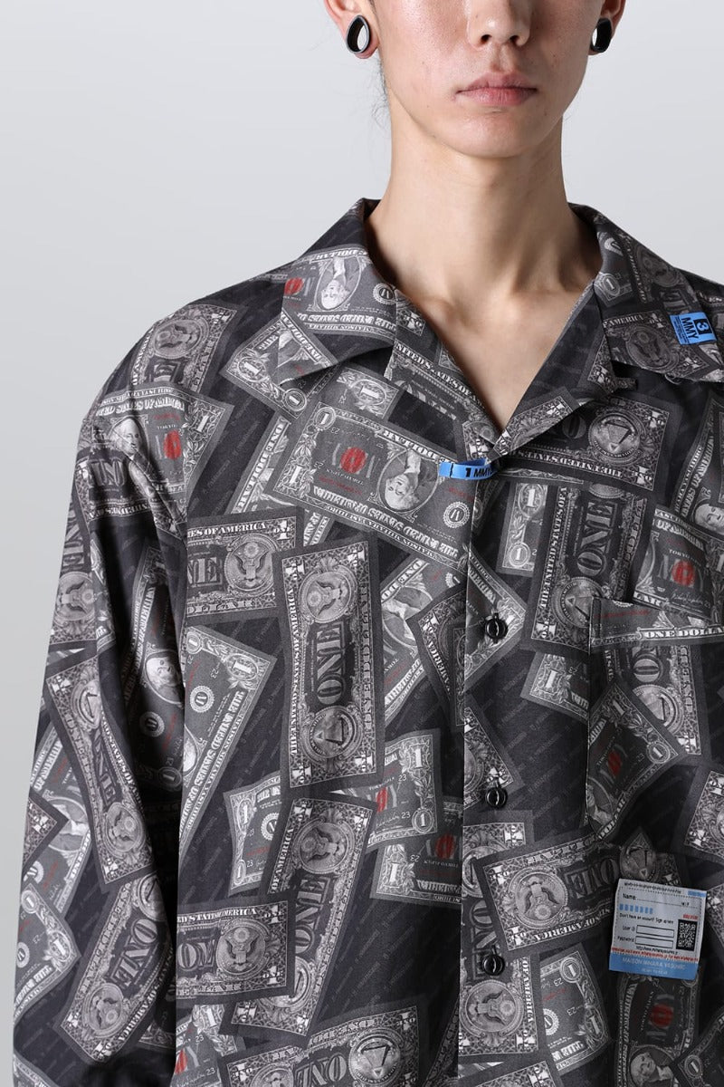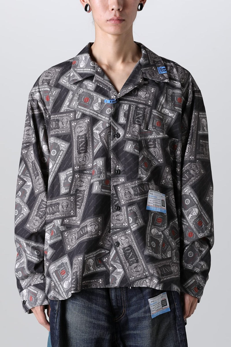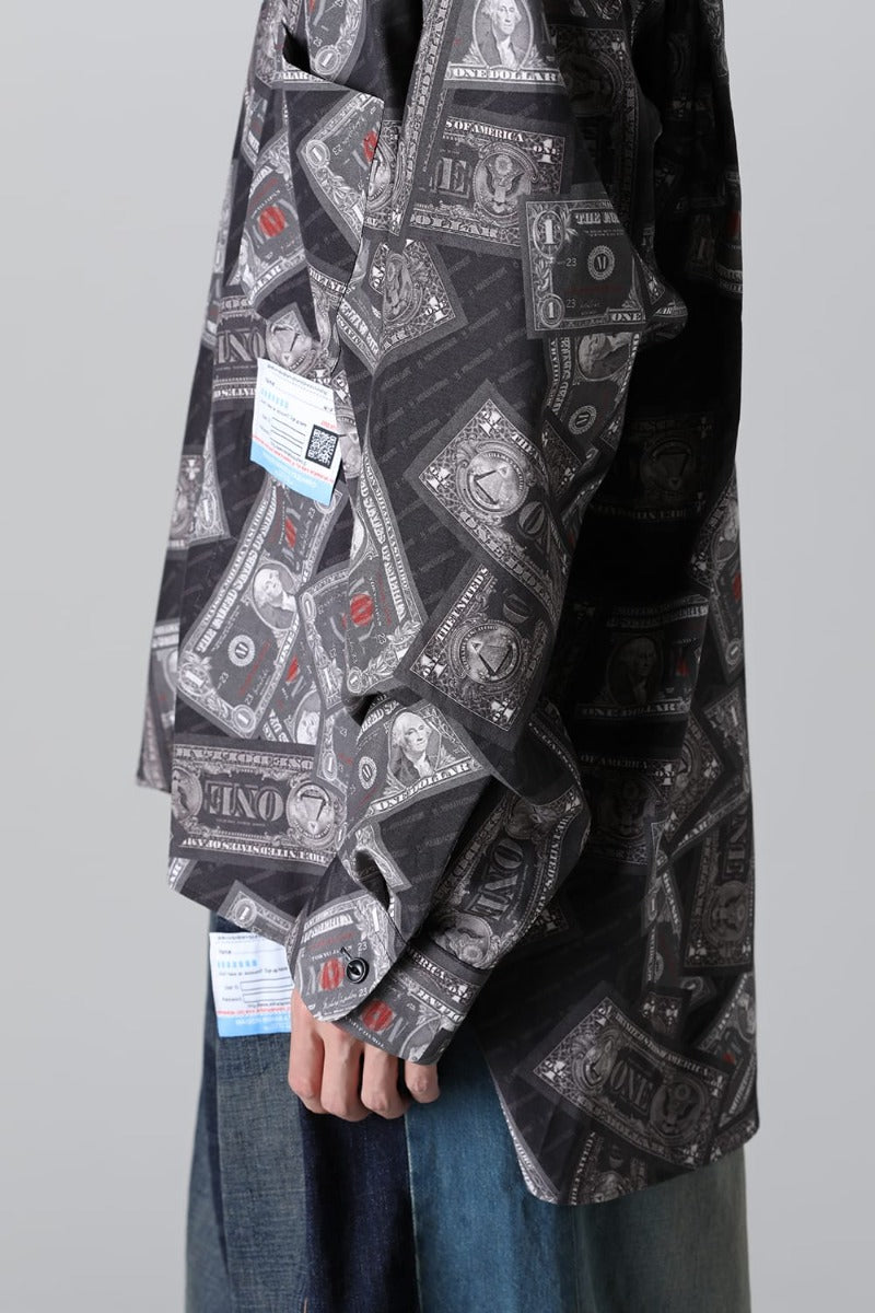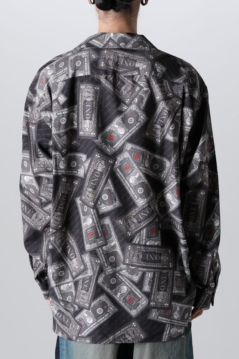 ・オリジナル紙幣柄プリントデザインのオーバーサイズオープンカラーシャツ