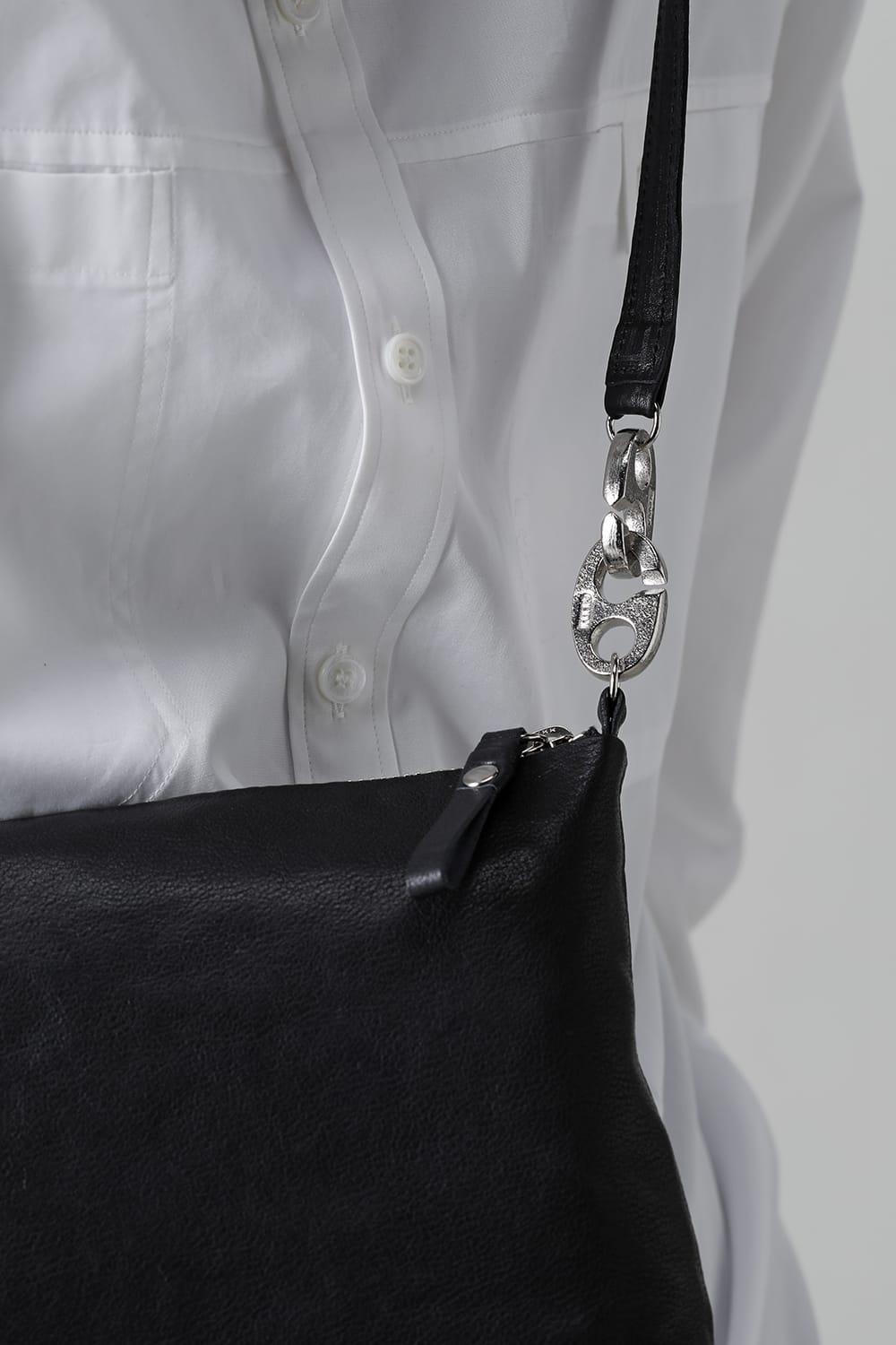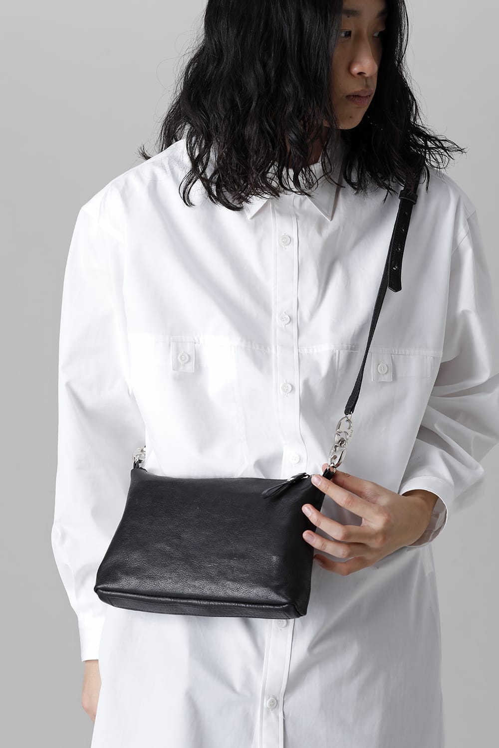 コンパクトなサイズ感でお財布など必要最低限の物が入る程の大きさのショルダーポーチ。金具部分は簡単にベルトと切り離してしまえるのでバッグ部分をクラッチバッグとして使用したり、ポーチとして大きなカバンの中に入れてしまえるので旅先でのセカンドバッグとして使用できる汎用性の高さも魅力的です。