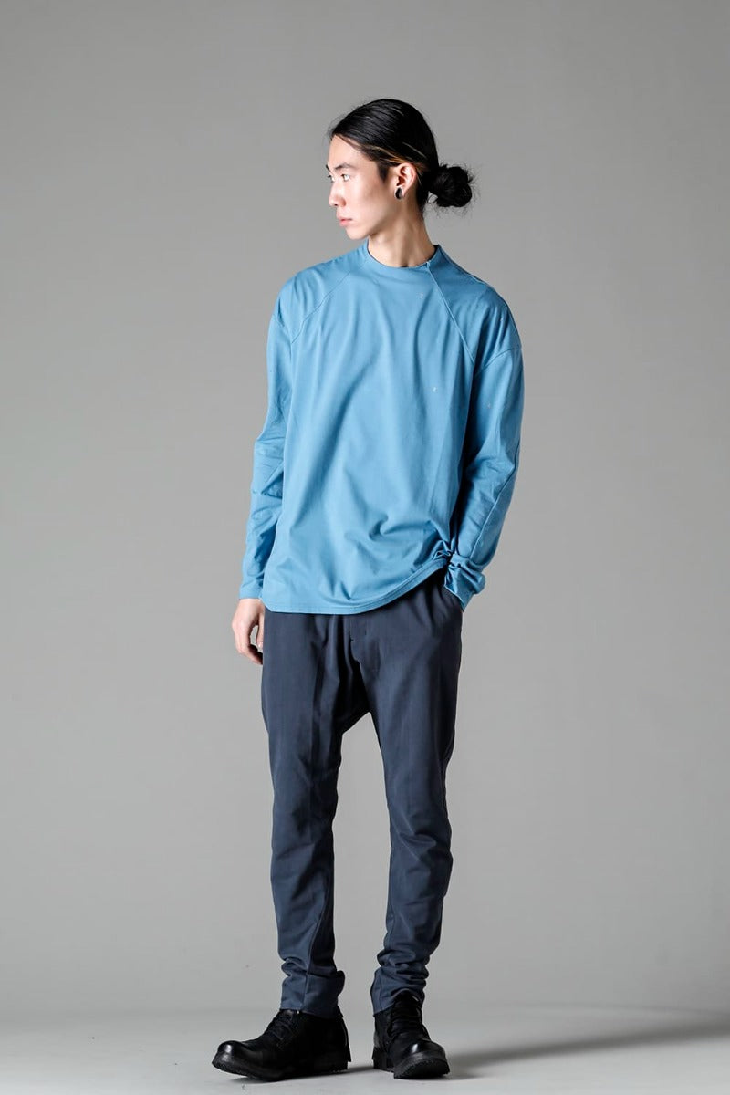 ネック部分をセミハイネックに設計し、身幅のみゆとりを持ったシルエットに設計したロングスリーブカットソー。