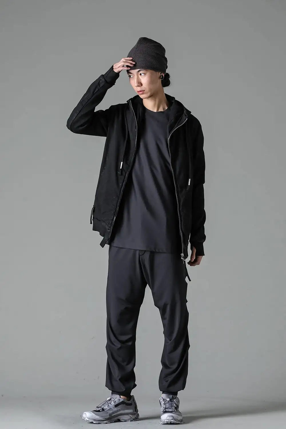 生地はTEIJIN(テイジン)社が開発した扁平状の糸を使った伸縮性の良いジャージ素材。
