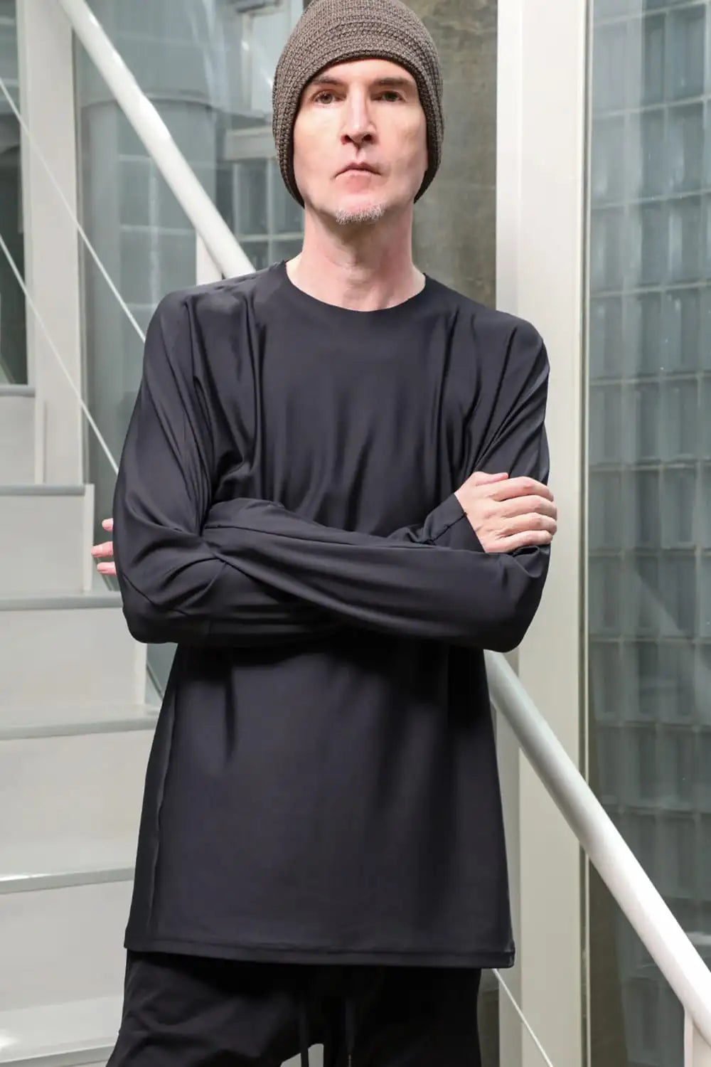 DEVOA 独自の解剖学的パターンで製作したレギュラーフィットのラグランのロングスリーブカットソー。