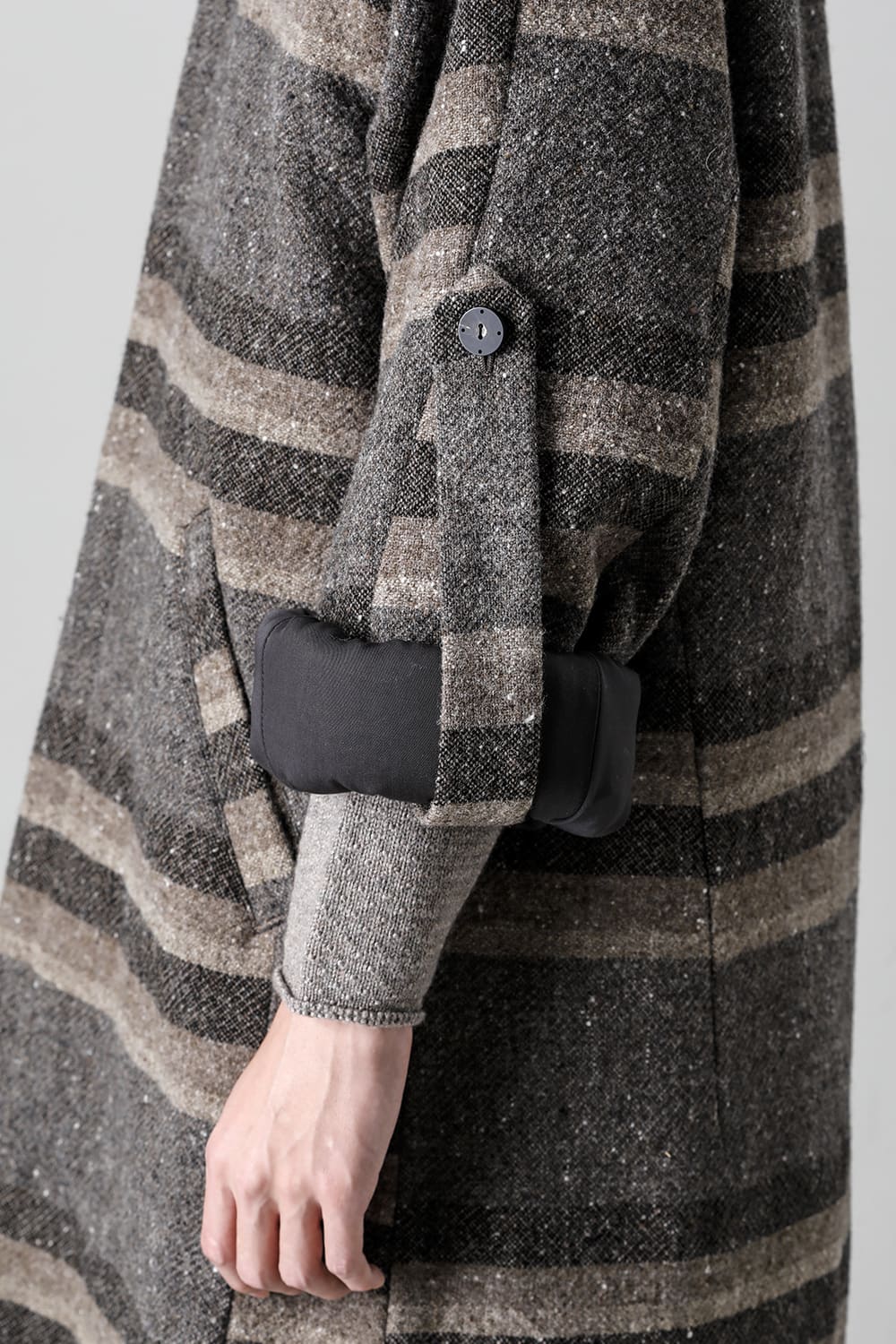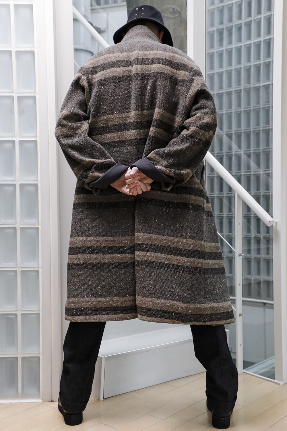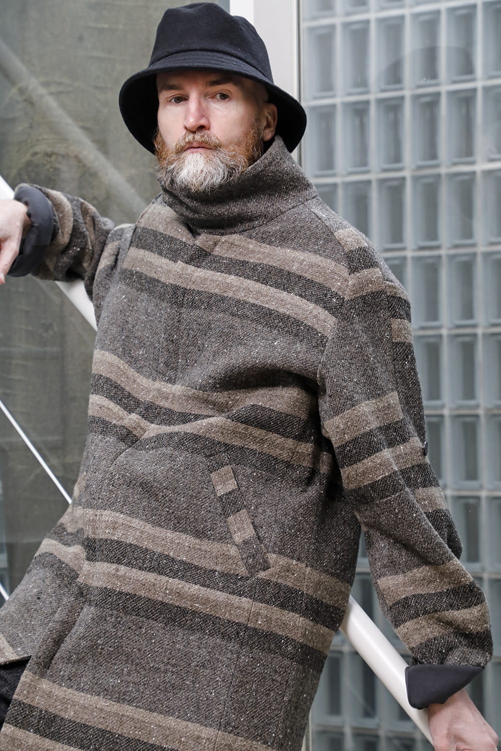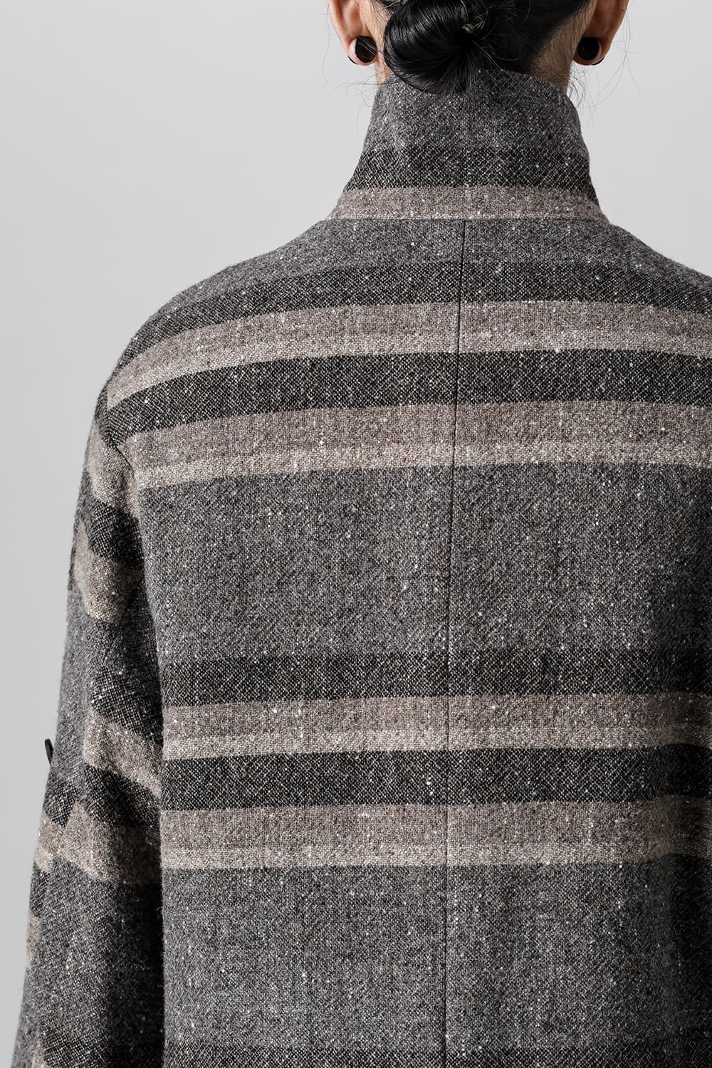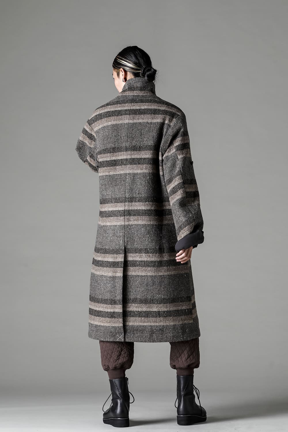 オーバーコートのようなルーズフィットシルエットで制作したハイネックコート。