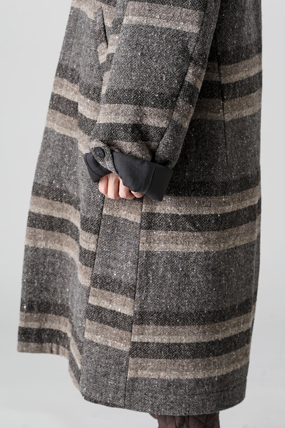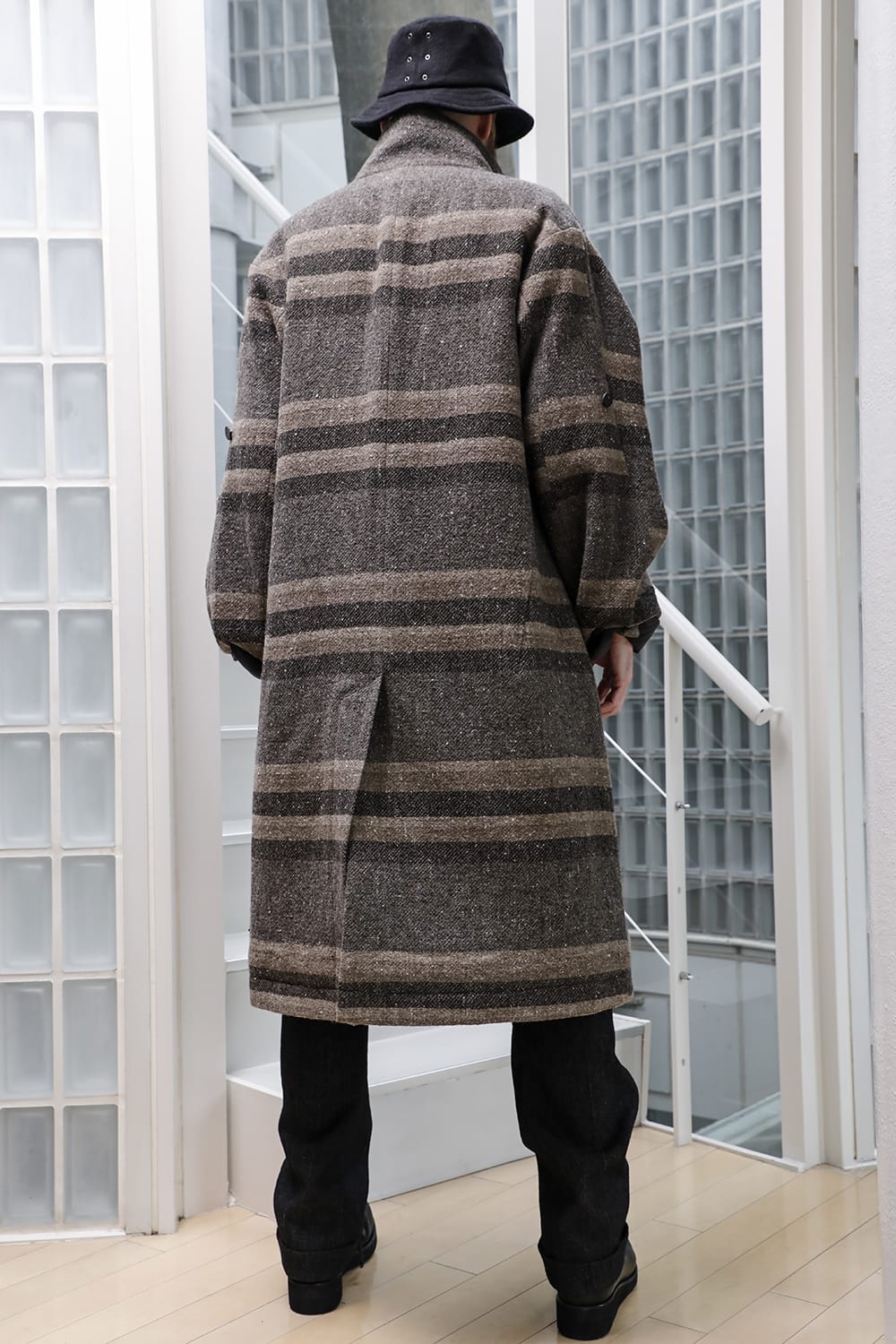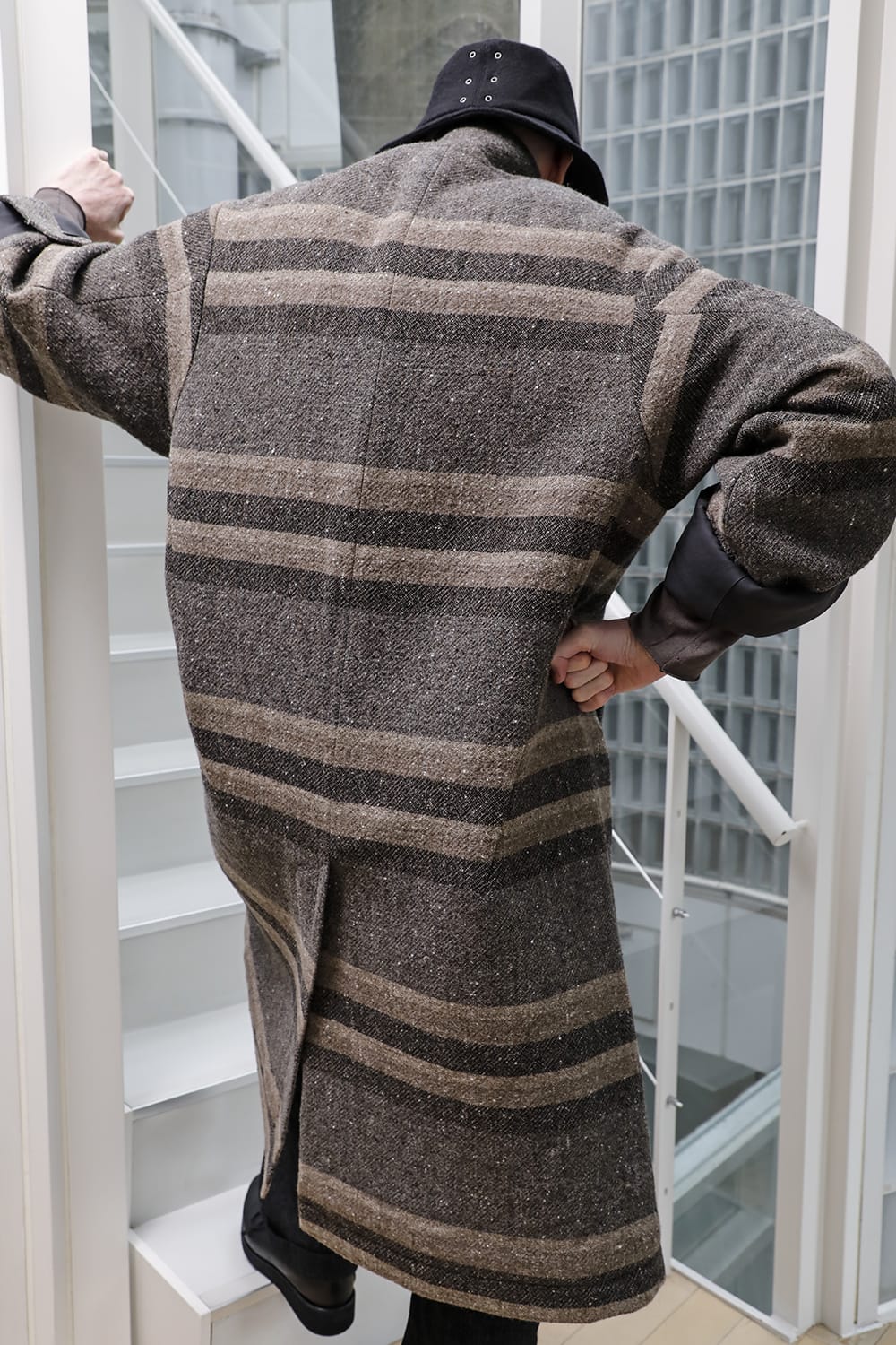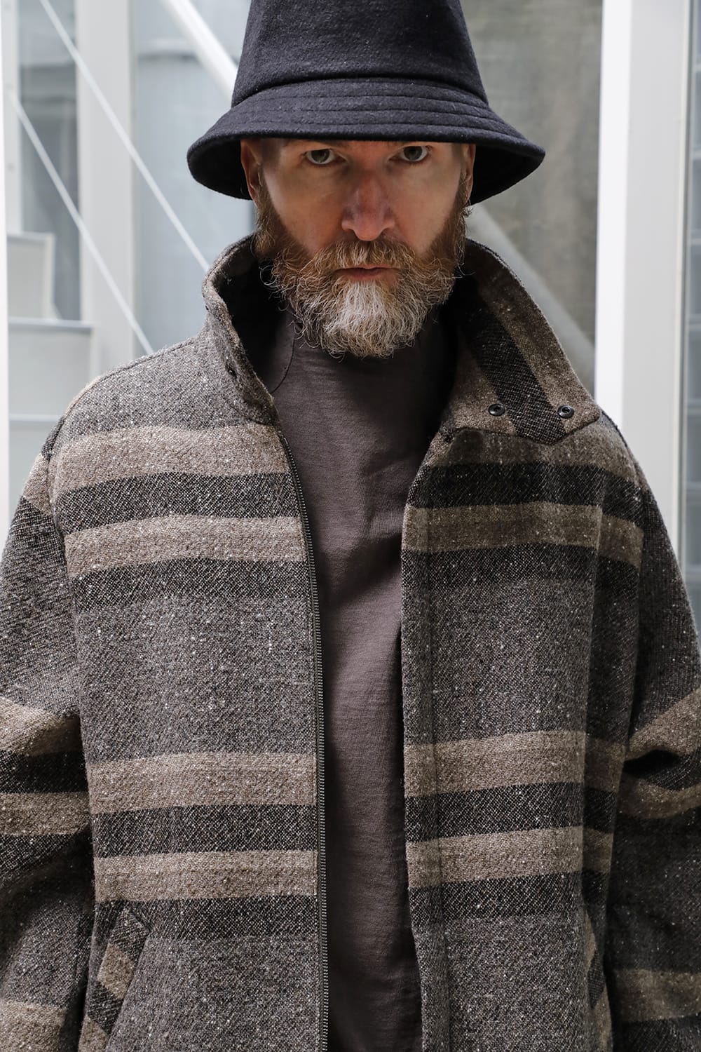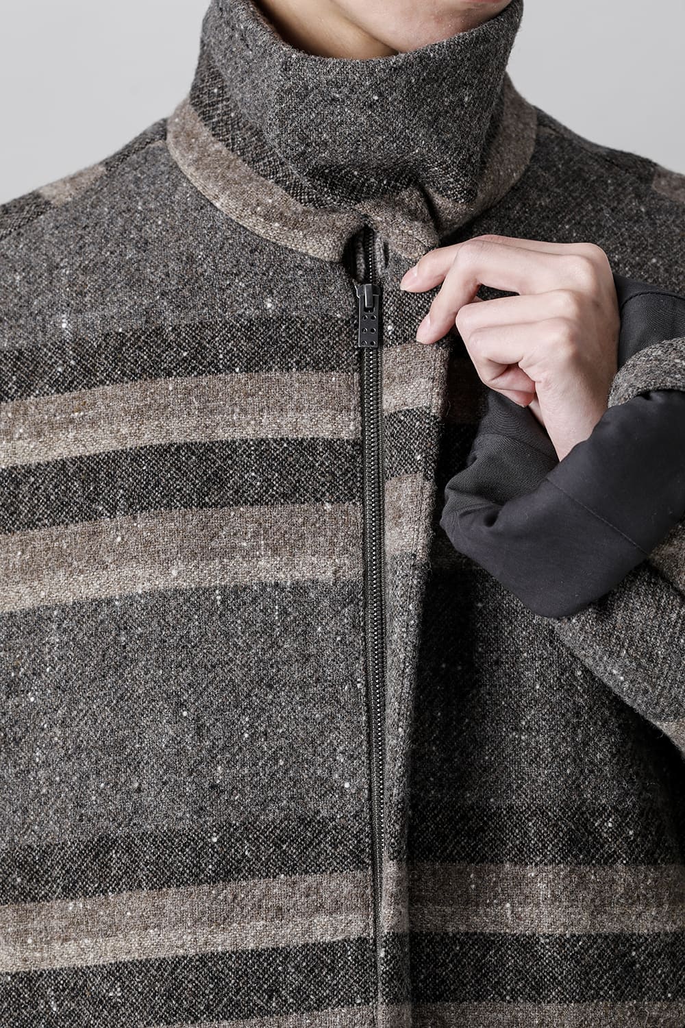 オーバーコートのようなルーズフィットシルエットで制作したハイネックコート。
