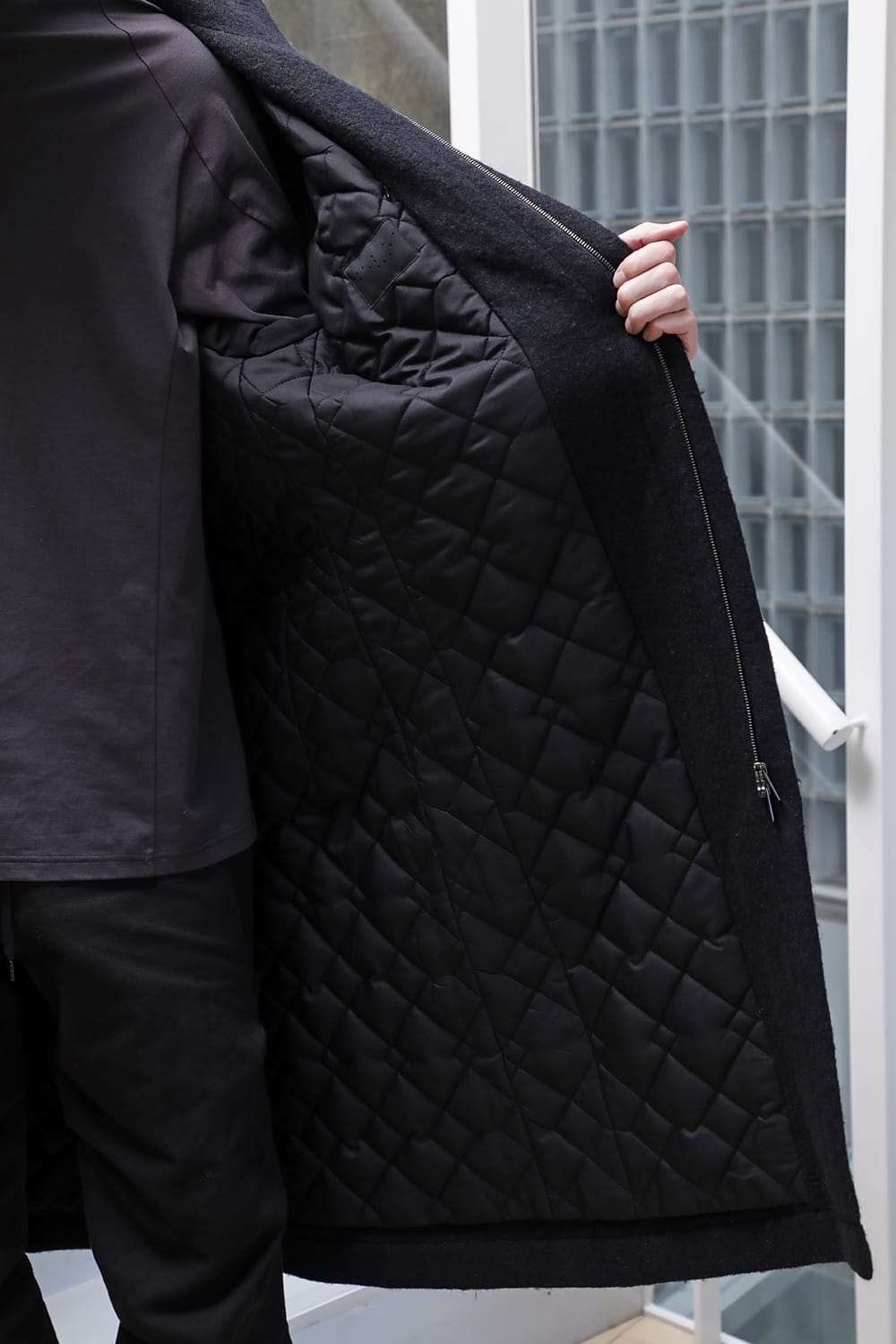 身頃の裏地にはシルクのキルティングで中綿が入り、軽いながらも非常に防寒性と保温性に優れた暖かいコートです。