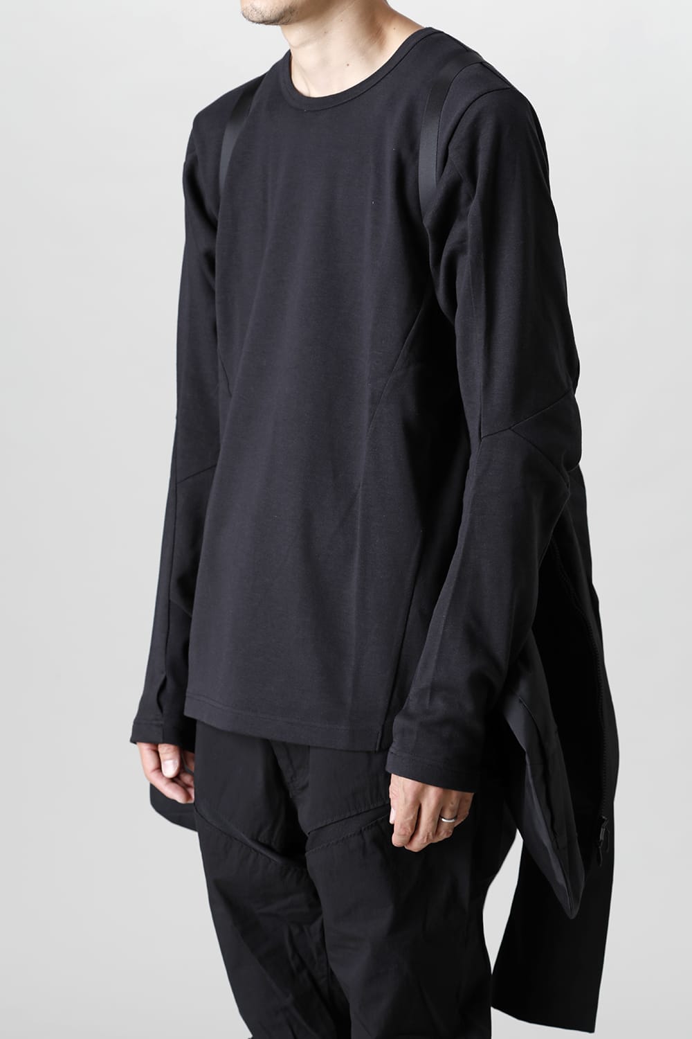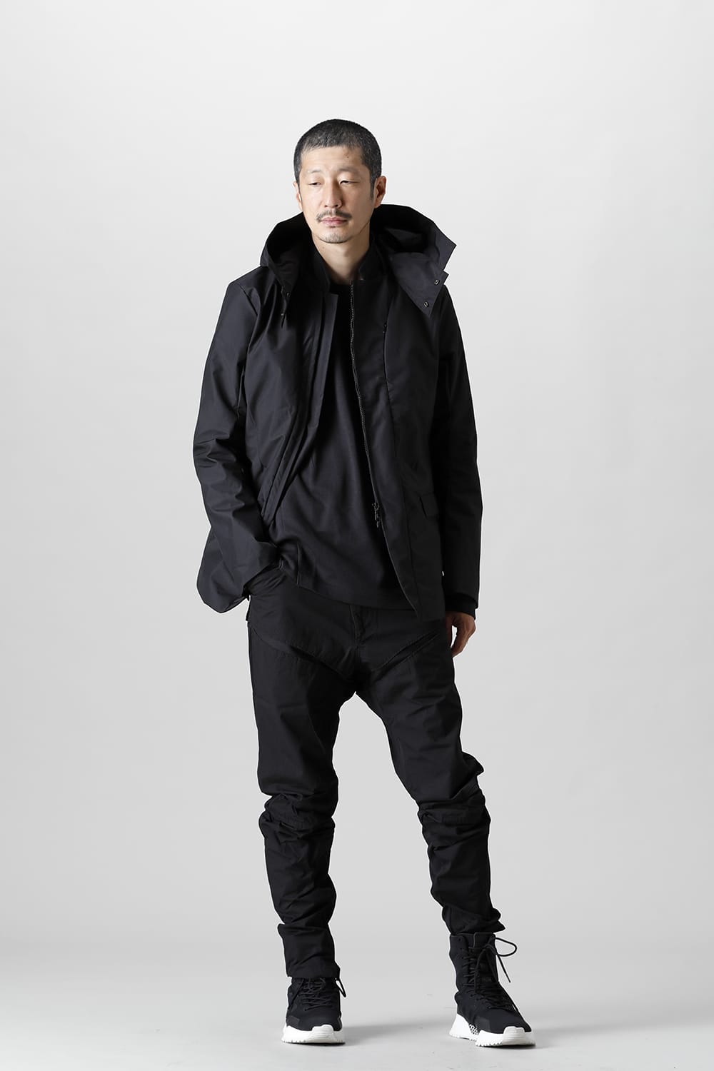 テーラードジャケットの代表的なディテールであるセンターベント、袖口の本切羽はボタンをファスナーに置換え操作性の高いディテールへと進化させました。