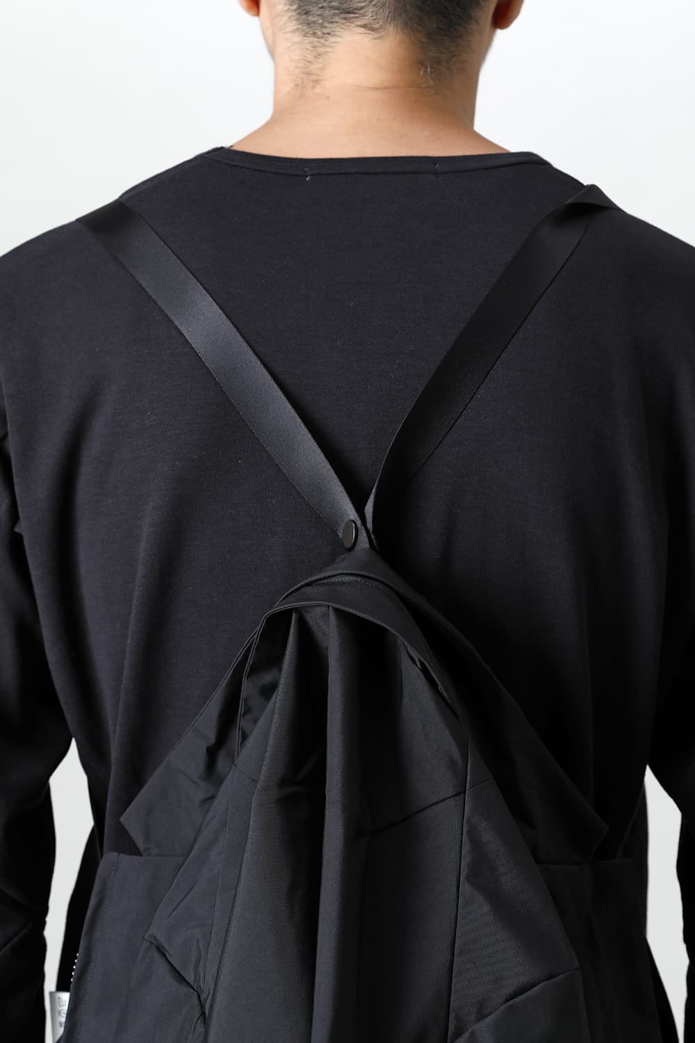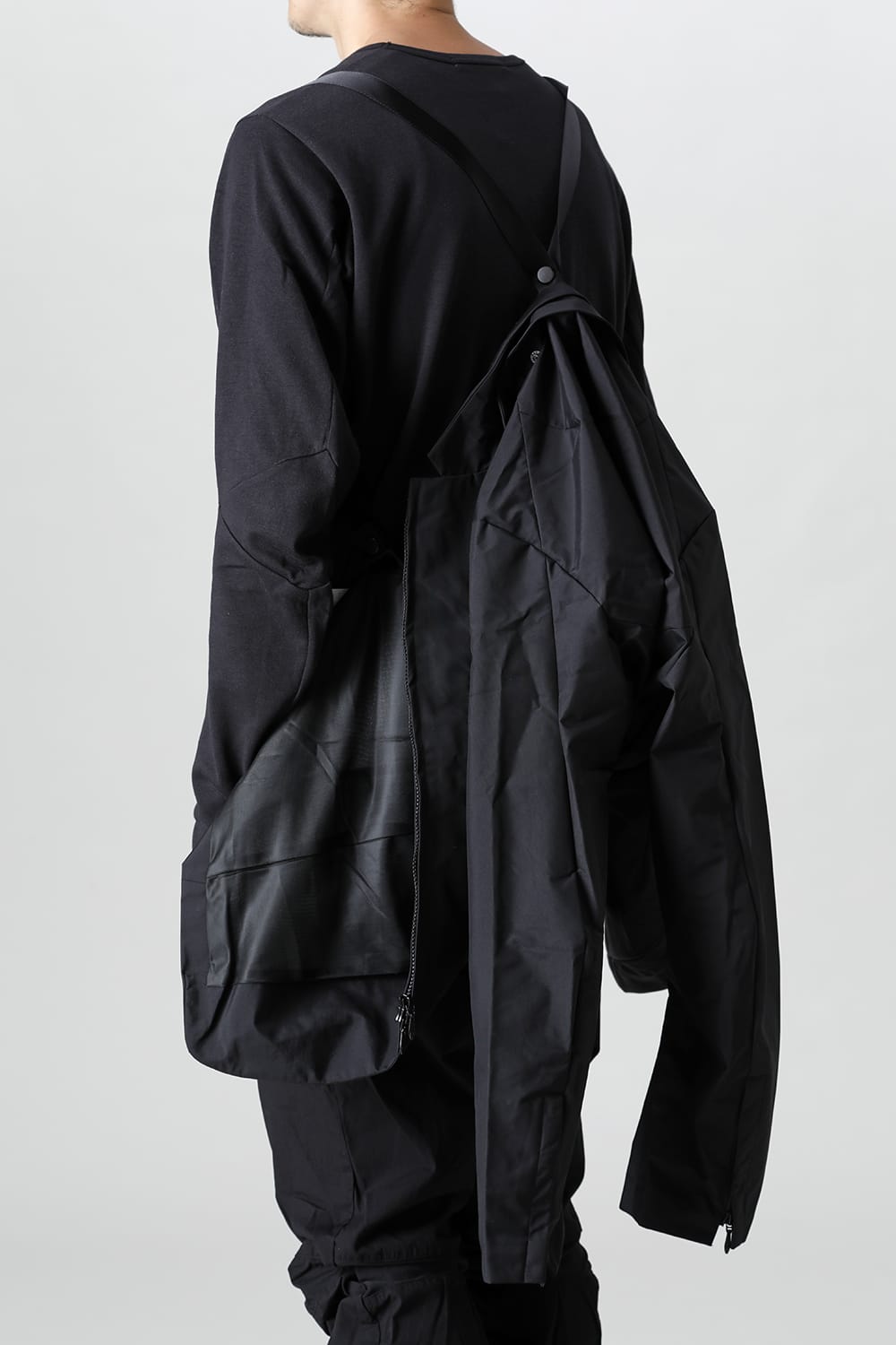 ジャケット内側にはショルダーベルトが備えられ、バックパックやショルダーバッグの様に背負えるので、気温や体温の変化でジャケットを脱いだ際も手が塞がることはありません。