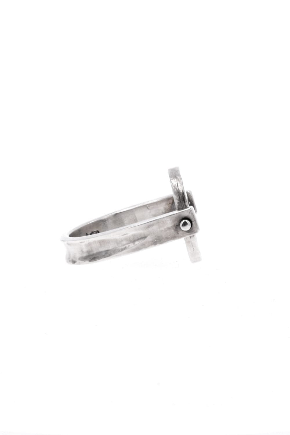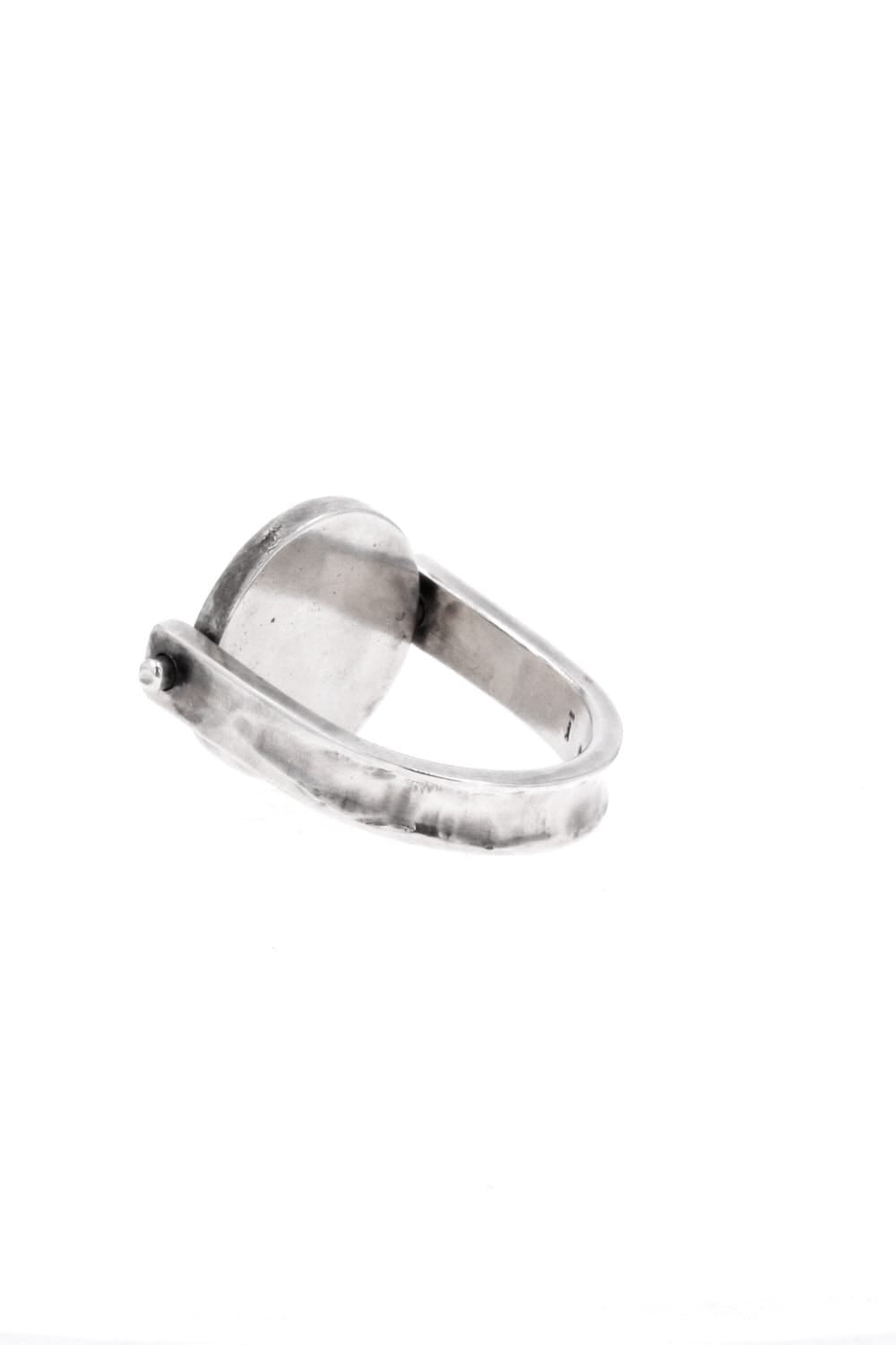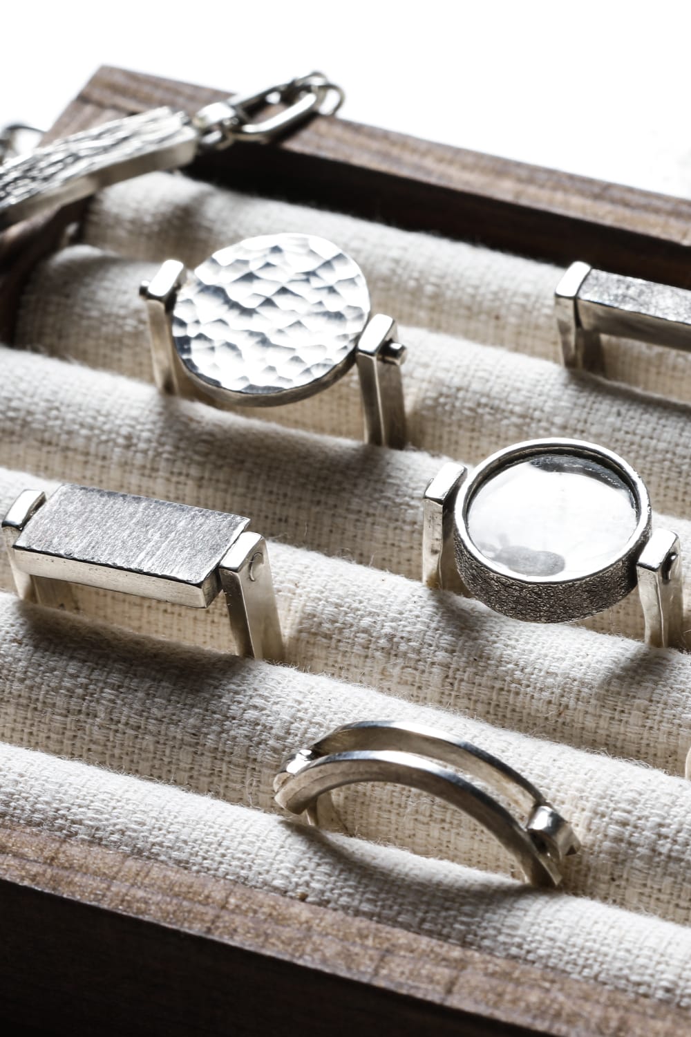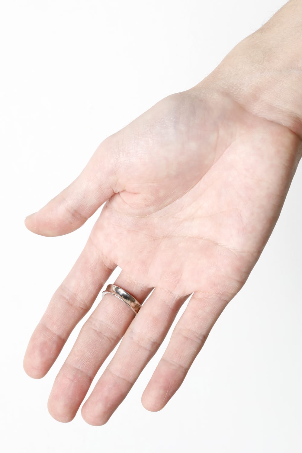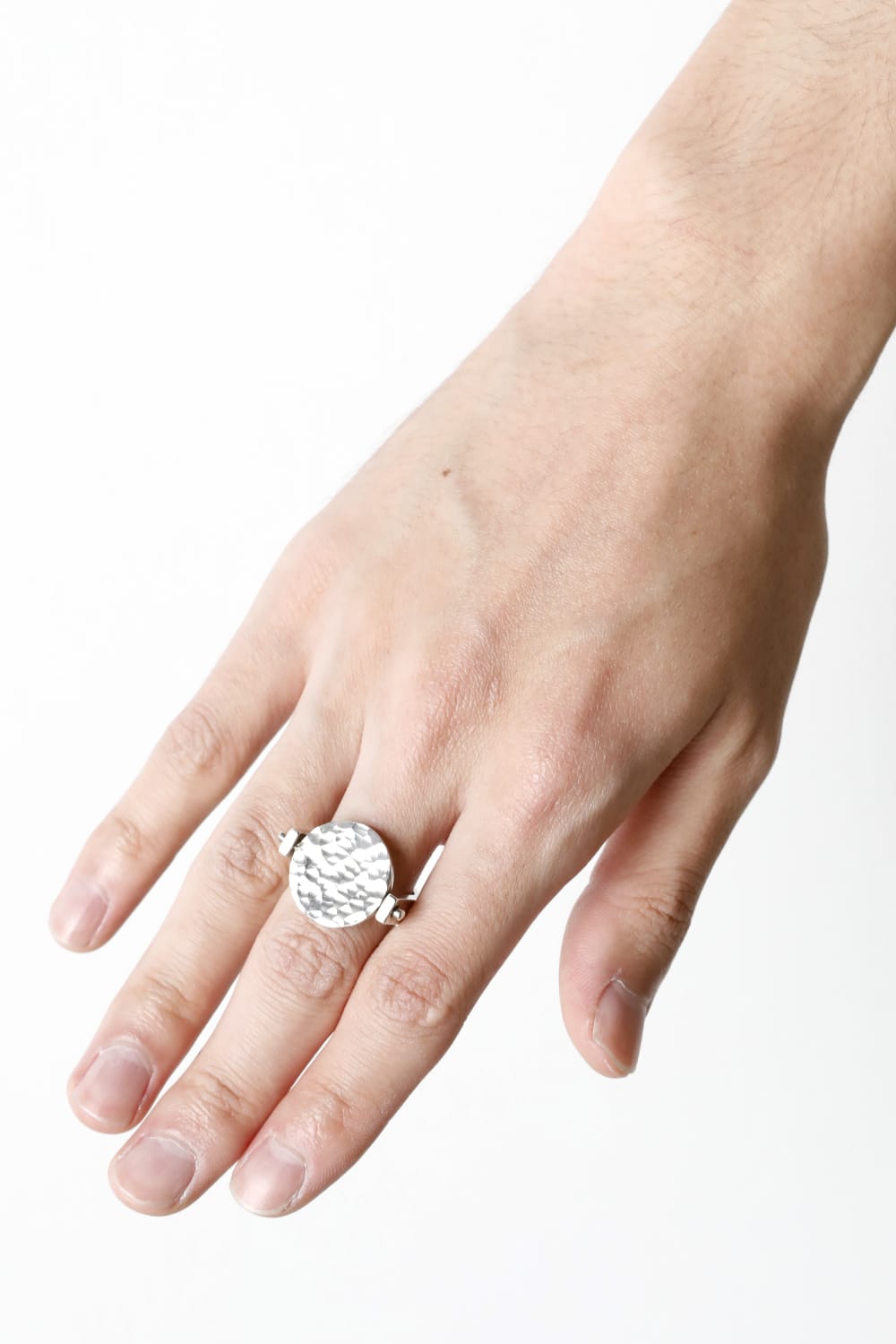 多様な変化の要素にフォーカスしたリングreversibleでテクスチャのある面とPlain の面・斜めの面と気分で変えて着用が可 能。 その日のスタイルや合わせて着用するジュエリーに合わせて変化を楽しめる作品です。