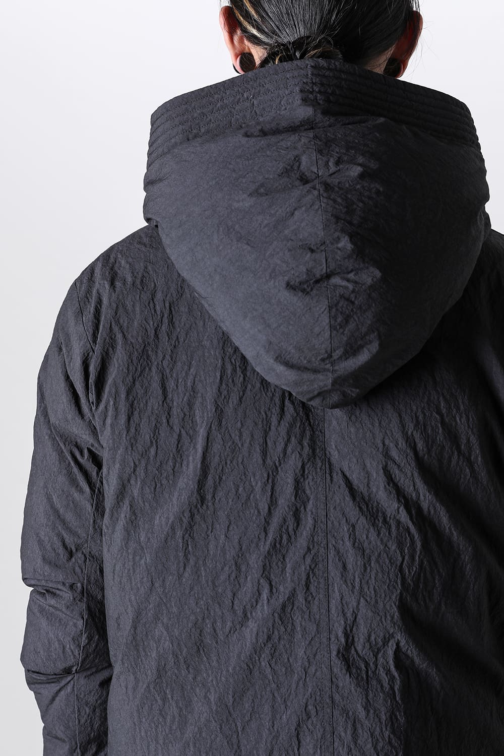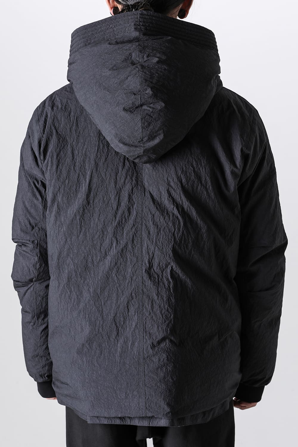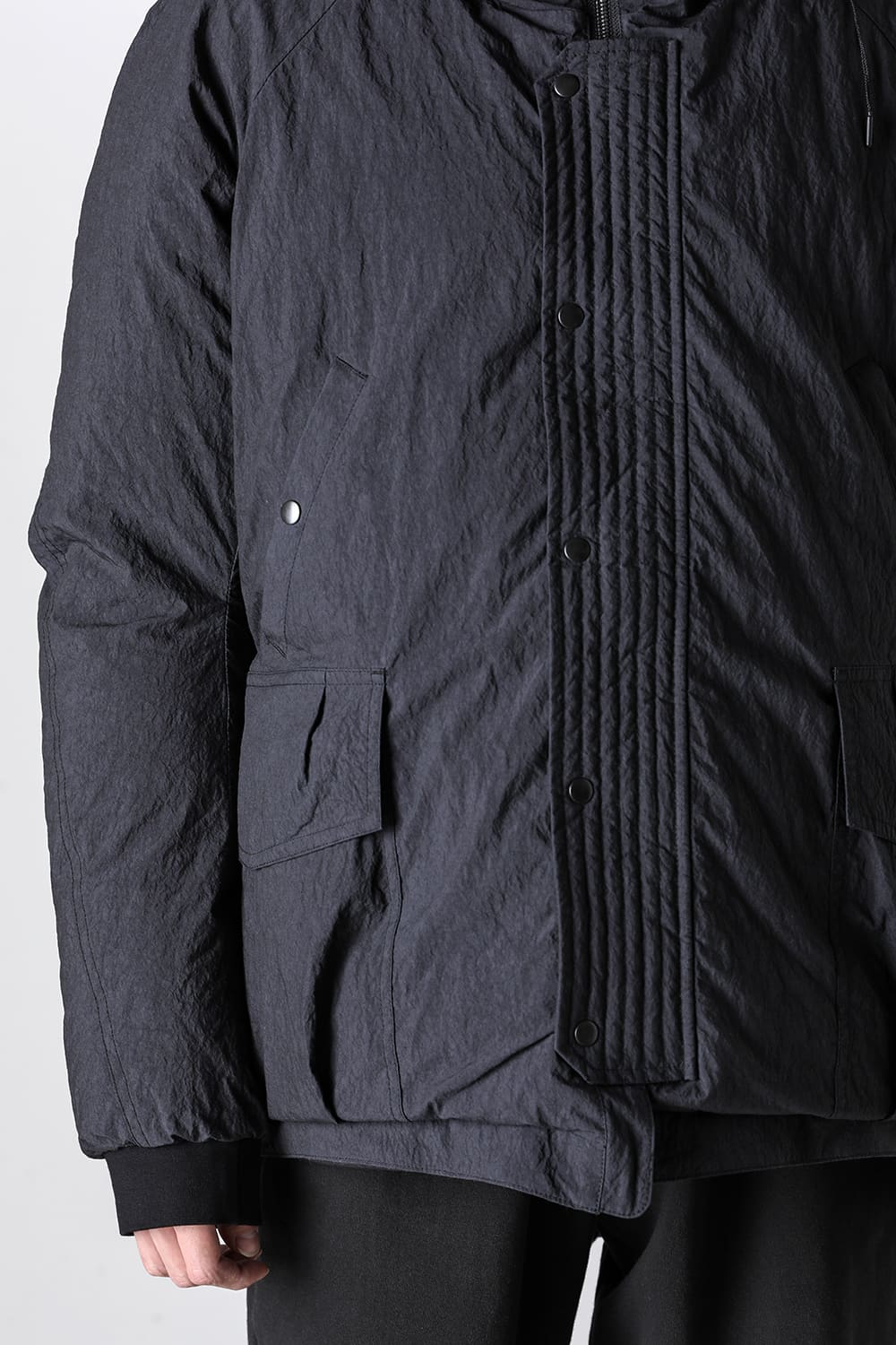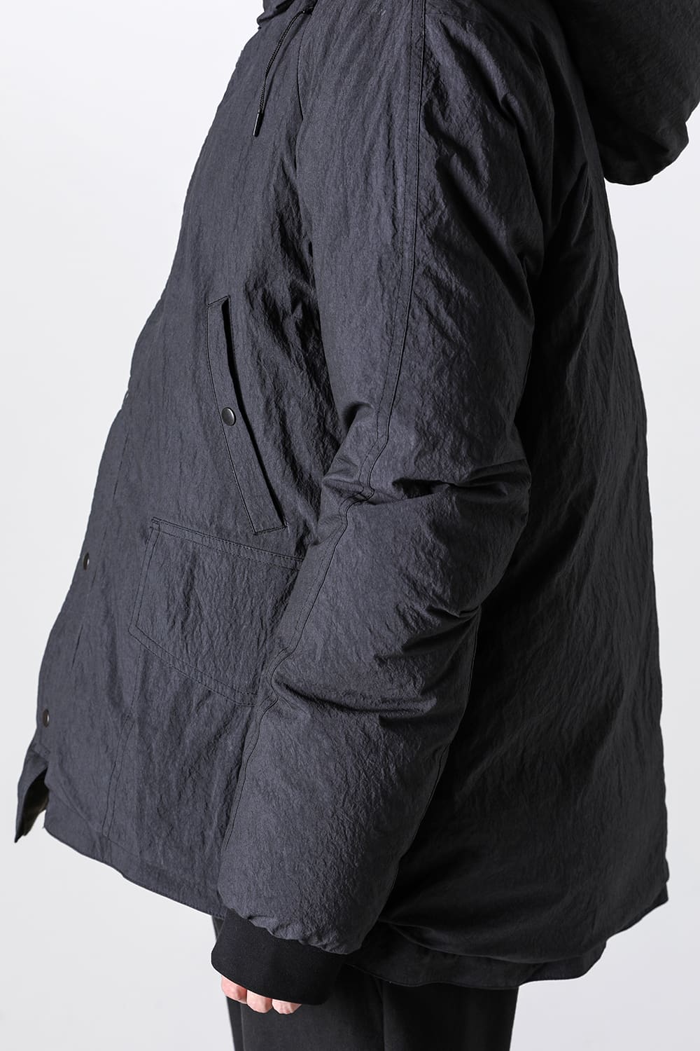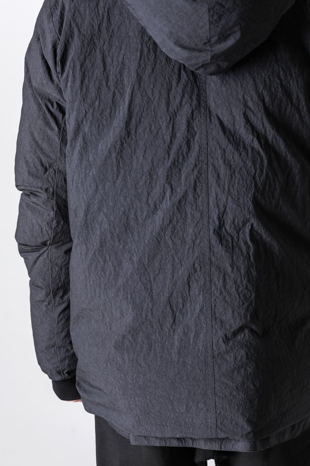 綿とナイロンの高密度織物にシワ加工を施し独特の表情をつけています。