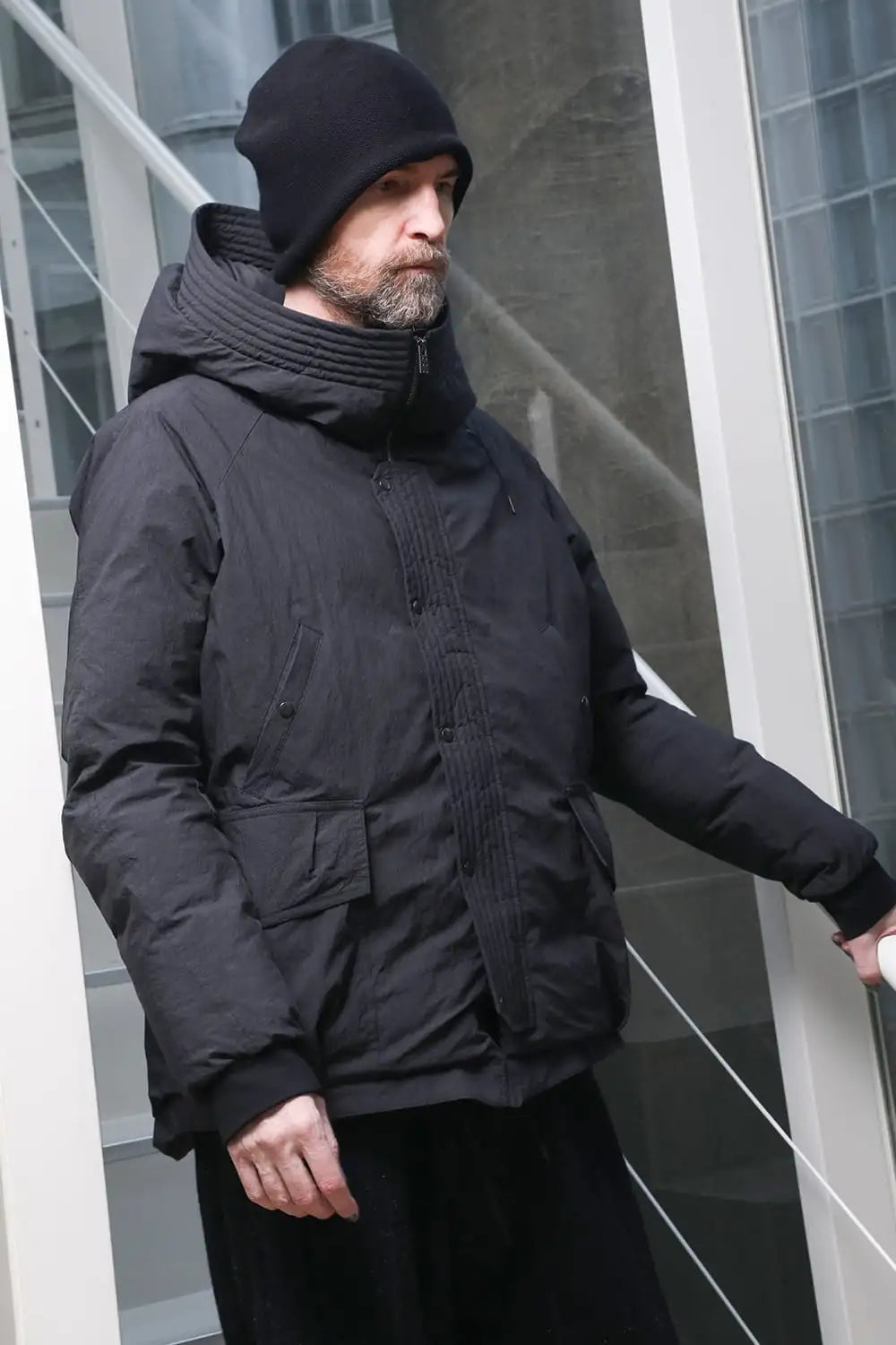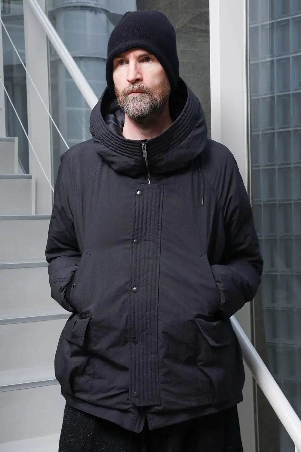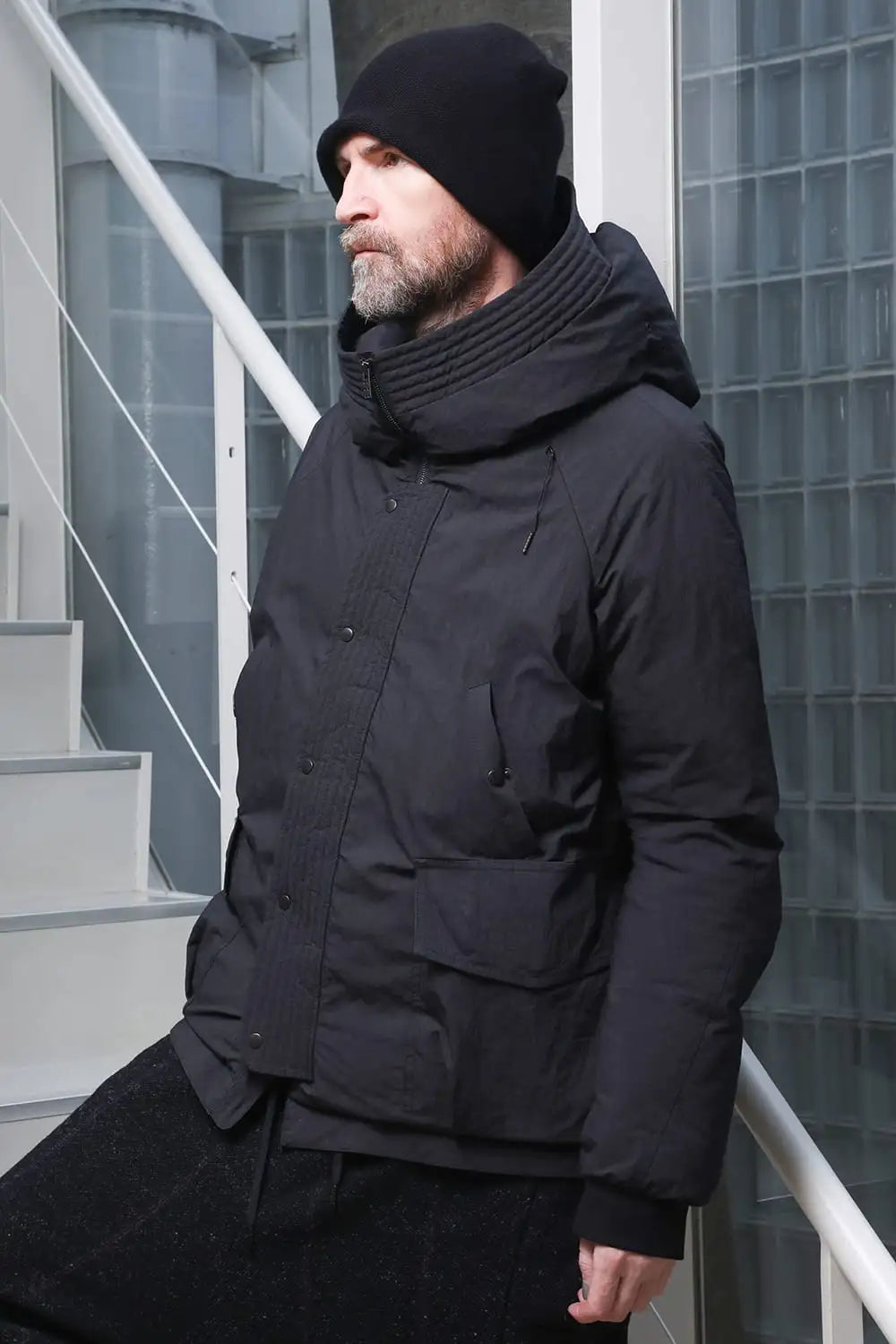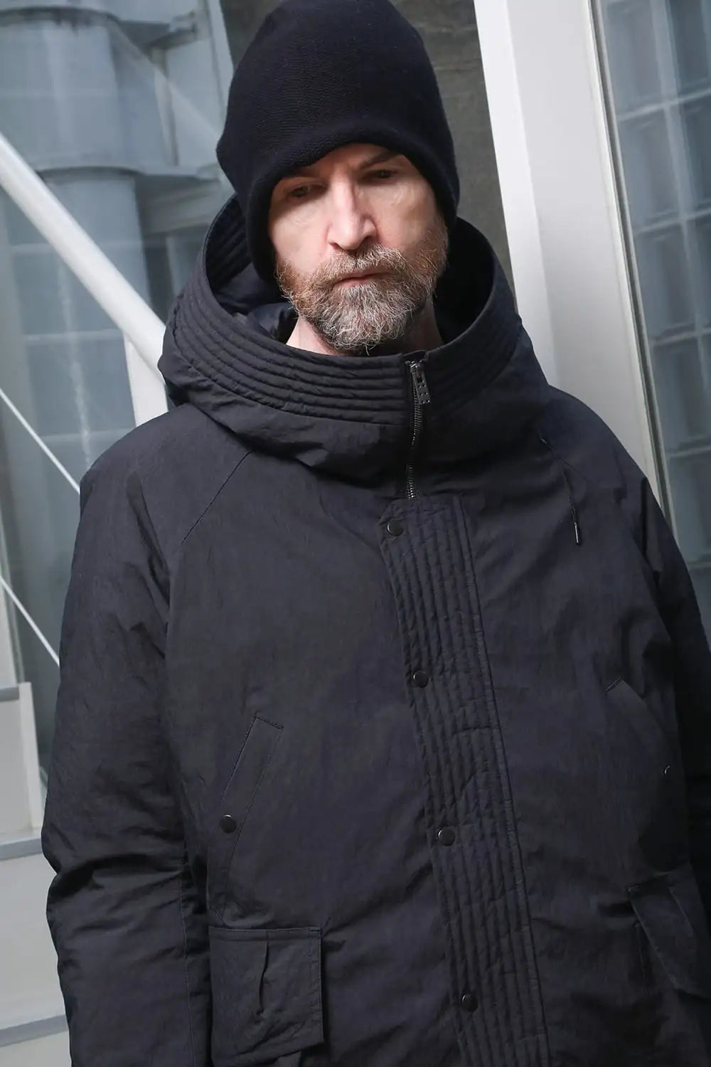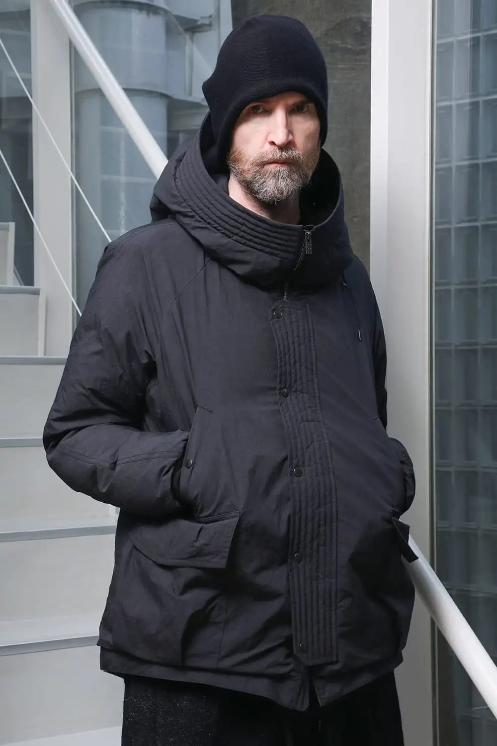 綿とナイロンの高密度織物にシワ加工を施し独特の表情をつけています。