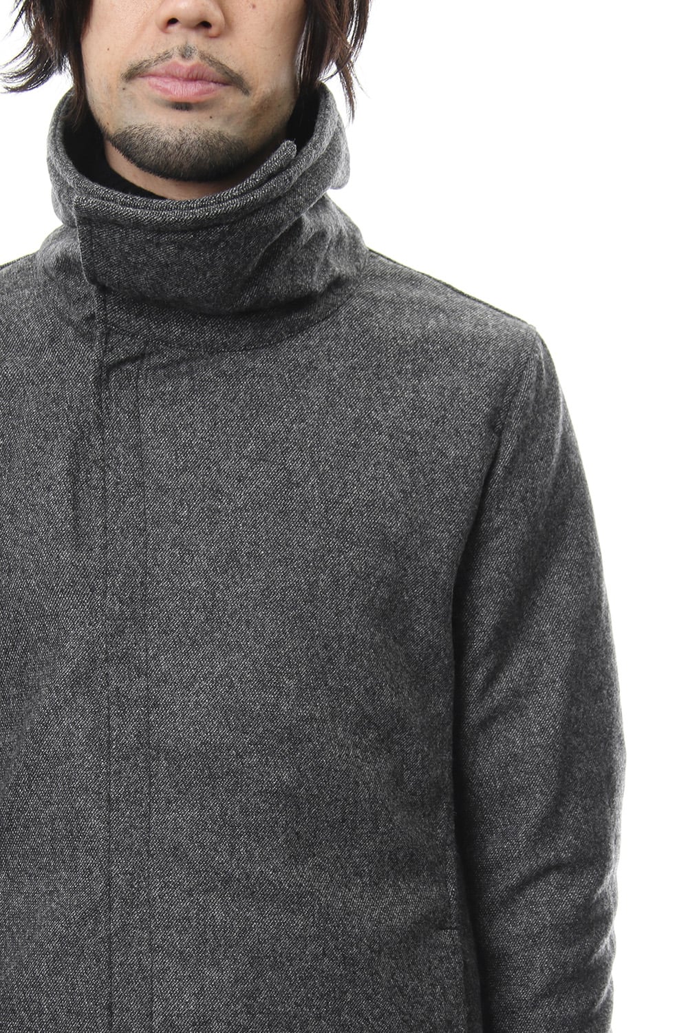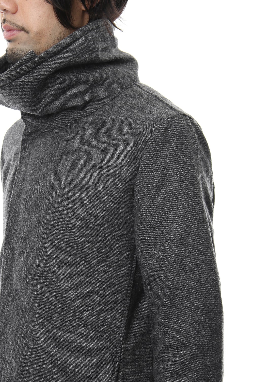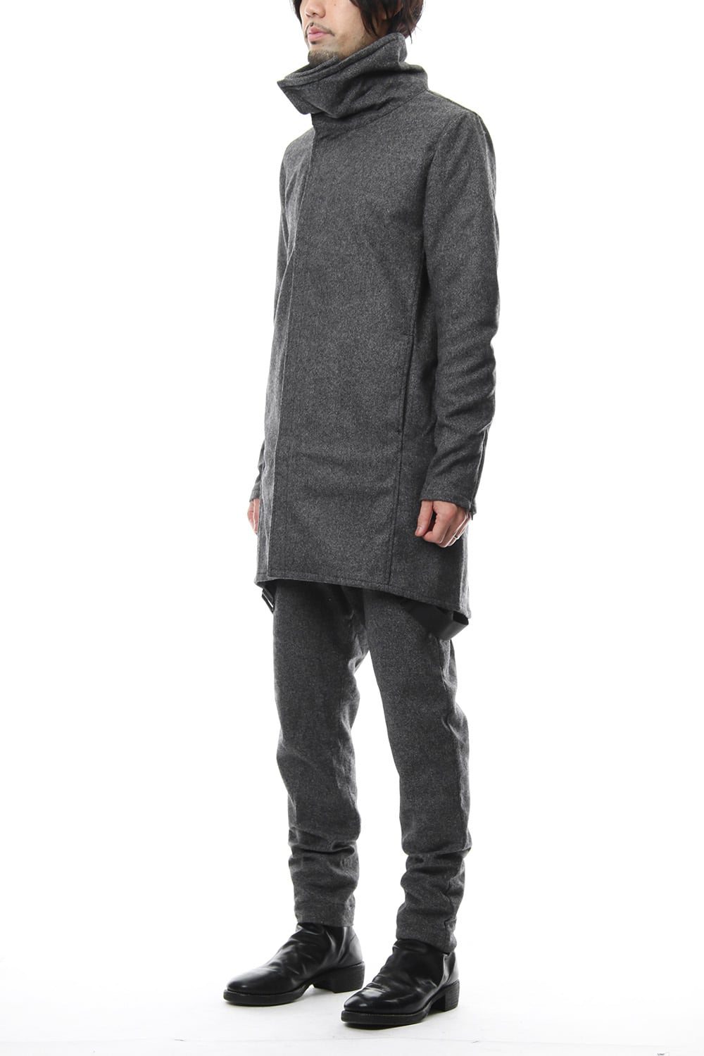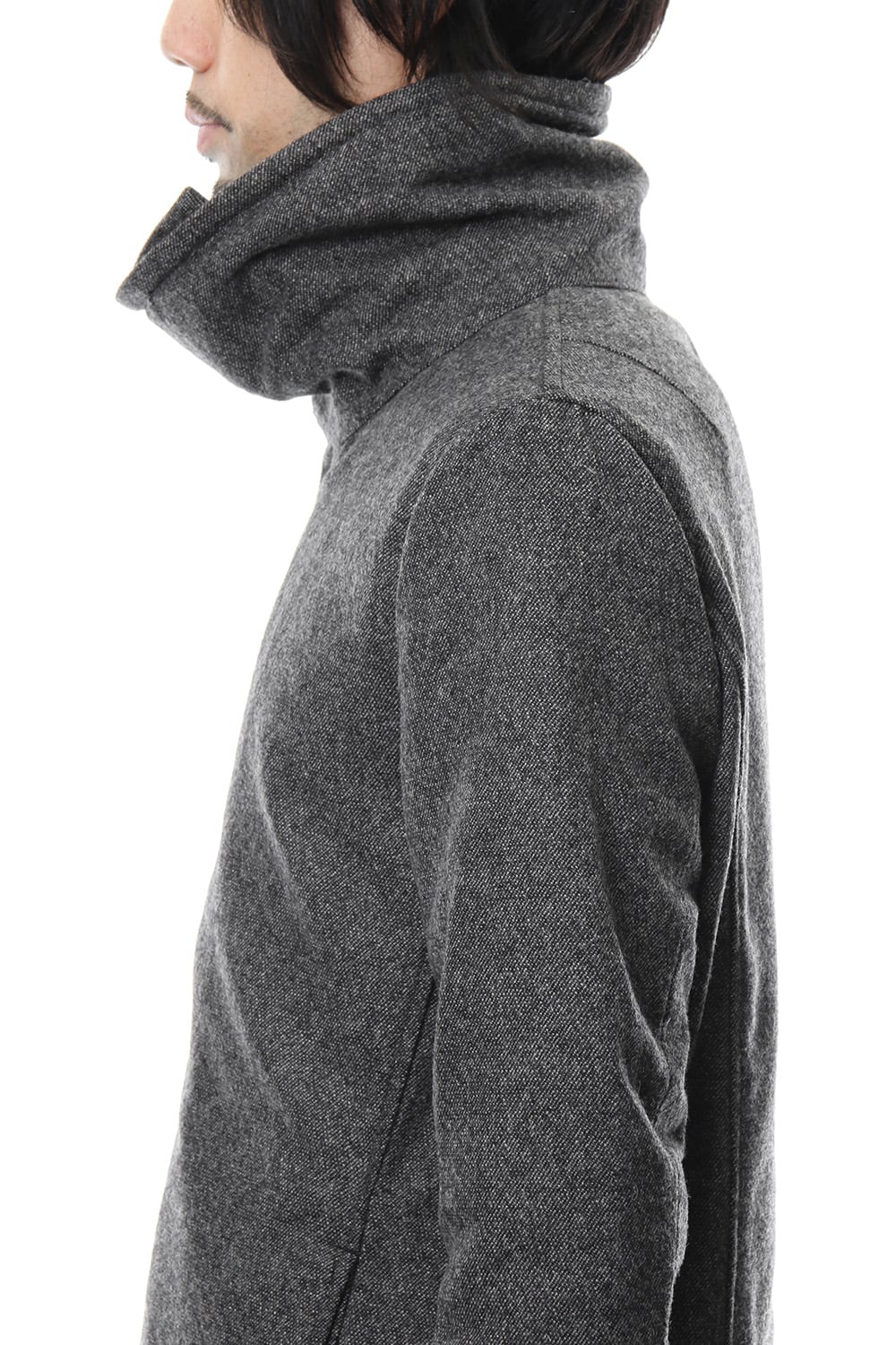 17 2st シーズンでも好評だったジャージコートをフラノで提案します。1/14フラノを縮絨させてストレッチを入れる事で、フラノの表情を保ちつつも着心地、動きやすさに配慮した素材をチョイスしました。ライトアウターとしても使え、ダウンベスト等のレイヤードでの着用も提案します。BLACKとT.BLACKの2色展開