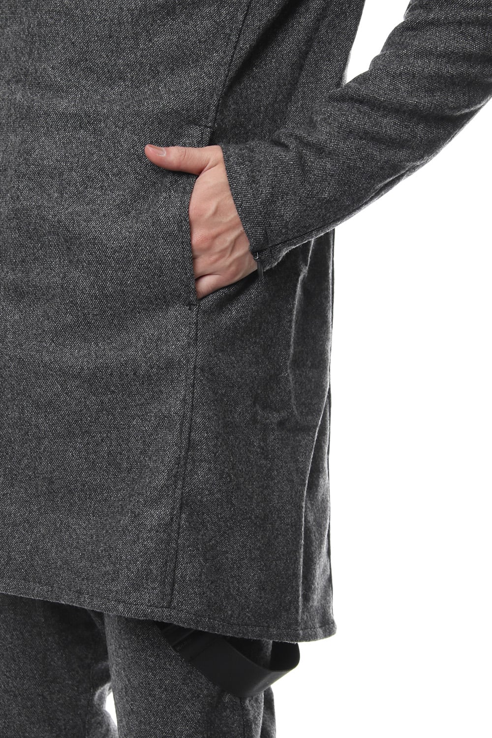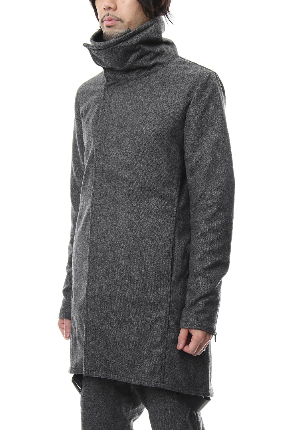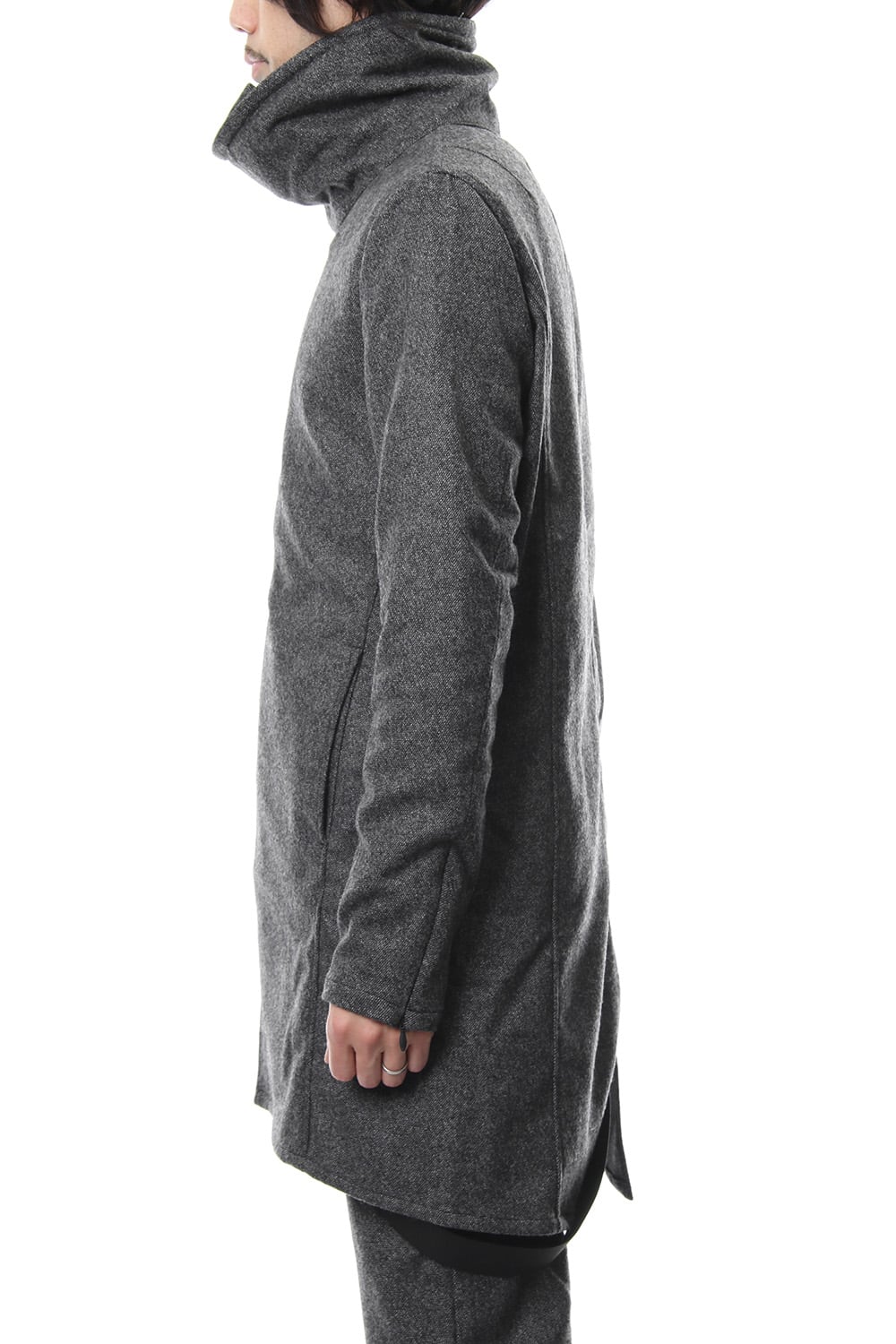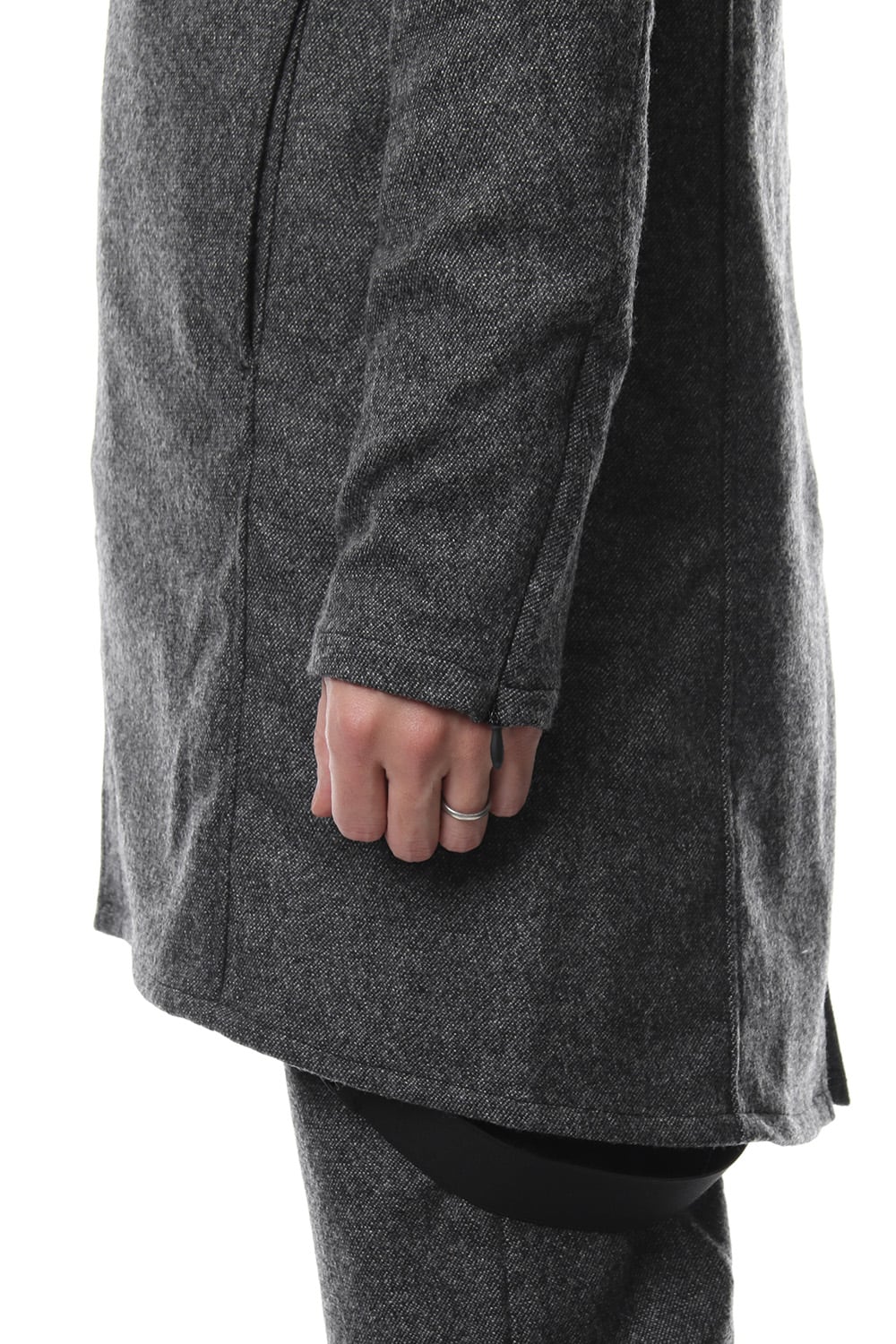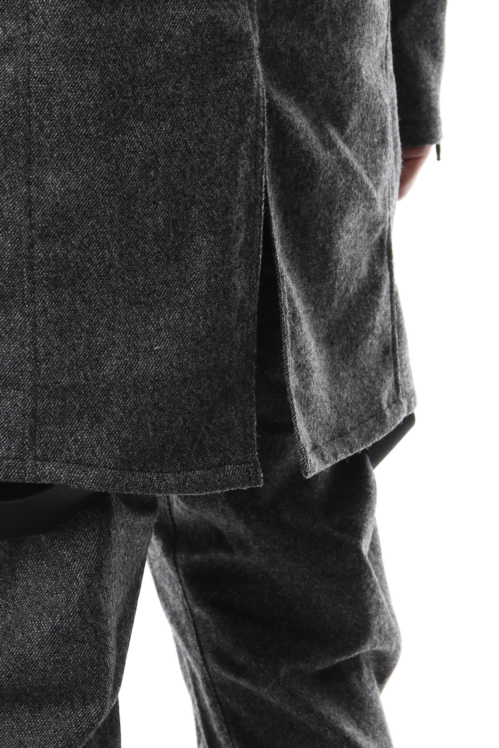 17 2st シーズンでも好評だったジャージコートをフラノで提案します。1/14フラノを縮絨させてストレッチを入れる事で、フラノの表情を保ちつつも着心地、動きやすさに配慮した素材をチョイスしました。ライトアウターとしても使え、ダウンベスト等のレイヤードでの着用も提案します。BLACKとT.BLACKの2色展開