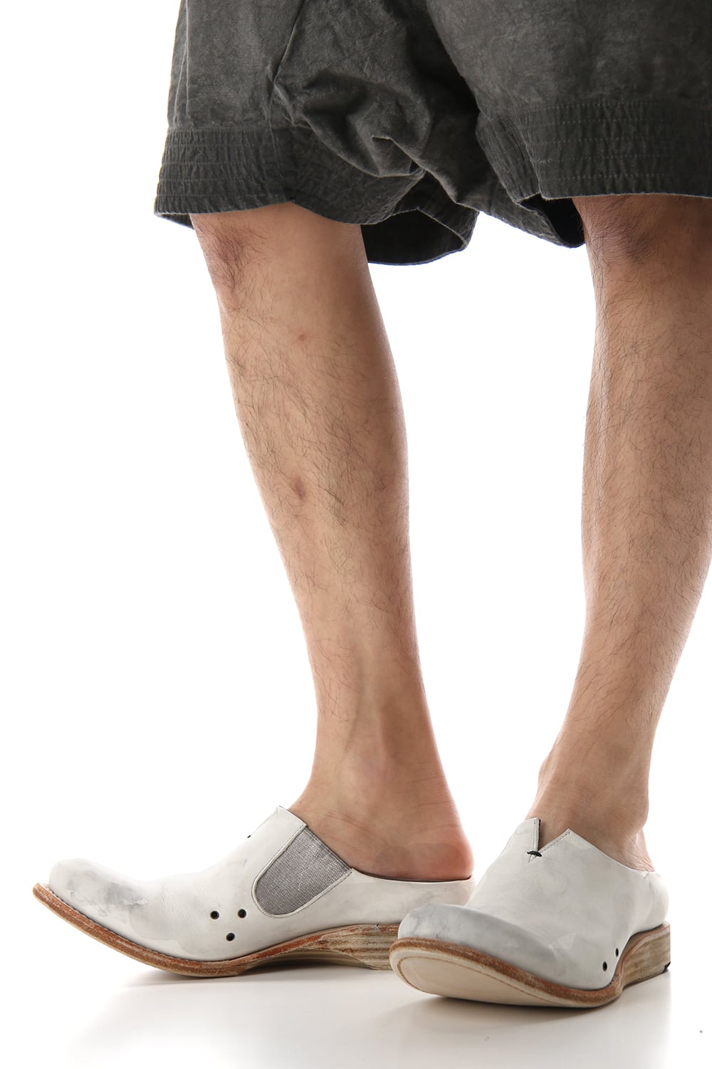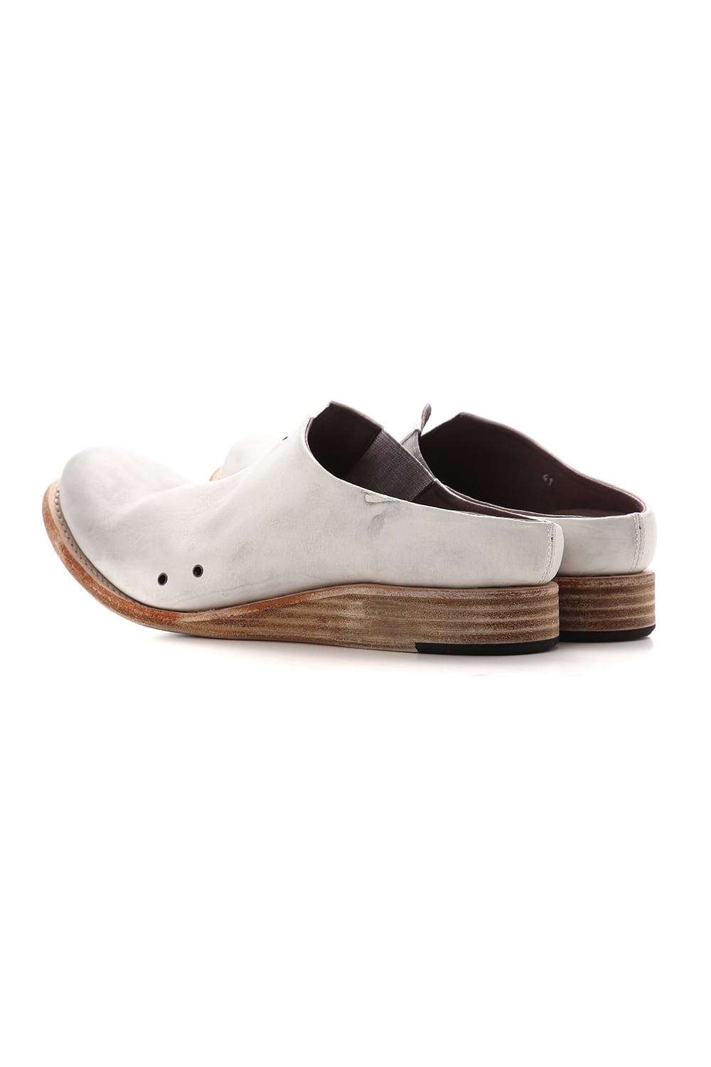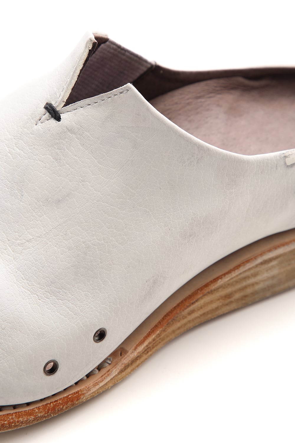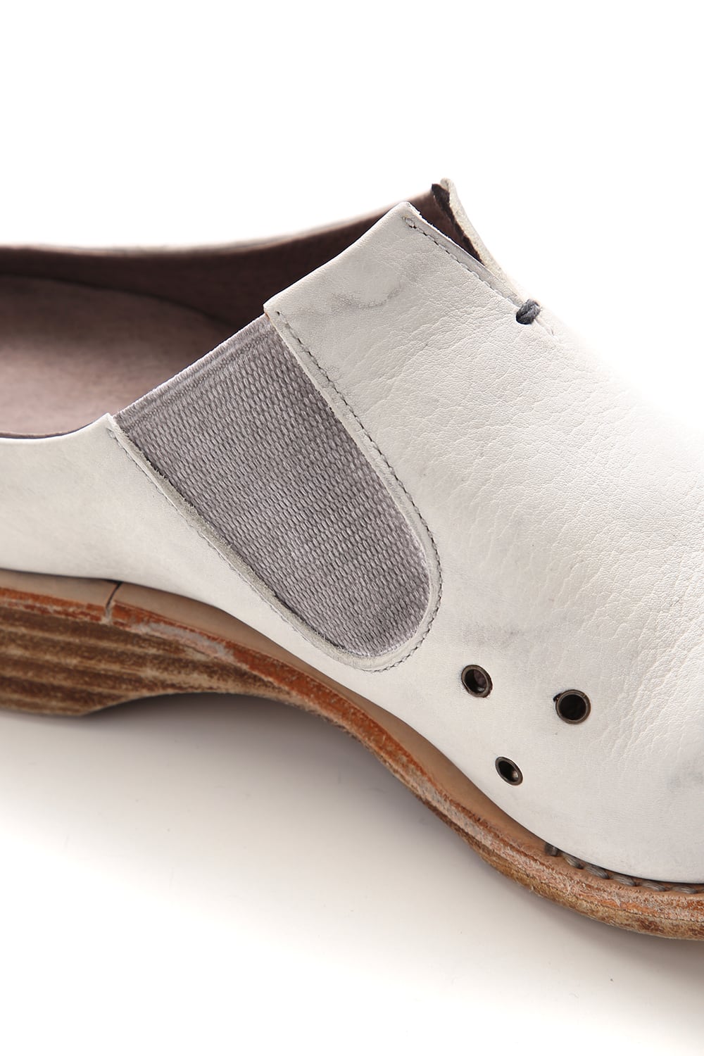 素足で履いていただけるように内踏まず、外踏まずにハトメ穴を設けできるだけ通気を良く設計されたミュールタイプのスリッポン。