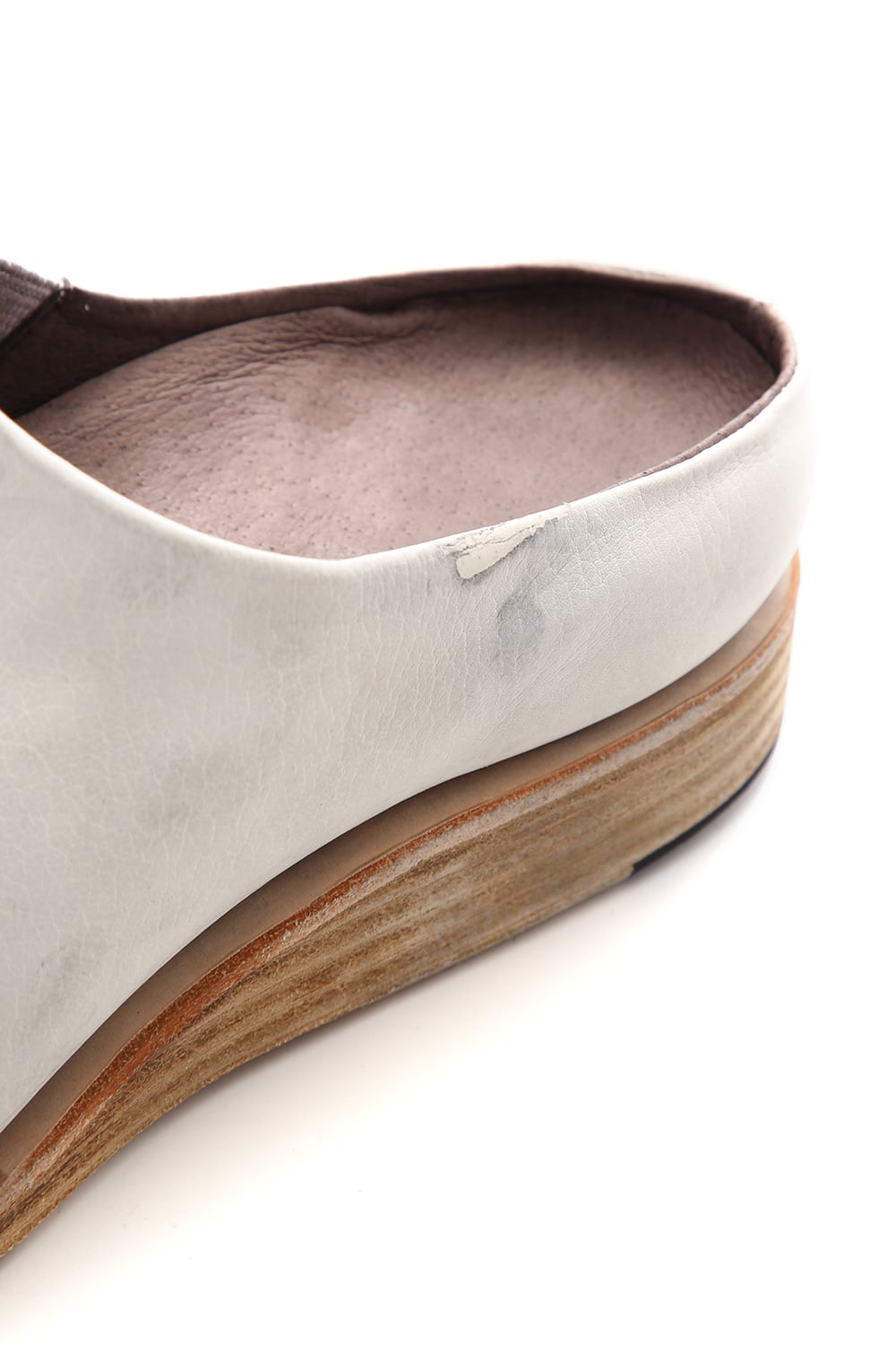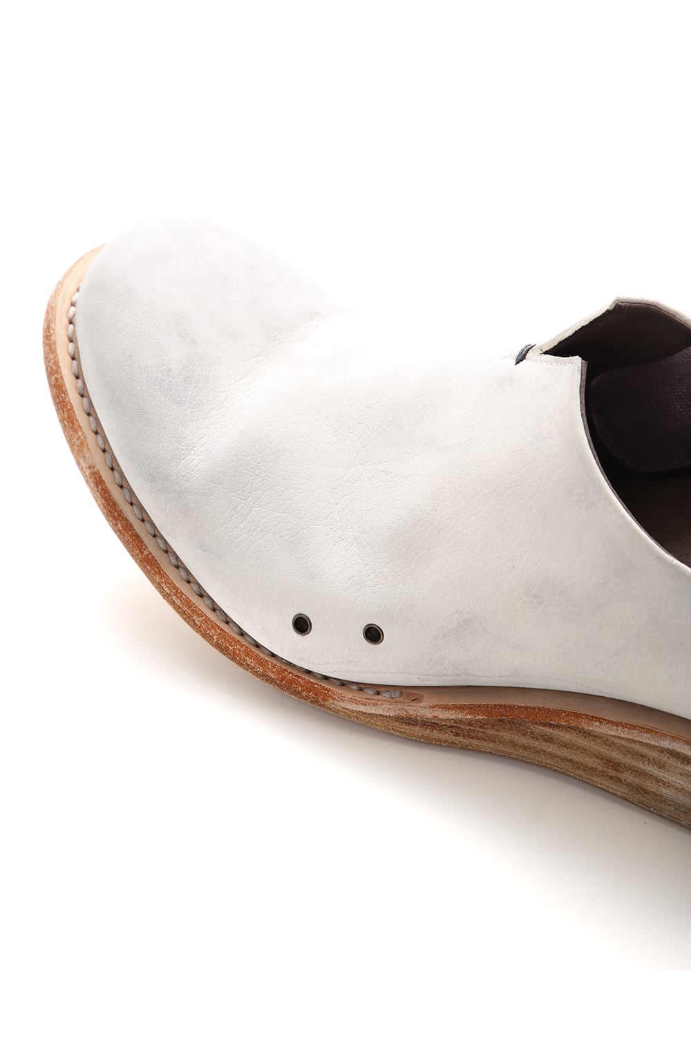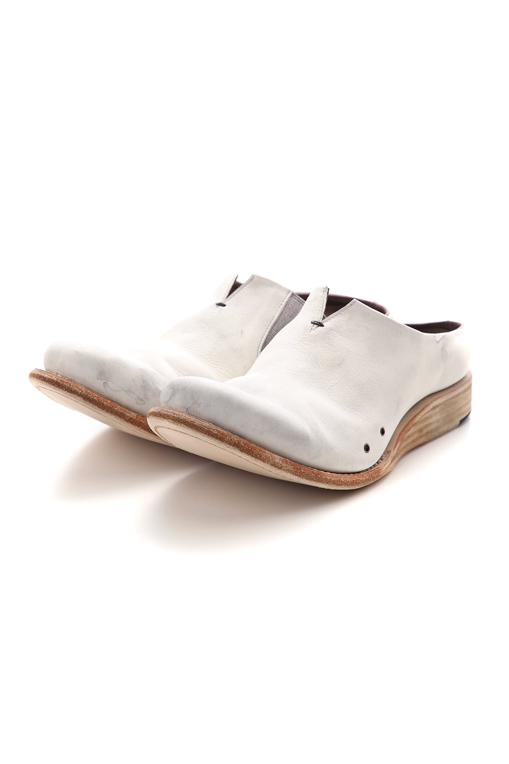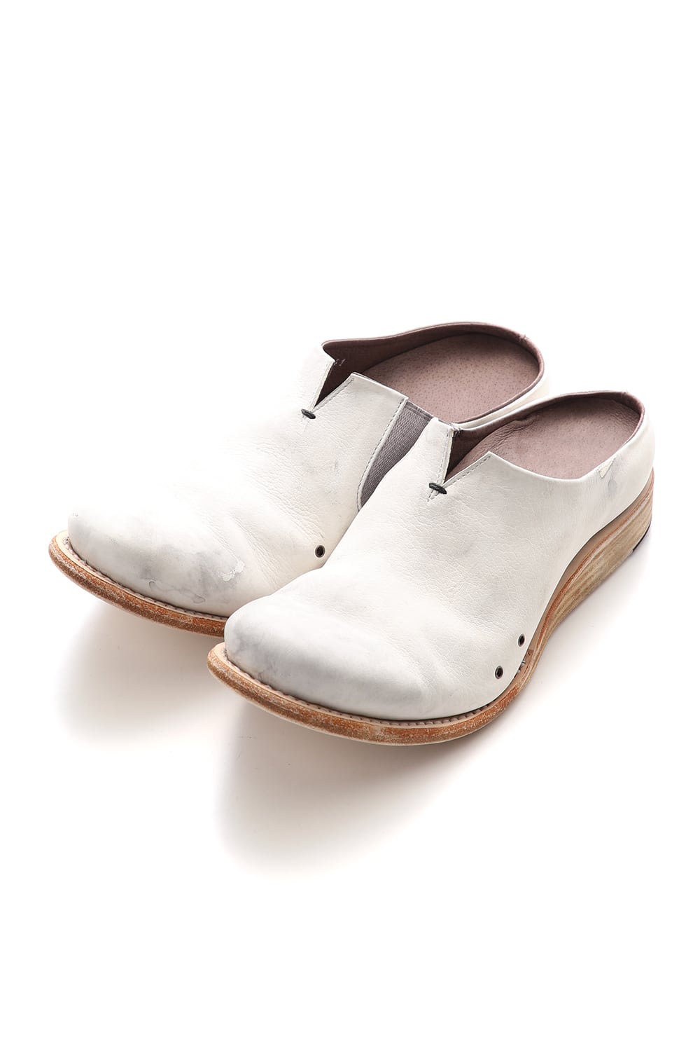 素足で履いていただけるように内踏まず、外踏まずにハトメ穴を設けできるだけ通気を良く設計されたミュールタイプのスリッポン。