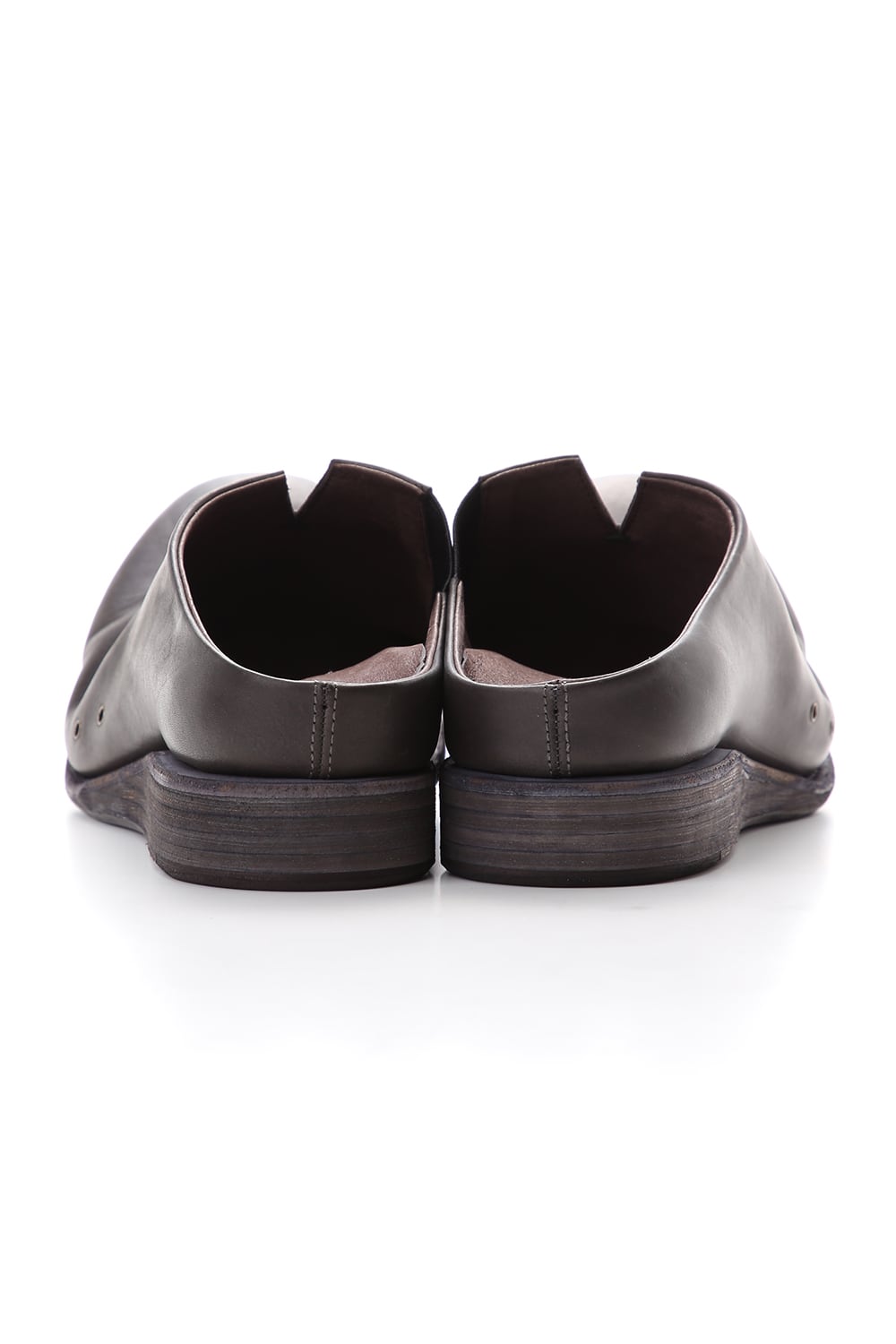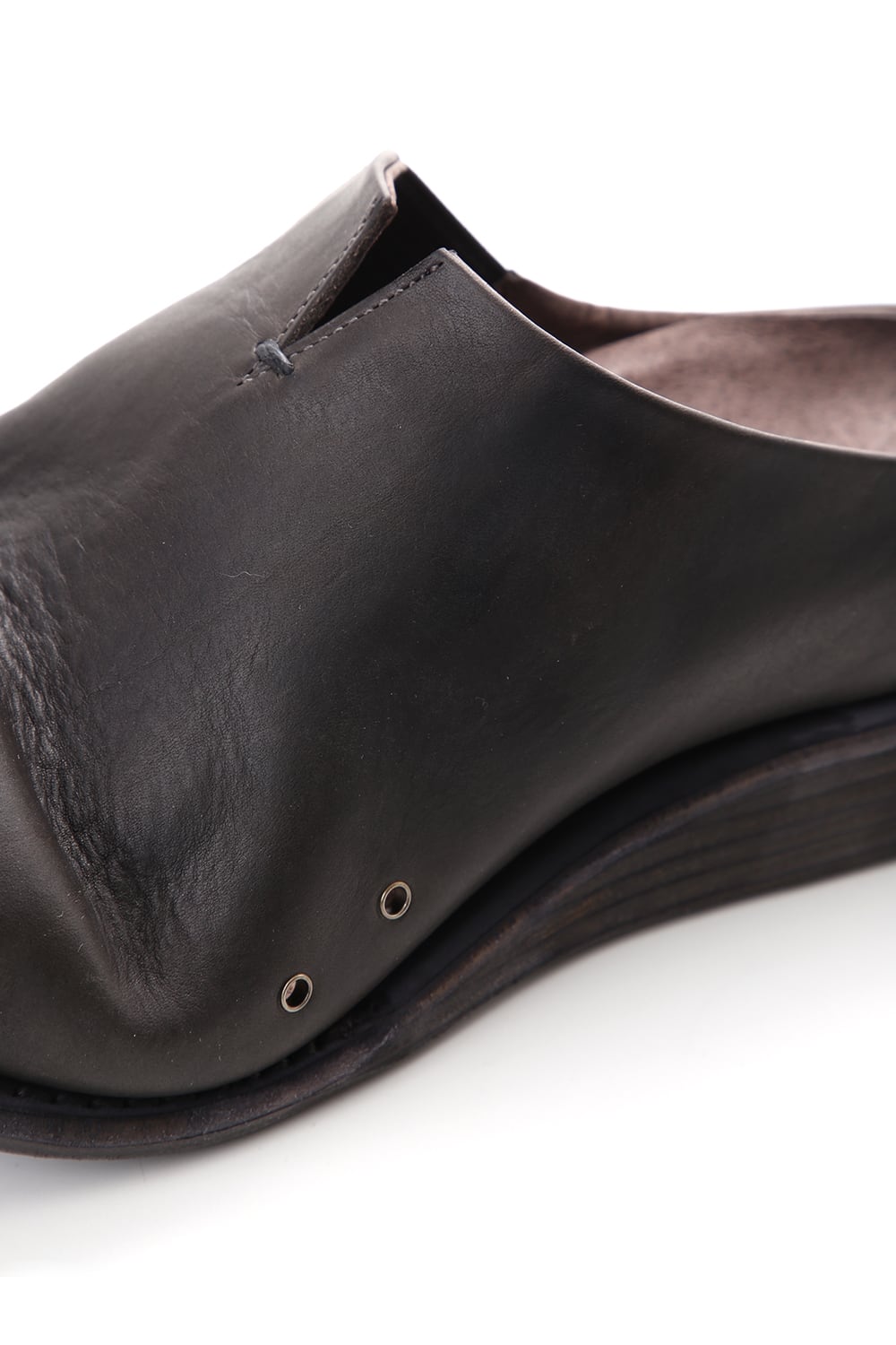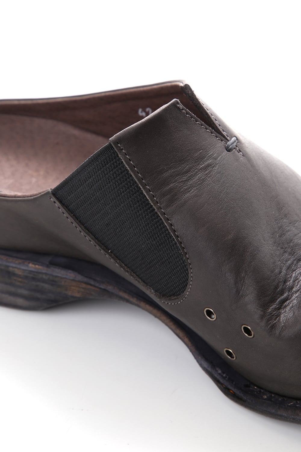 素足で履いていただけるように内踏まず、外踏まずにハトメ穴を設けできるだけ通気を良く設計されたミュールタイプのスリッポン。