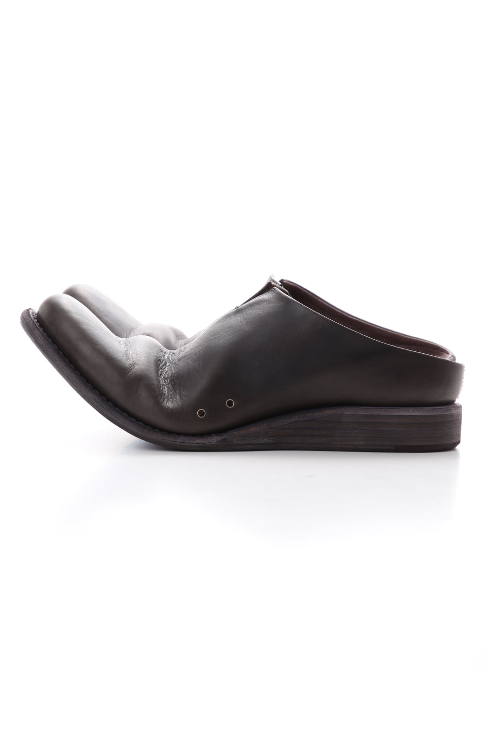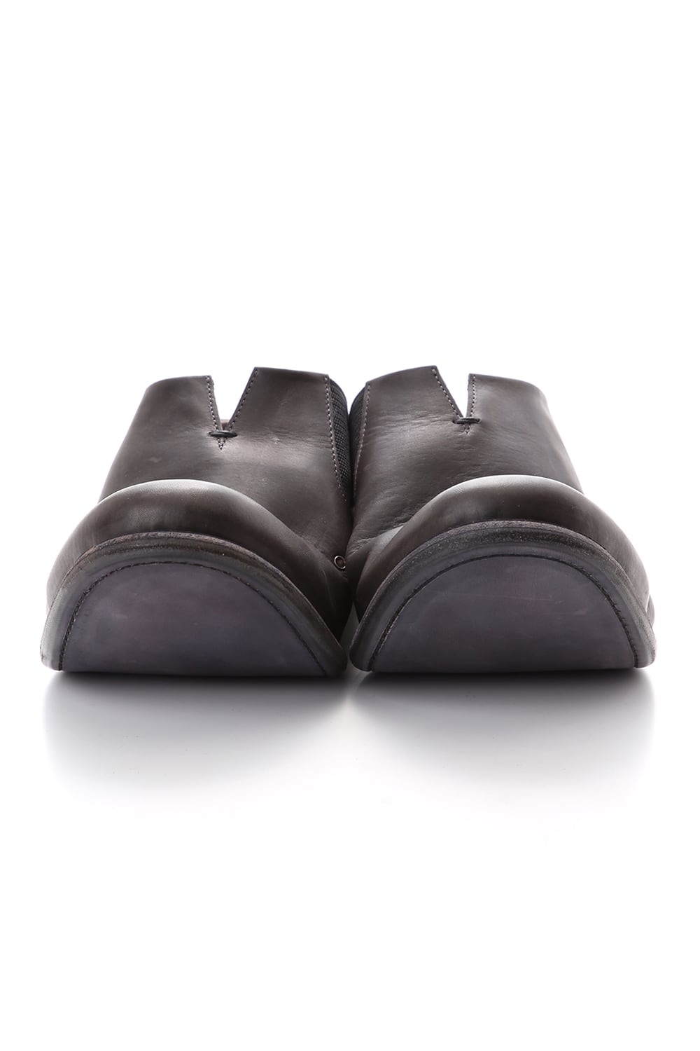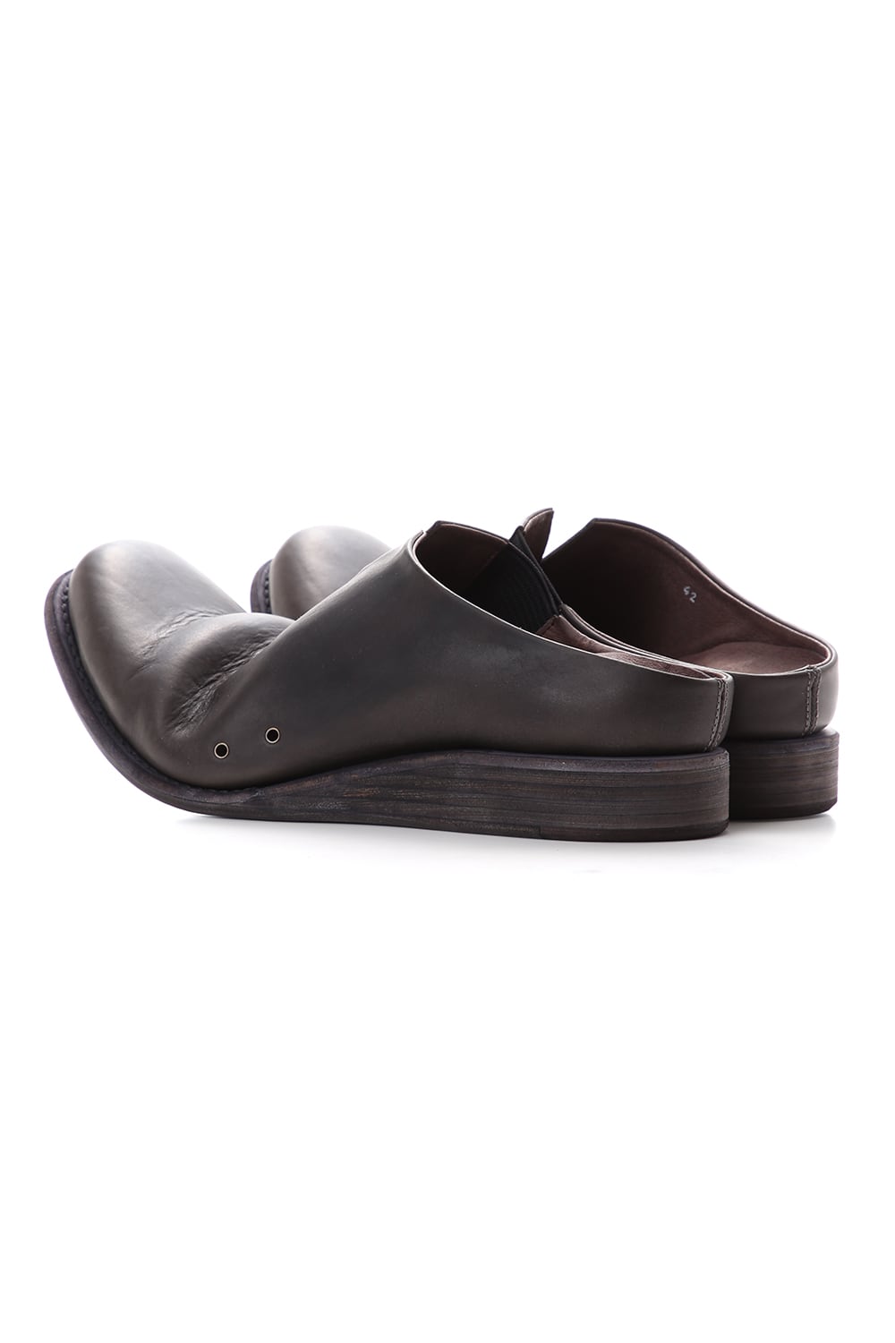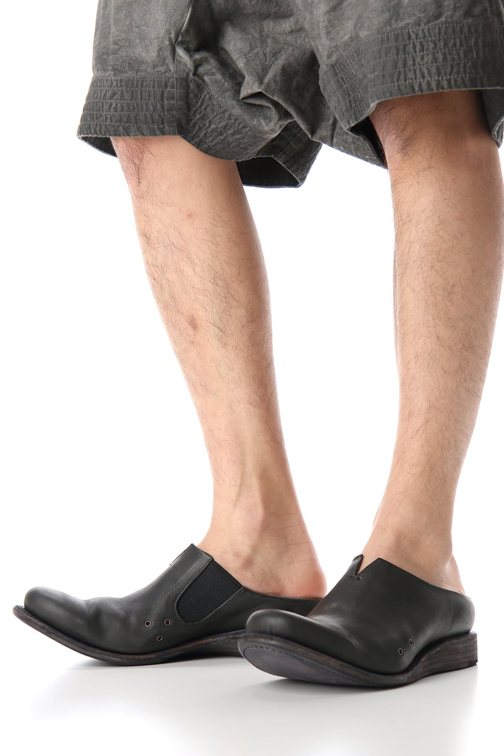 素足で履いていただけるように内踏まず、外踏まずにハトメ穴を設けできるだけ通気を良く設計されたミュールタイプのスリッポン。