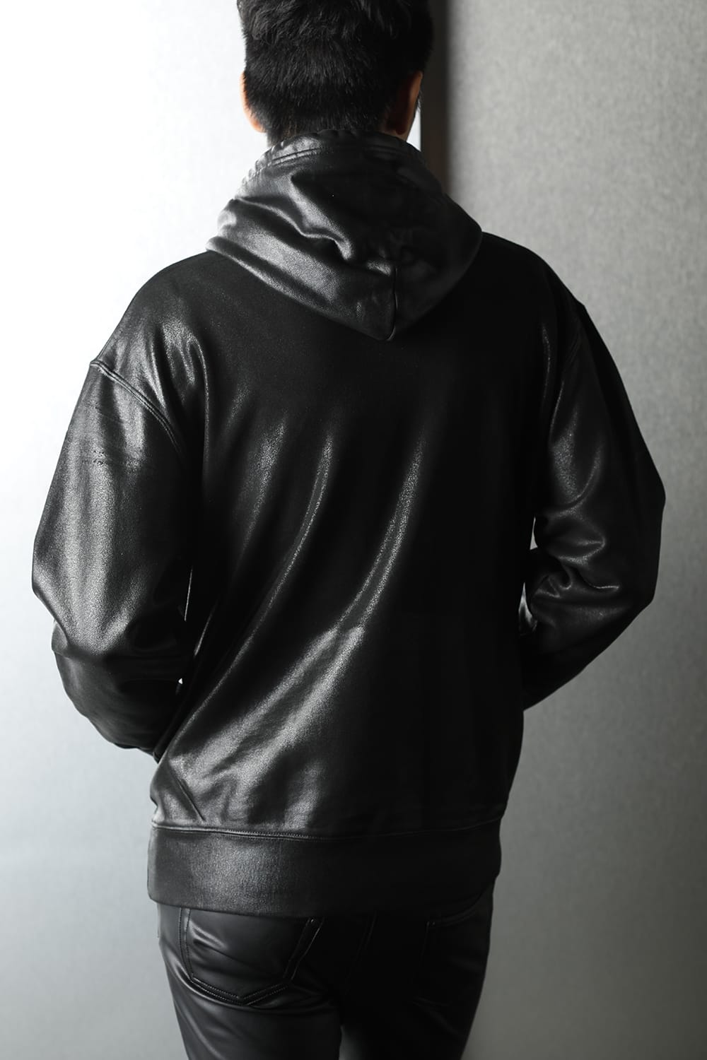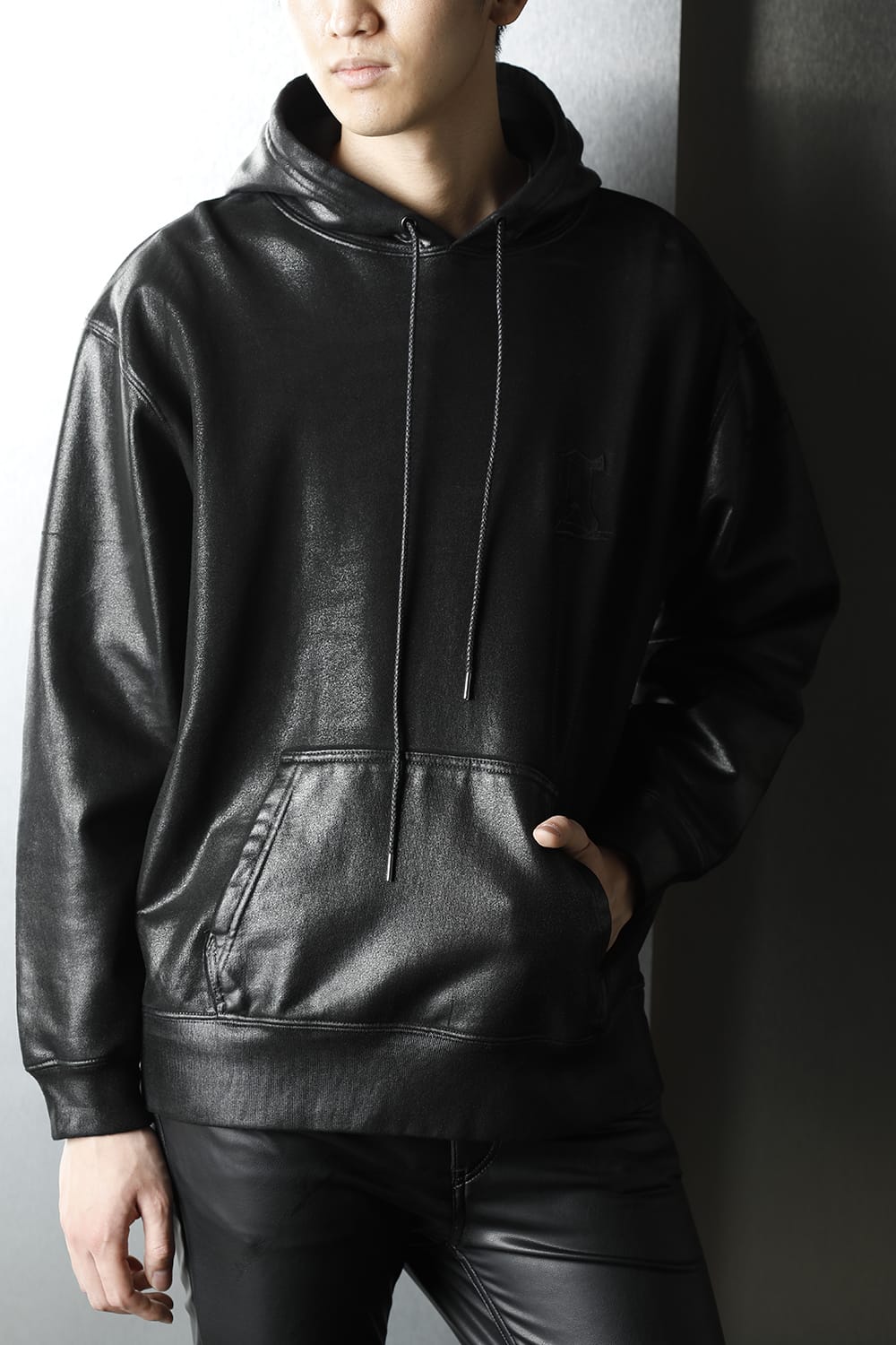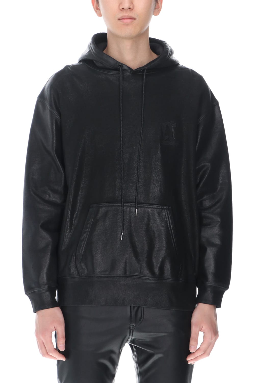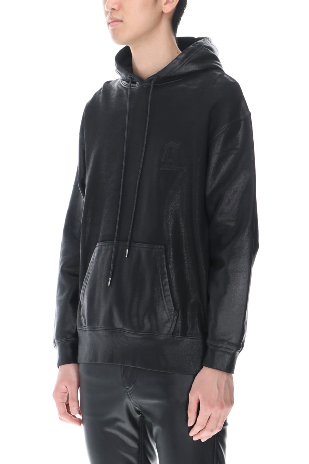 ロゴ刺繍 コーティングフーディー (ブラック)