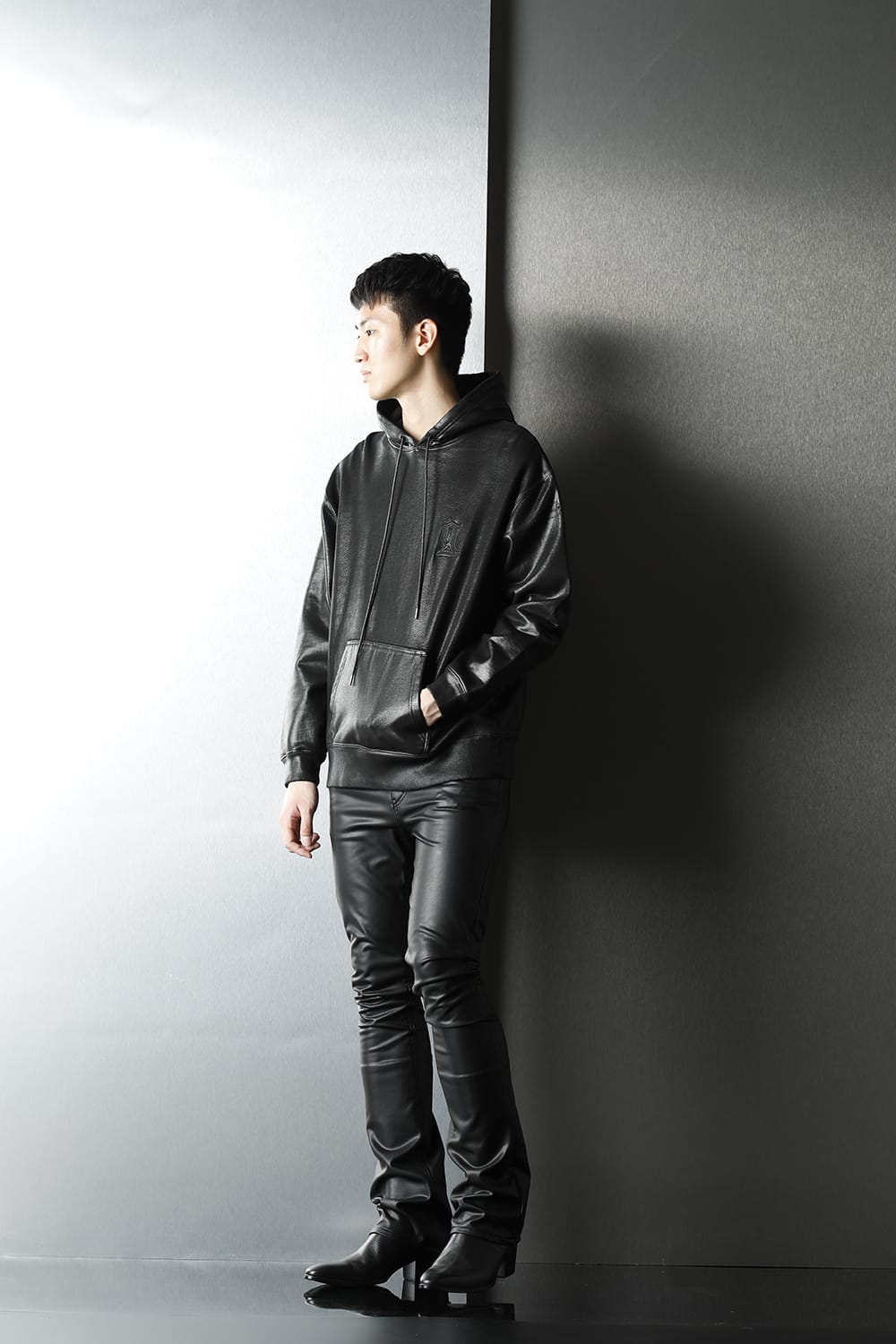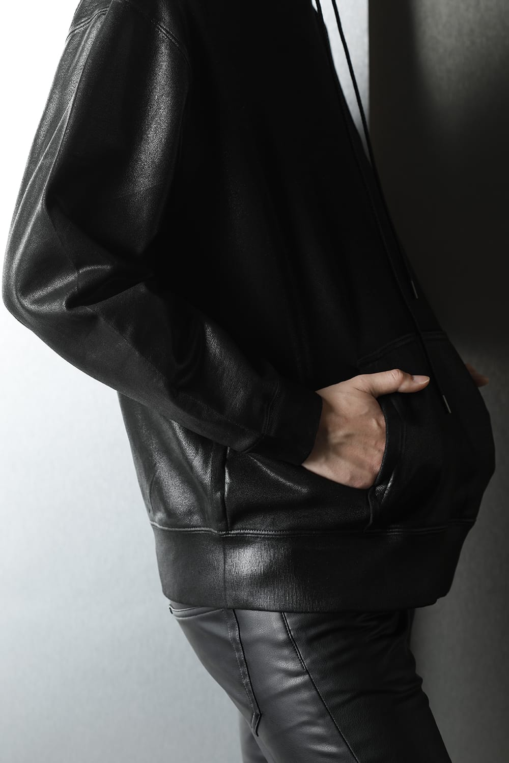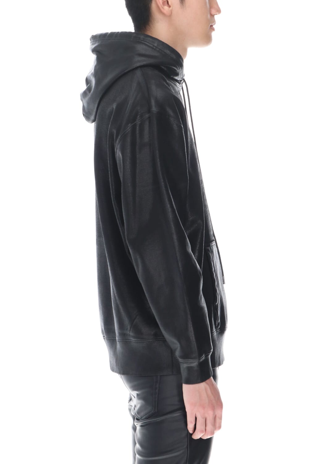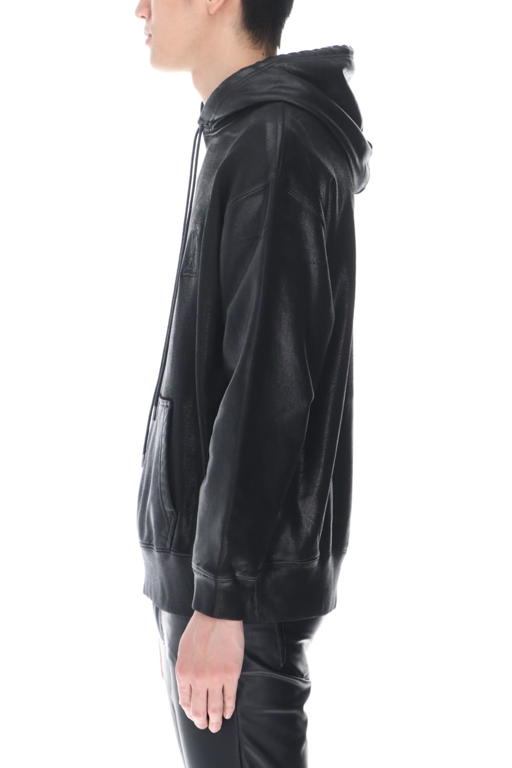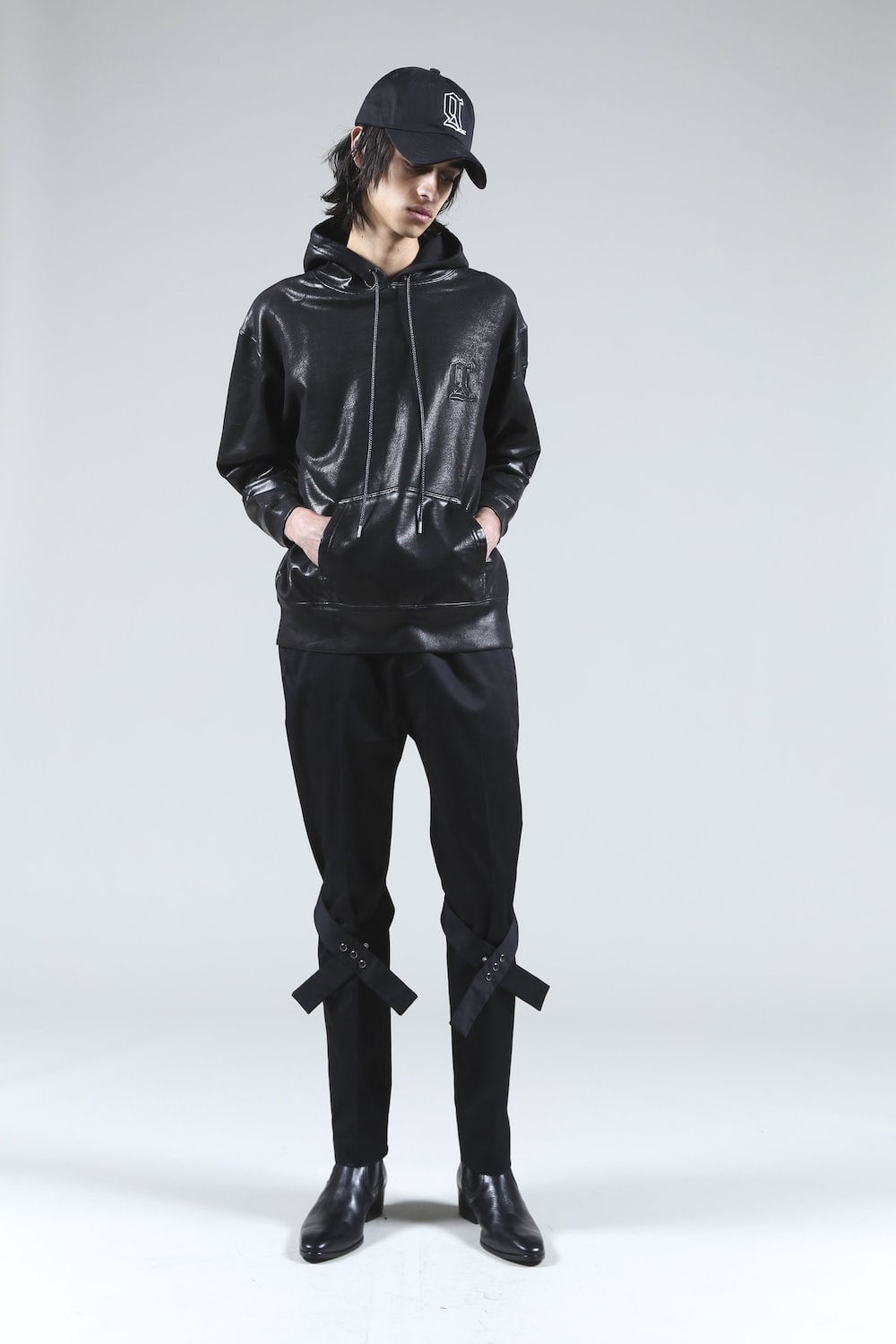 ロゴ刺繍 コーティングフーディー (ブラック)