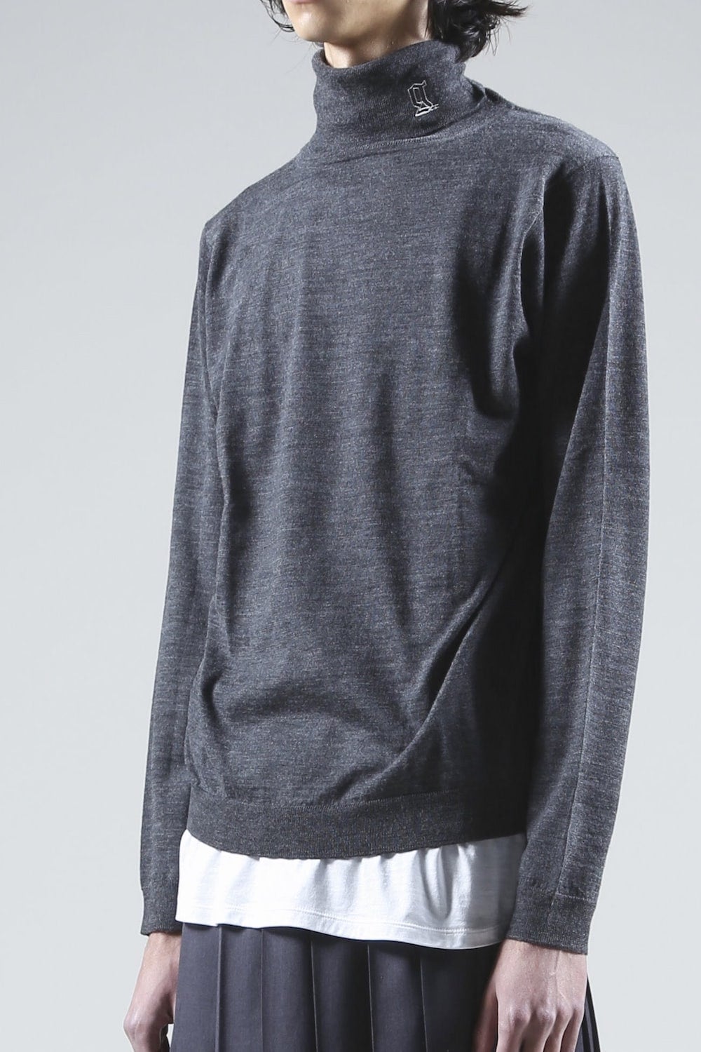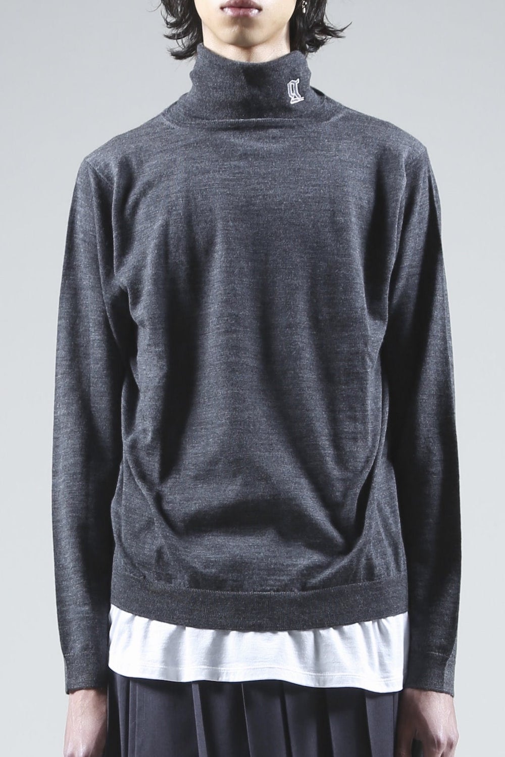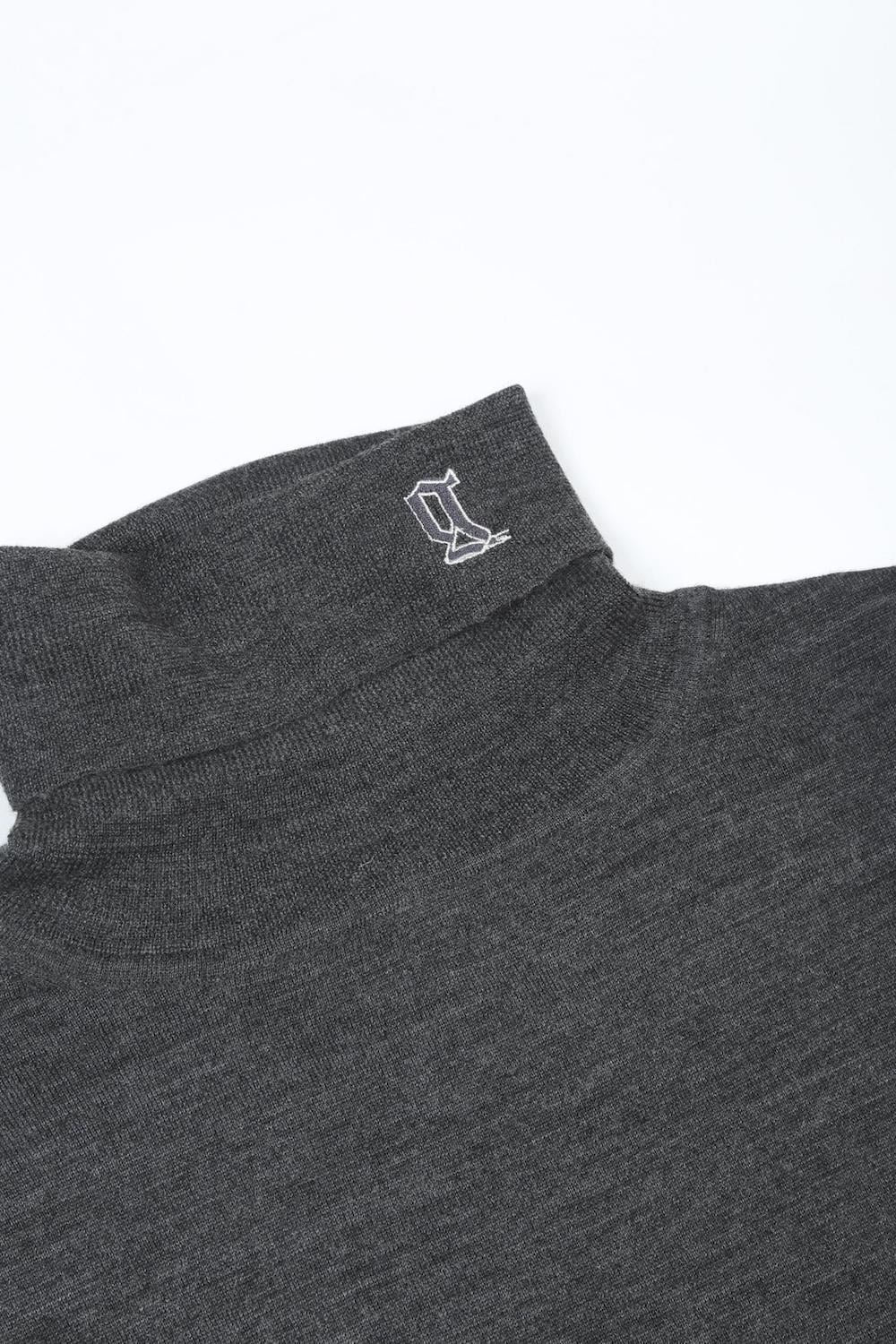 ロゴ刺繍 タートルネック ニット (チャコール)